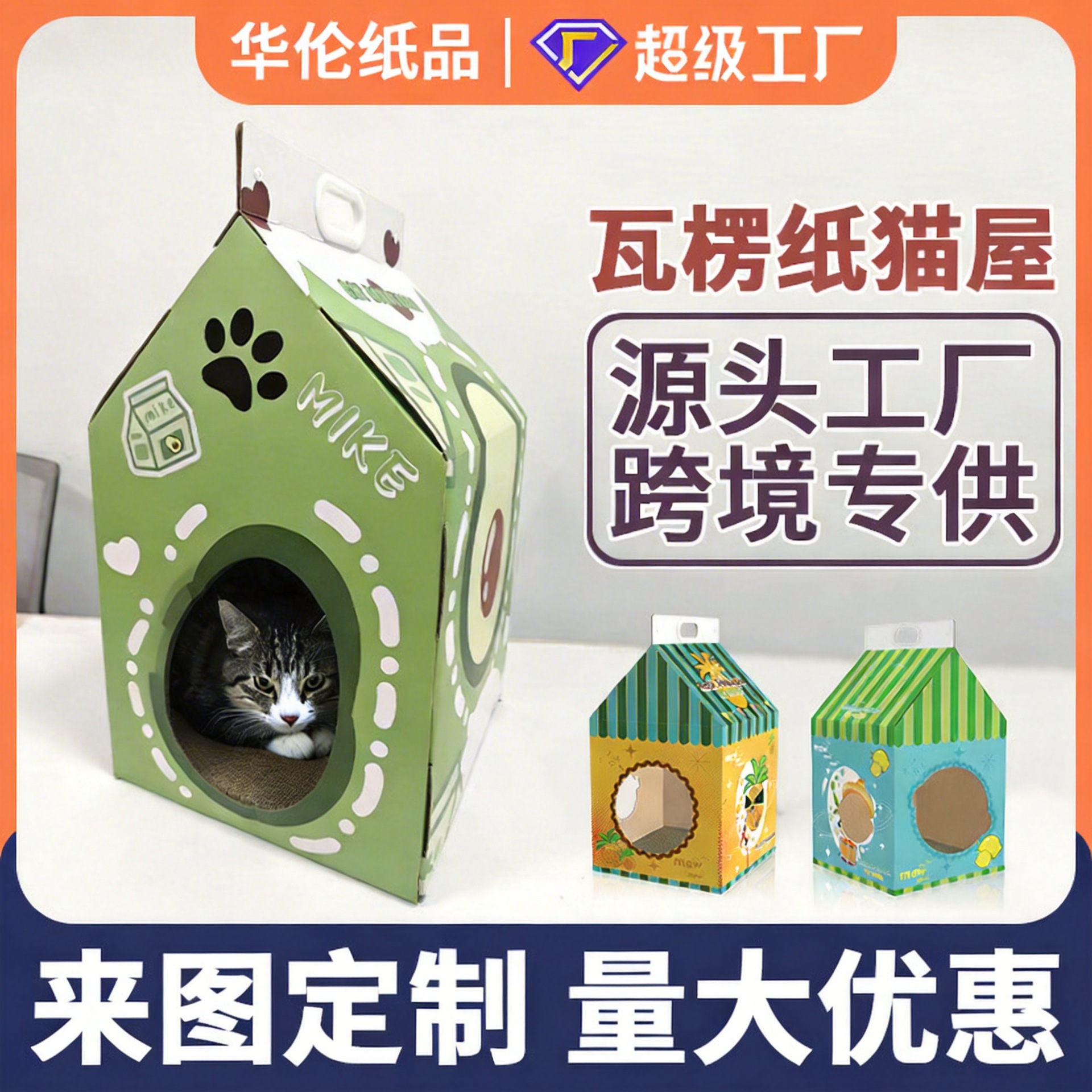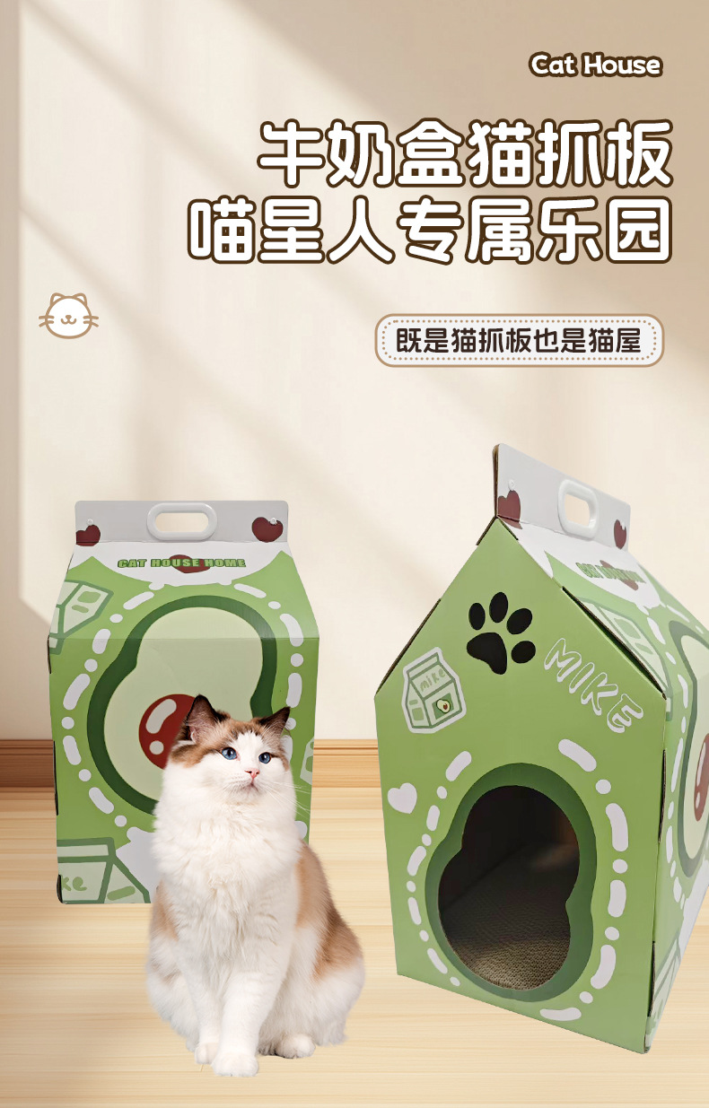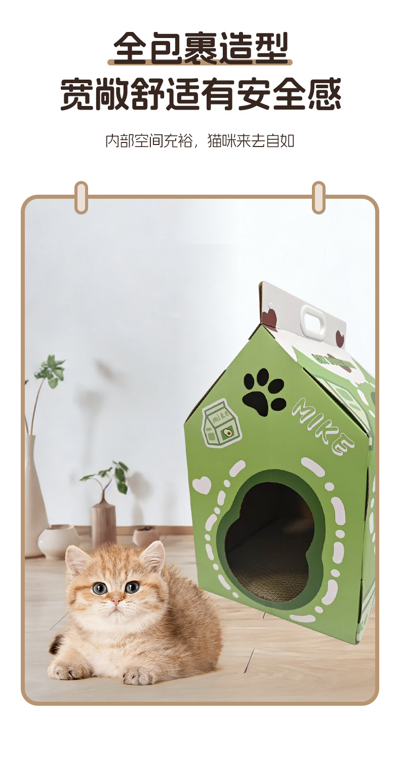 맞춤형 아보카도 골판지 고양이 스크래치 보드 고양이 집 일체형 종이상자 내구성 있는 애완동물 용품 스크래치 가능 및 수면 가능 고양이 집스토어 가기