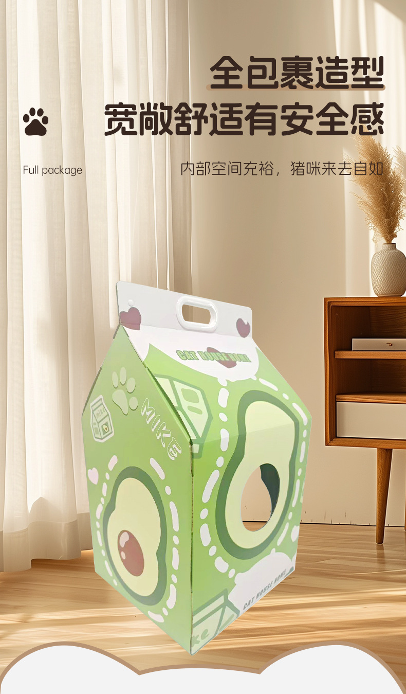 맞춤형 아보카도 골판지 고양이 스크래치 보드 고양이 집 일체형 종이상자 내구성 있는 애완동물 용품 스크래치 가능 및 수면 가능 고양이 집