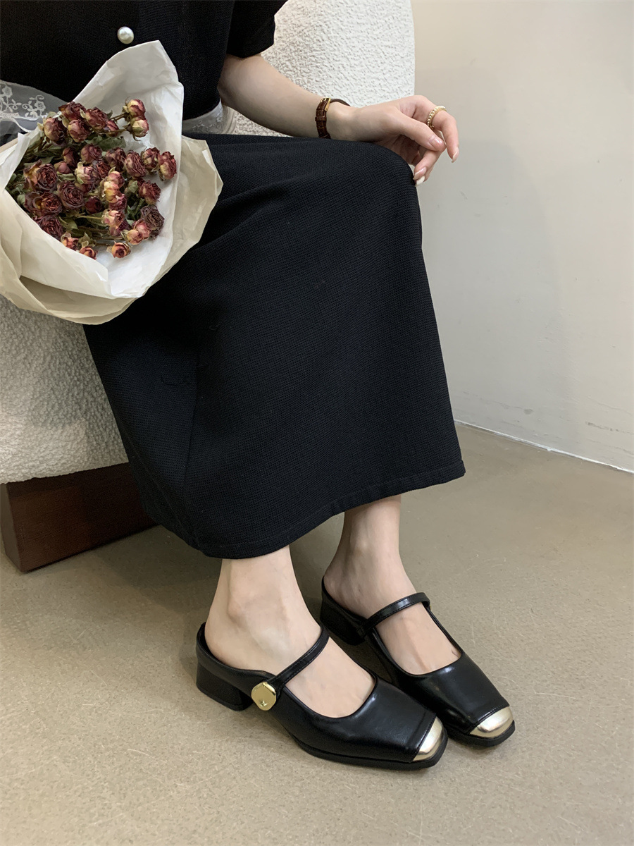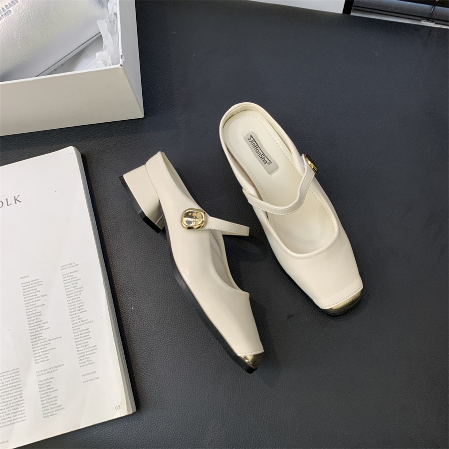 실버 Baotou 하프 슬리퍼 여성 여름 2025 새로운 스타일 작은 광장 머리 우아한 늦은 바람 빈 스커트 샌들과 슬리퍼