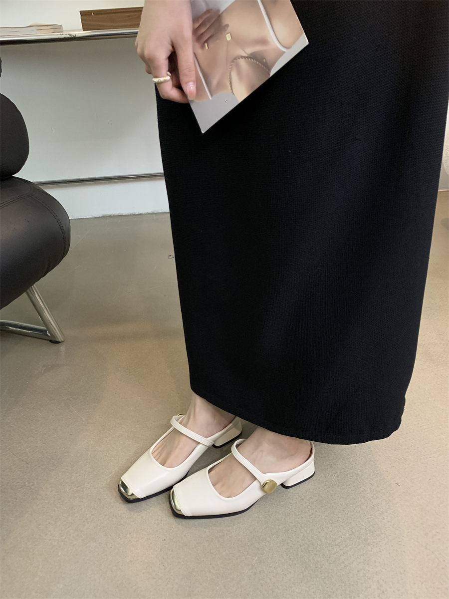 실버 Baotou 하프 슬리퍼 여성 여름 2025 새로운 스타일 작은 광장 머리 우아한 늦은 바람 빈 스커트 샌들과 슬리퍼스토어 가기