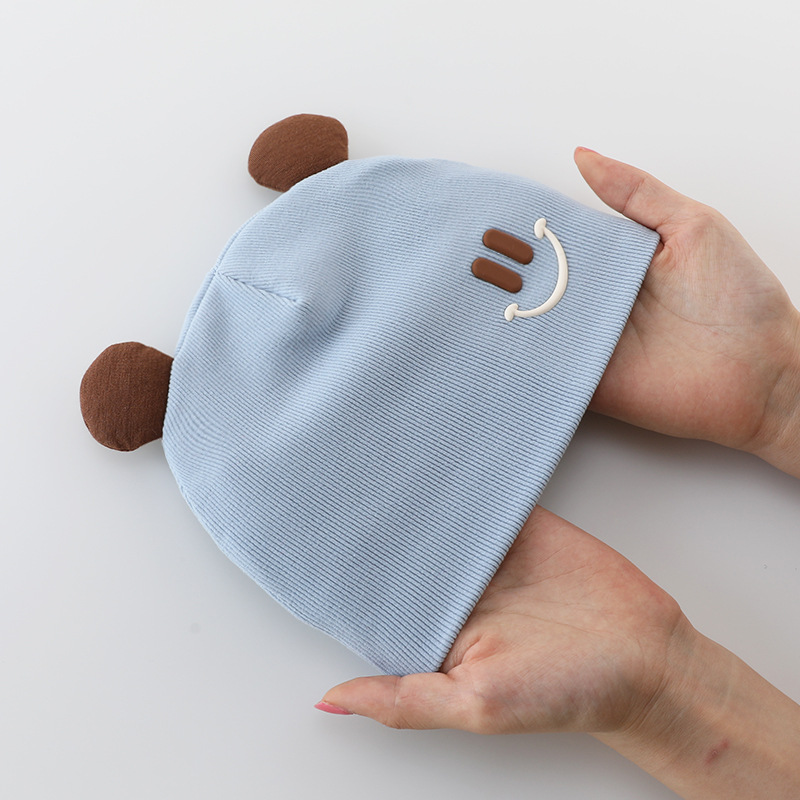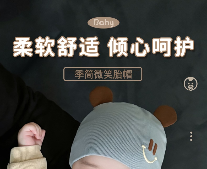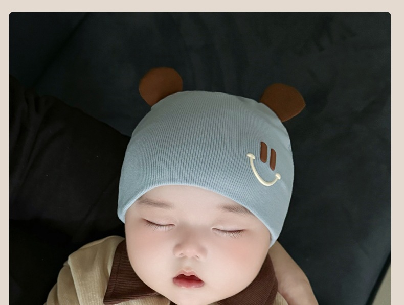 작은 태아 모자 아기 귀여운 웃는 얼굴 남녀 한 달 된 봄과 가을 아기 모자 가을과 겨울 신생아 간단한 모자 보름달스토어 가기