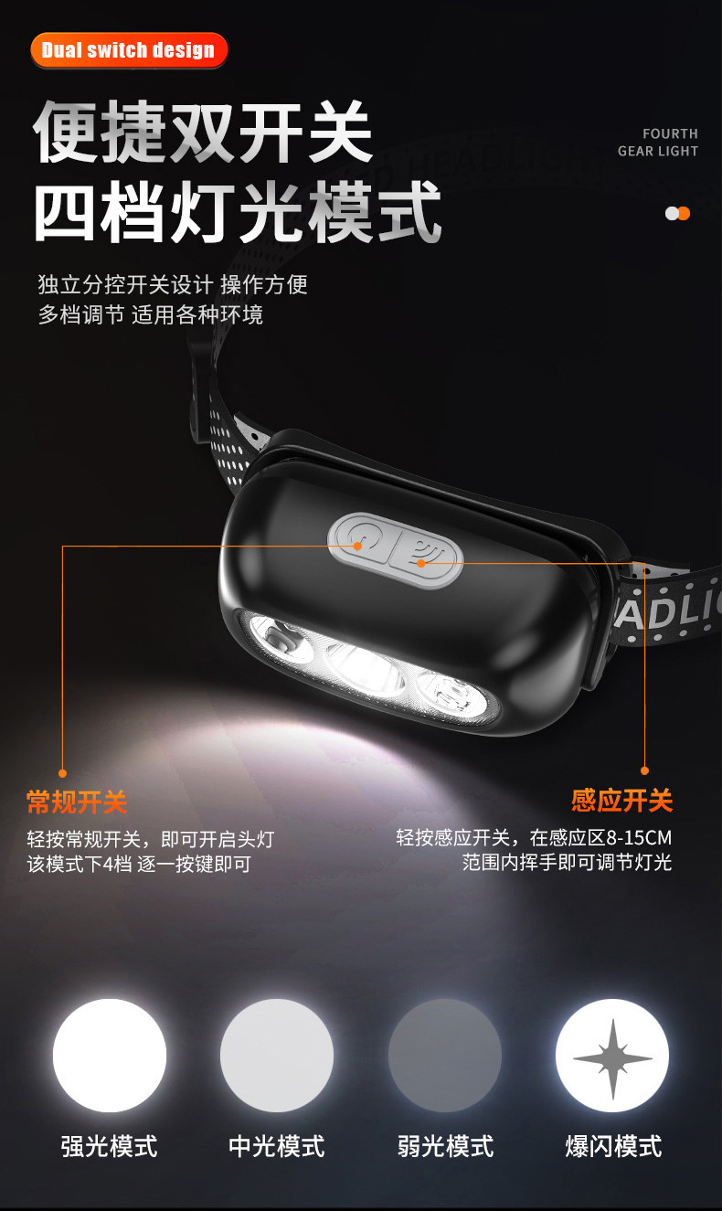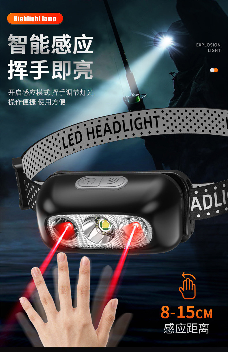 강력한 헤드 라이트 충전 슈퍼 밝은 헤드 장착 조명 긴 내구성 유도 야외 야간 낚시 홈 손전등