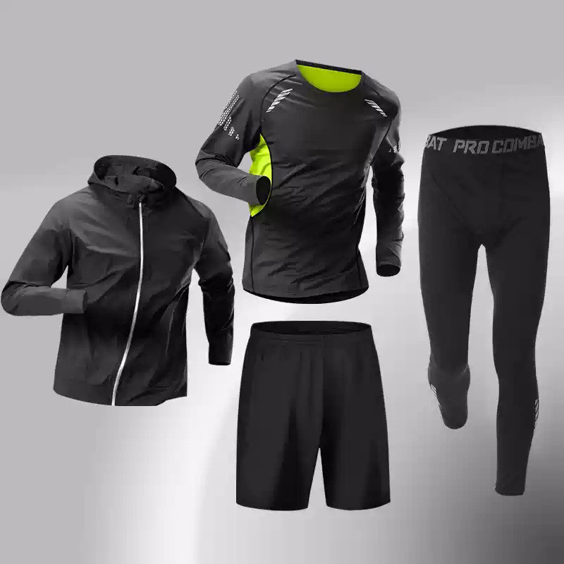 RrJ 겨울 달리기 세트 남자 기모 따뜻한 스포츠 세트 스포츠 피트니스 훈련 옷 빠른 드라이 농구