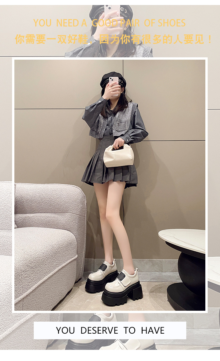 작은 가죽 신발 여성 영국 시즌 새 한국어 버전 10cm 두께 바닥 작은 가죽 신발 여성 한국어 버전 증가스토어 가기