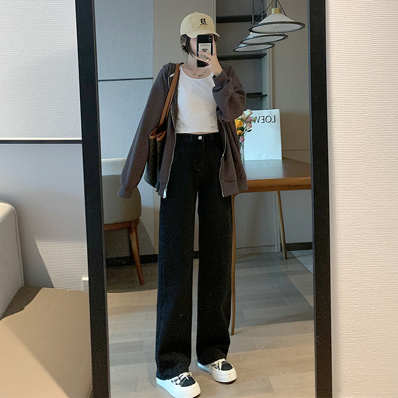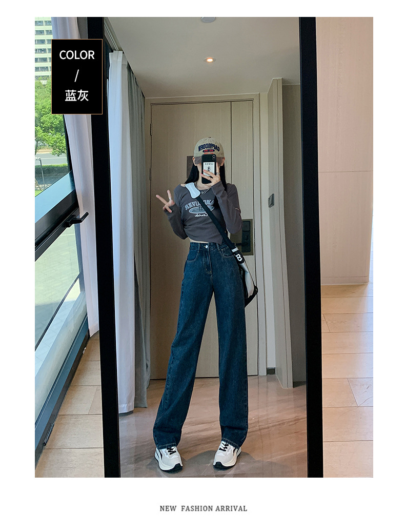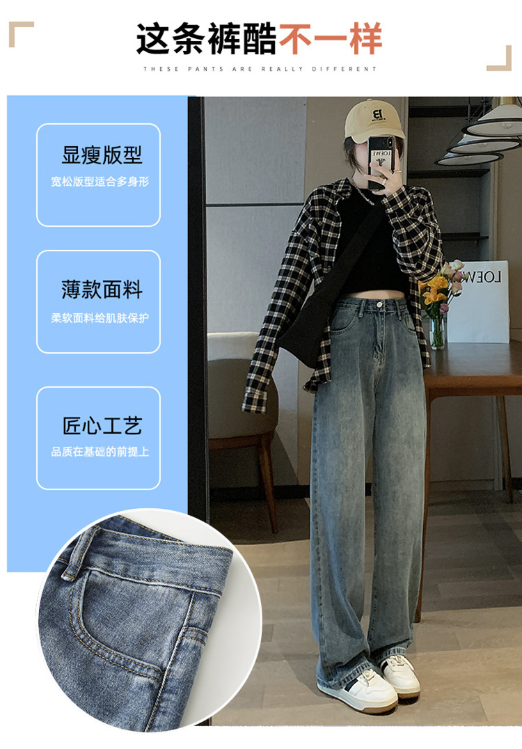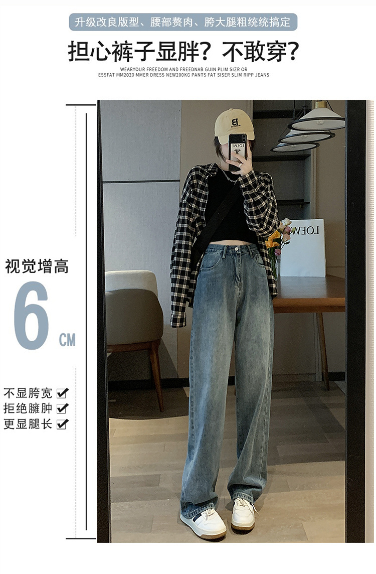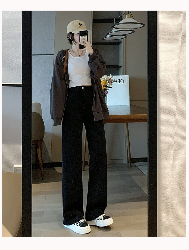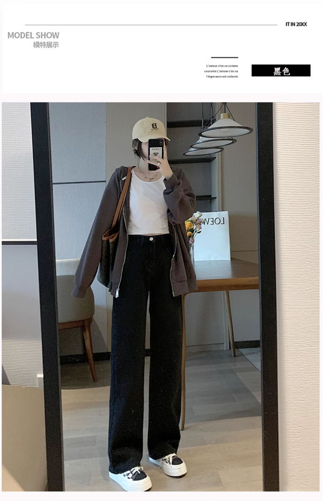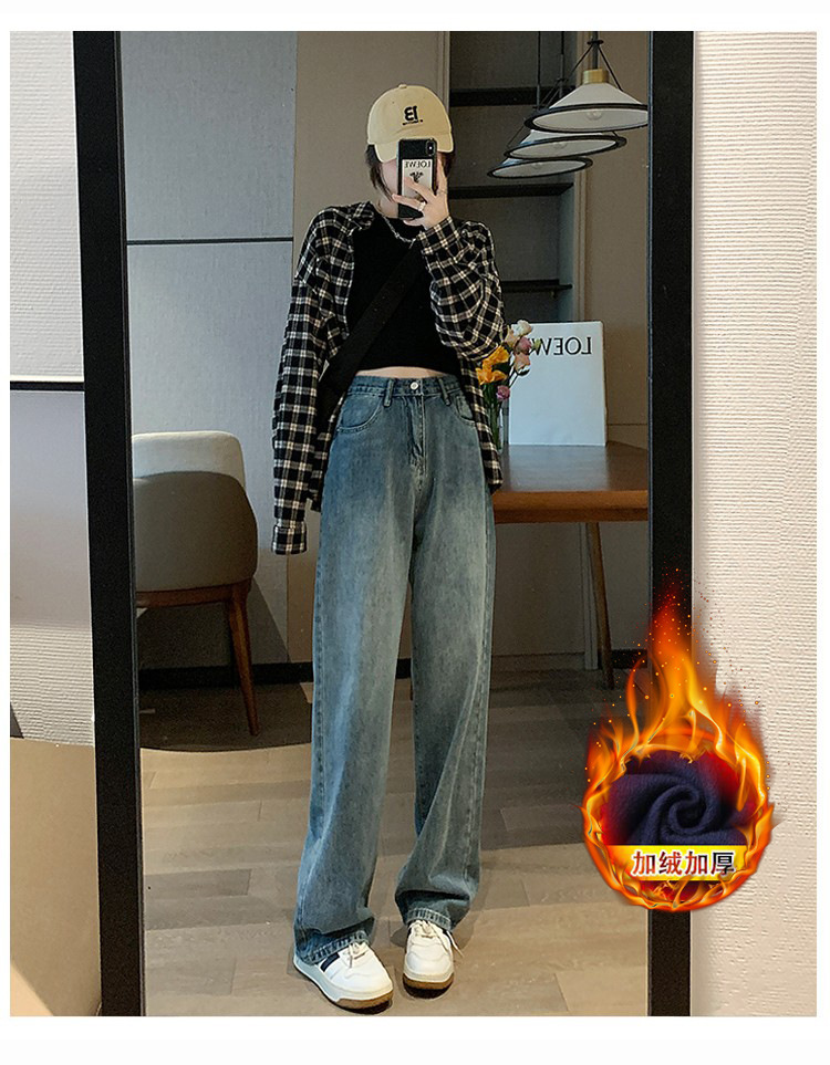 높은 허리 넓은 다리 청바지 여성의 가을과 겨울 2024 새로운 폭발 기모 슬리밍 사그 레트로 스트레이트 바지스토어 가기