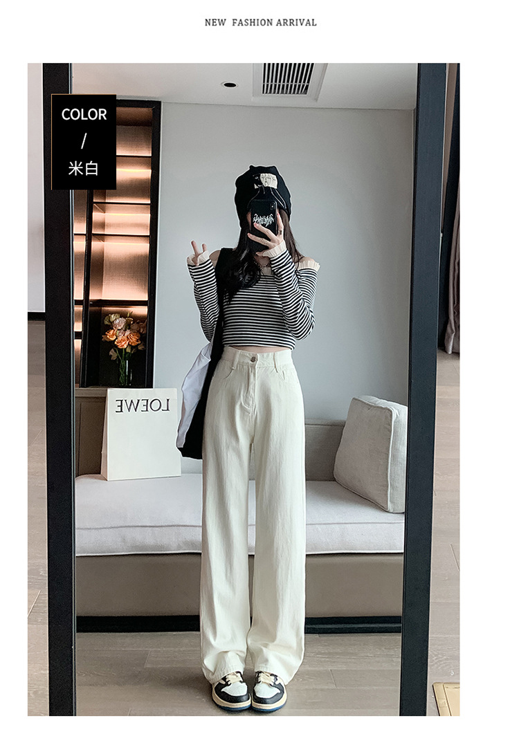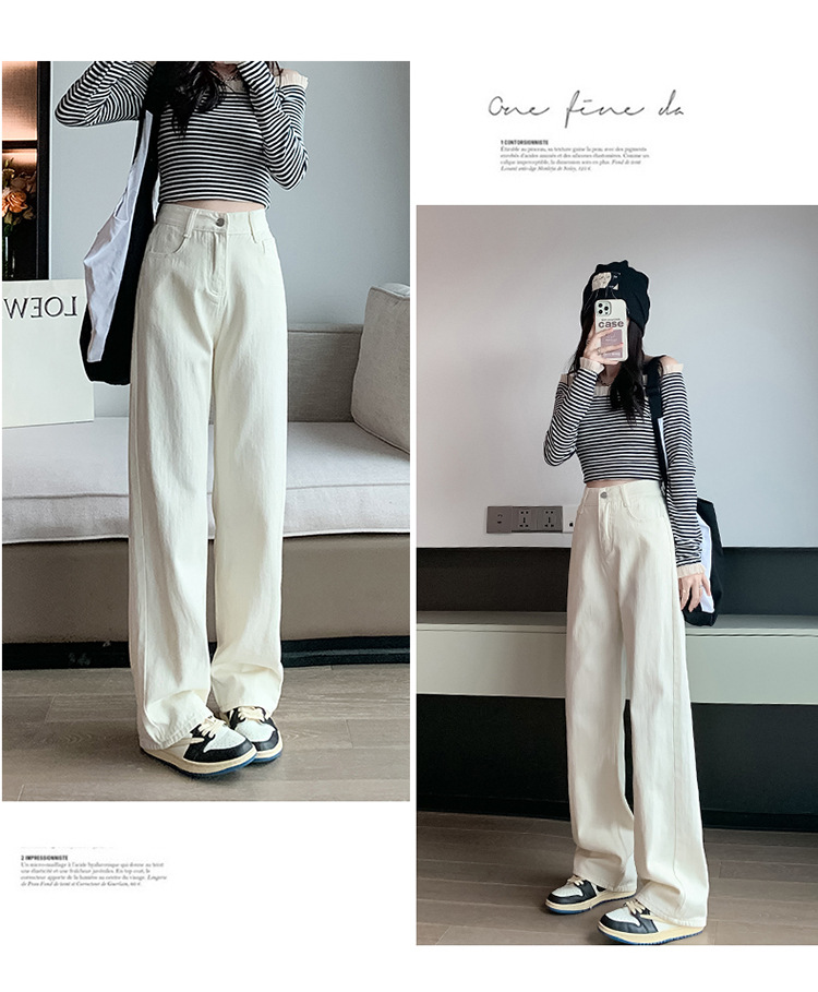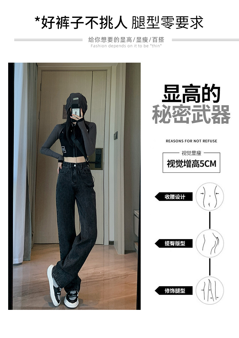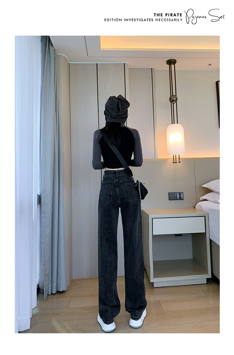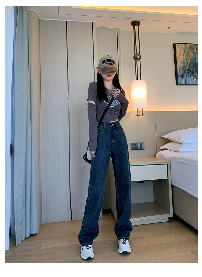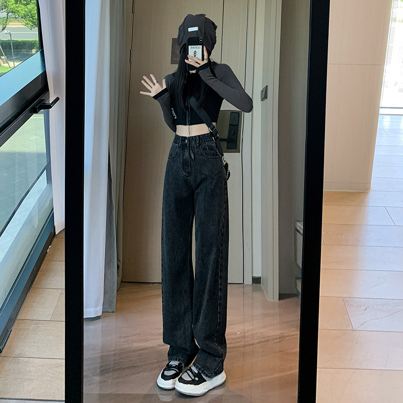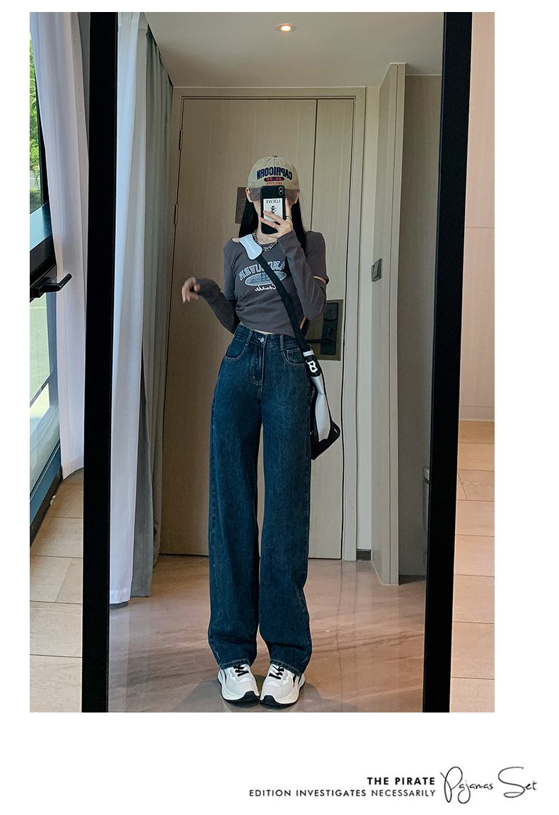 높은 허리 넓은 다리 청바지 여성의 가을과 겨울 2024 새로운 폭발 기모 슬리밍 사그 레트로 스트레이트 바지스토어 가기