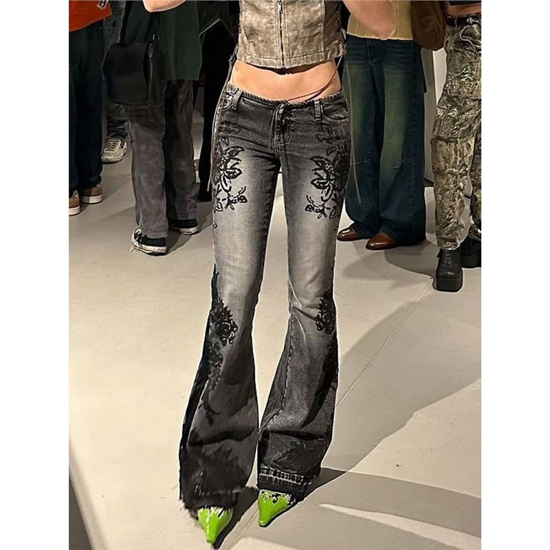 아메리칸 스타일 레트로 Y2K 밀레니엄 핫 걸 인쇄 청바지 여성의 새로운 낮은 허리 슬림 슬리밍 스트레치