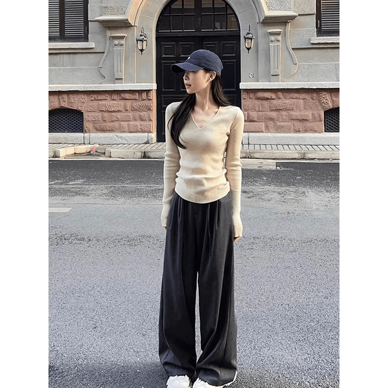 부드러운 스타일 솔리드 컬러 V 넥 스웨터 여성의 2024 가을 및 겨울 새로운 슬림 핏 슬리밍 내부 긴팔베이스 레이어 스웨터