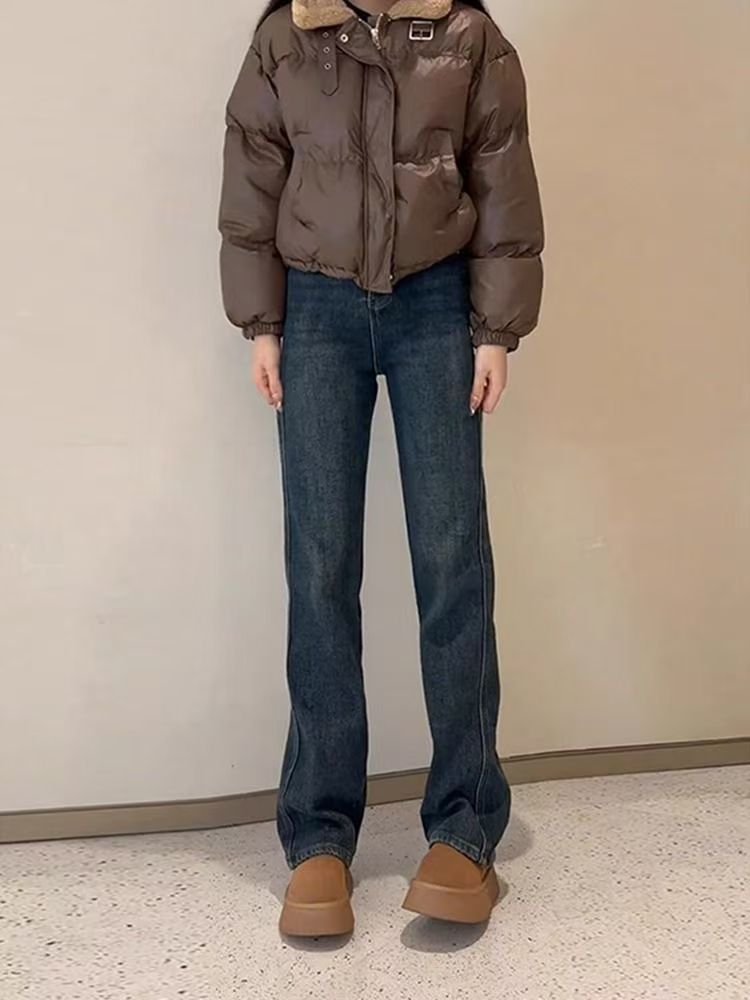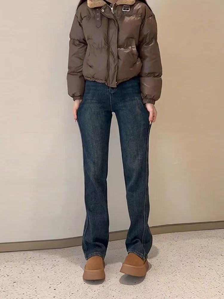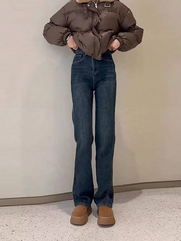 Shanli Dadi 기모 두꺼운 좁은 컷 스트레이트 청바지 여성의 겨울 새로운 배 모양의 피규어 플러스 사이즈 작은 높이스토어 가기