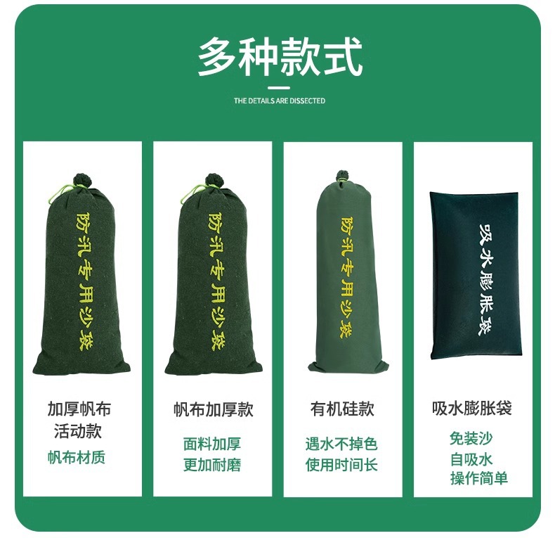 두꺼운 캔버스 홍수 제어 모래 주머니 자체 흡수 확장 가방 재산 커뮤니티 비상 물 막힘 모래 주머니 화재 통제 모래 주머니