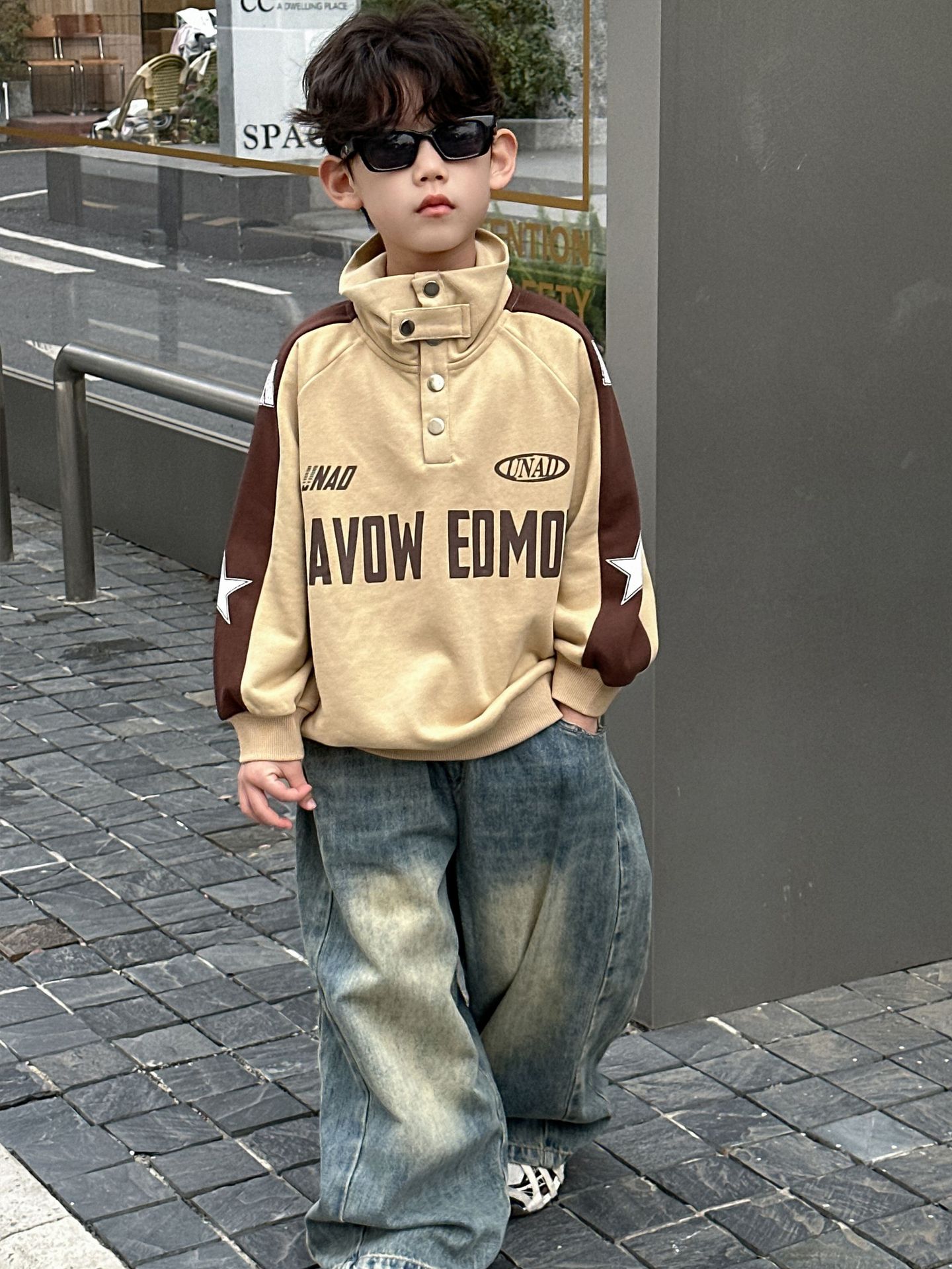 어린이 패션 청바지 2025 봄 새 소년 한국 스타일 느슨한 직선 다리 바지 어린이 봄 유행 바지