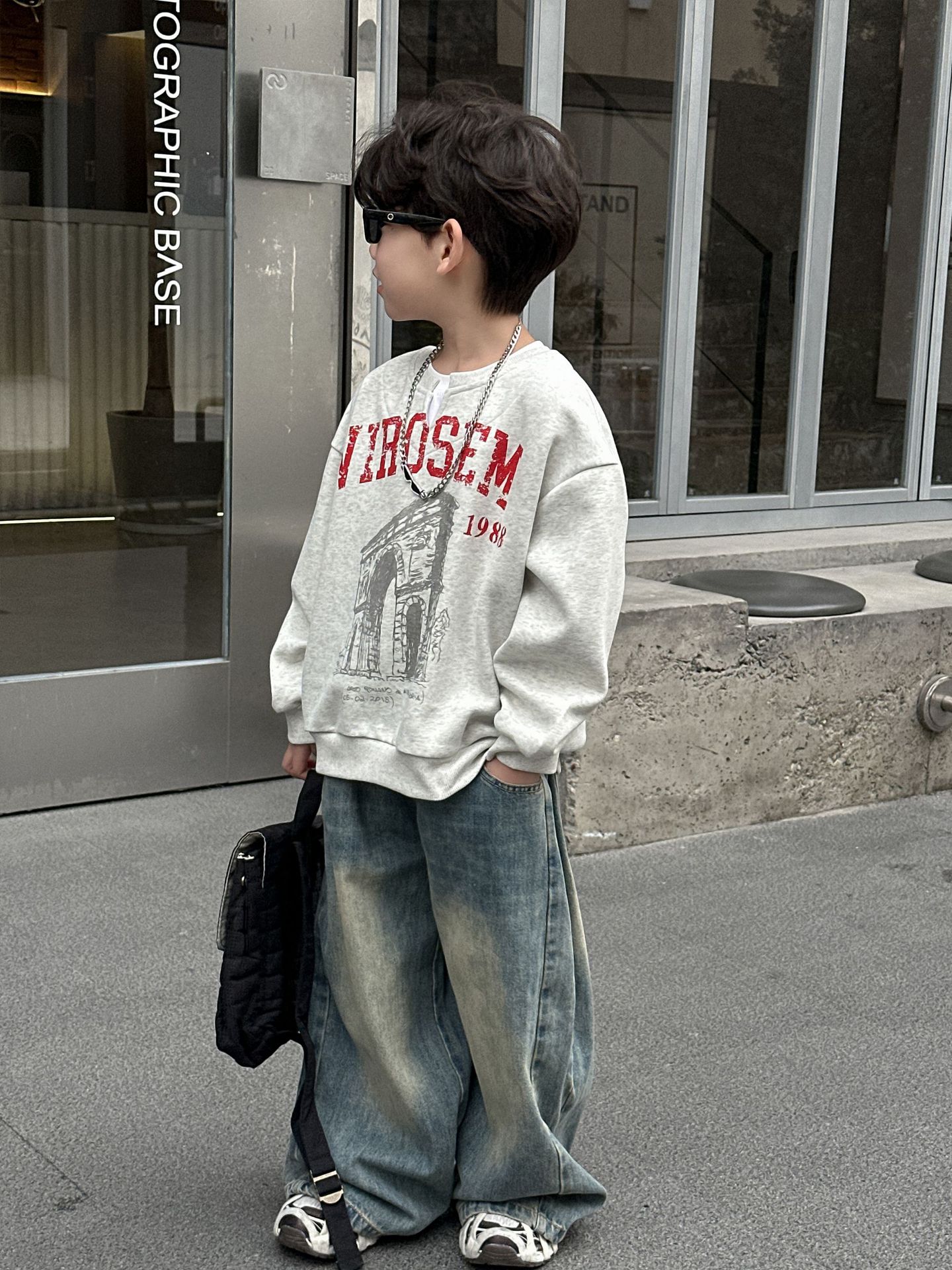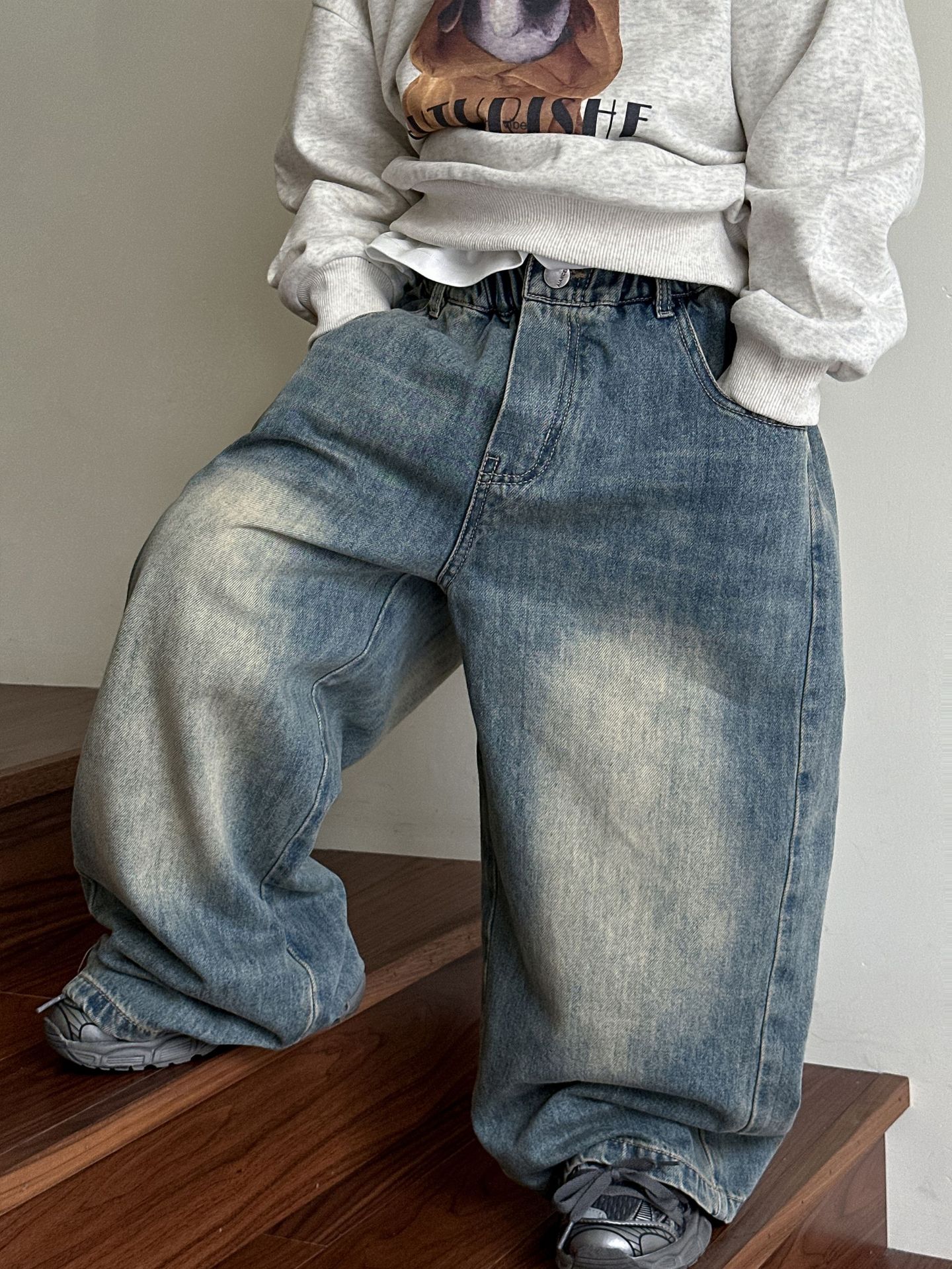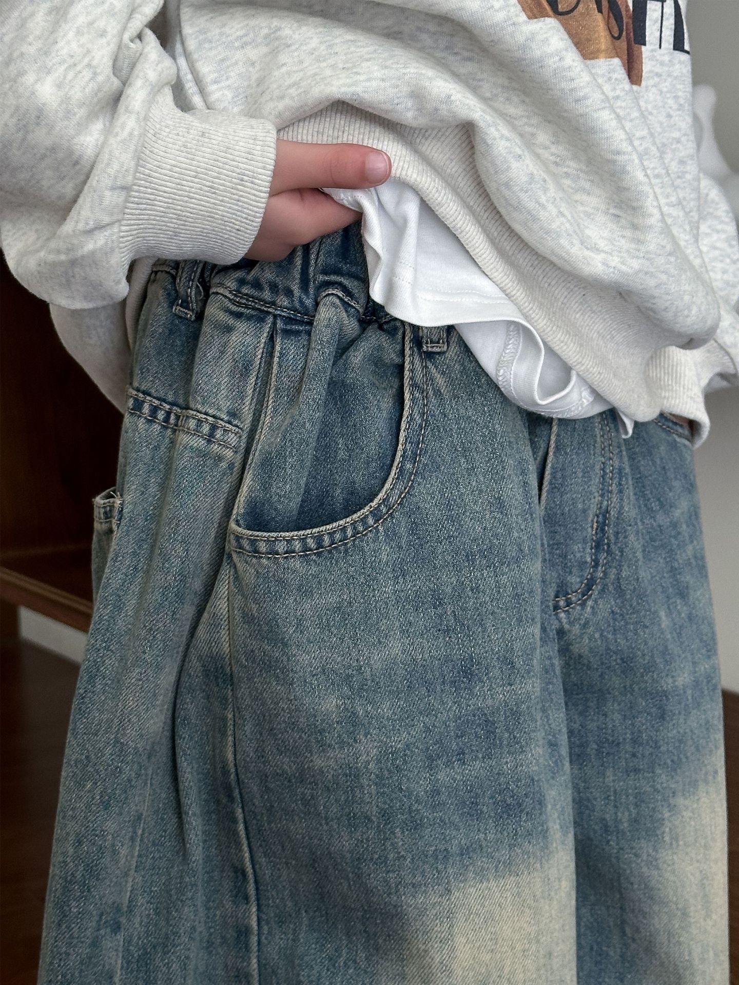 어린이 패션 청바지 2025 봄 새 소년 한국 스타일 느슨한 직선 다리 바지 어린이 봄 유행 바지스토어 가기