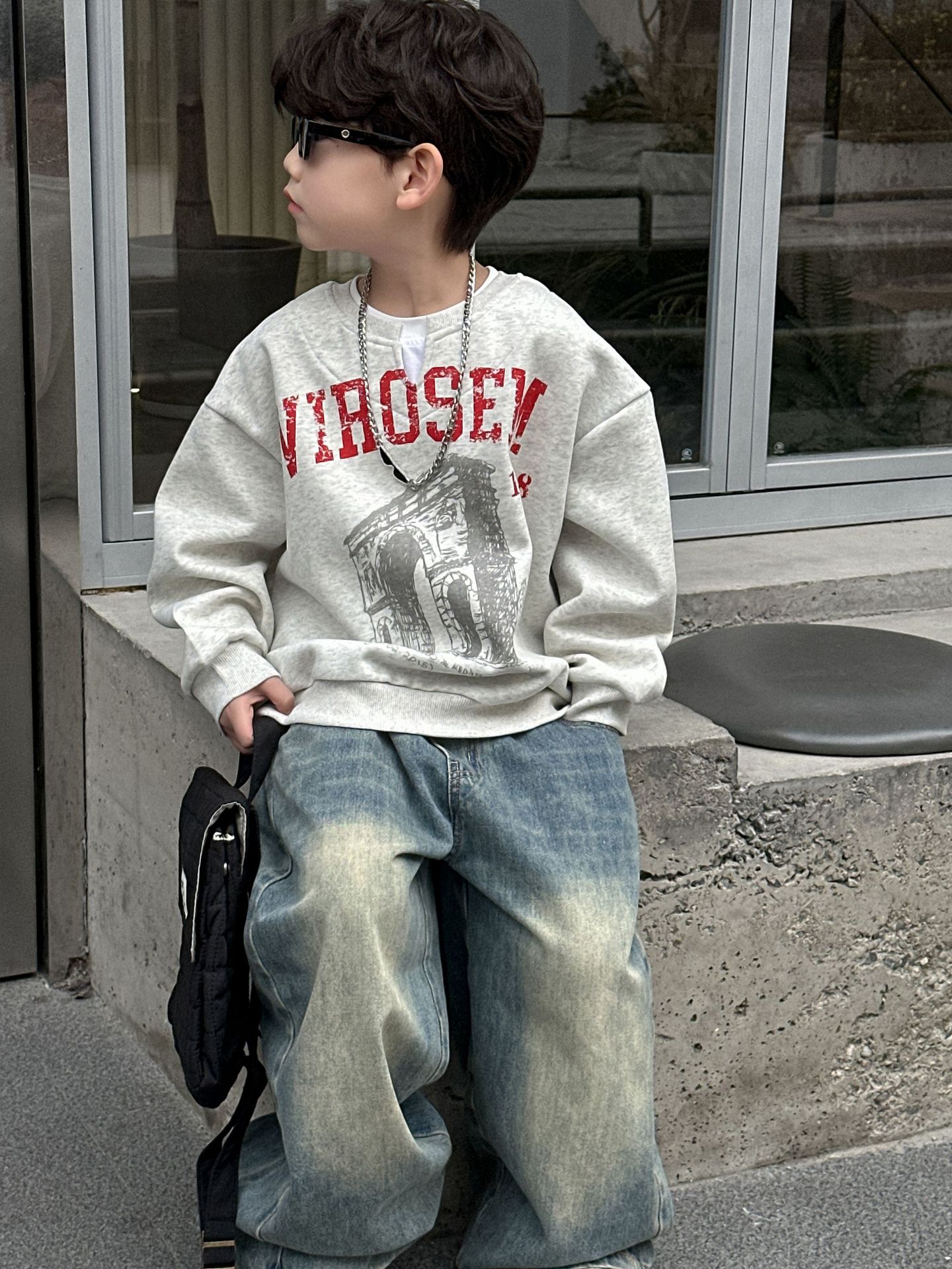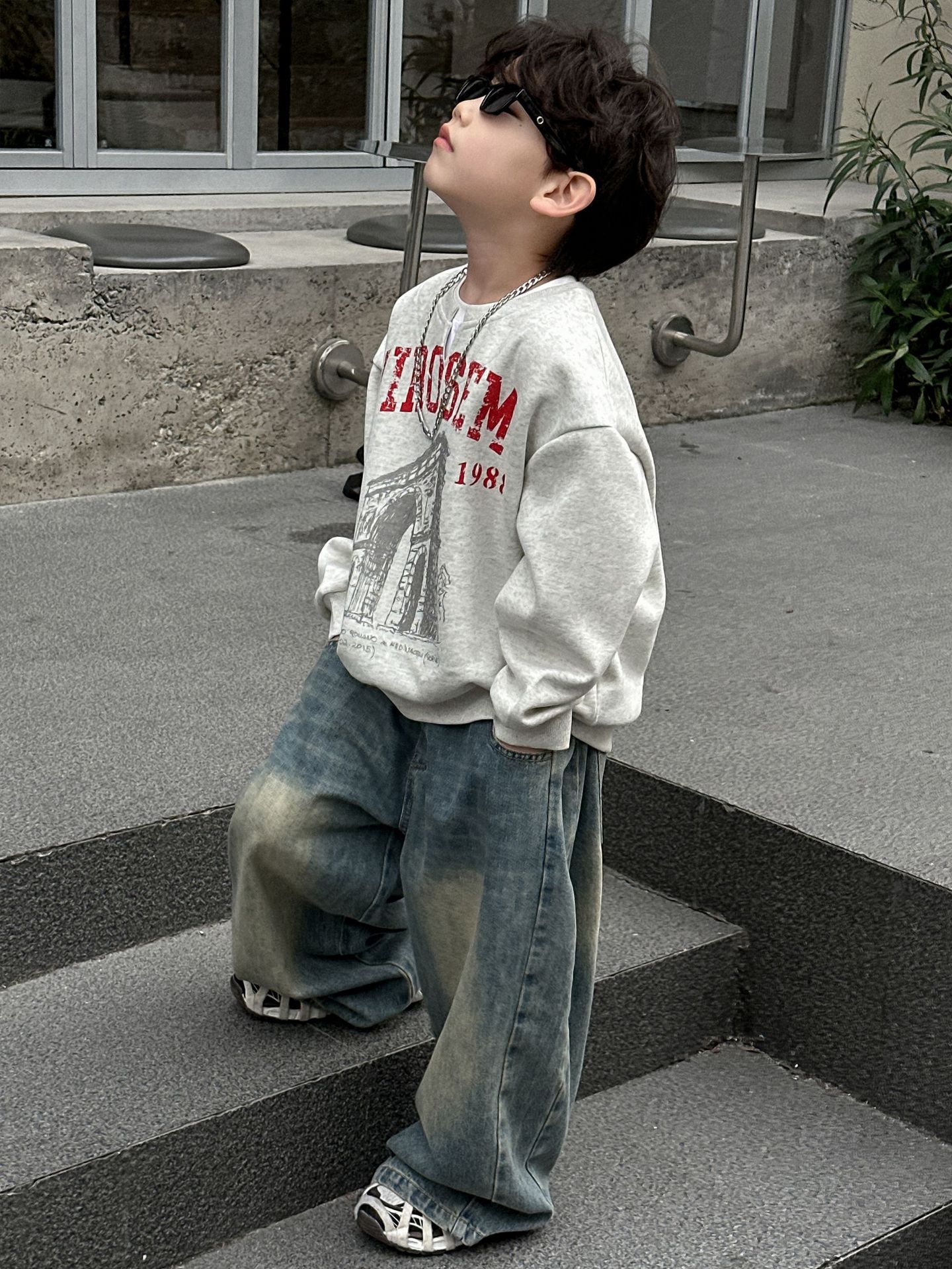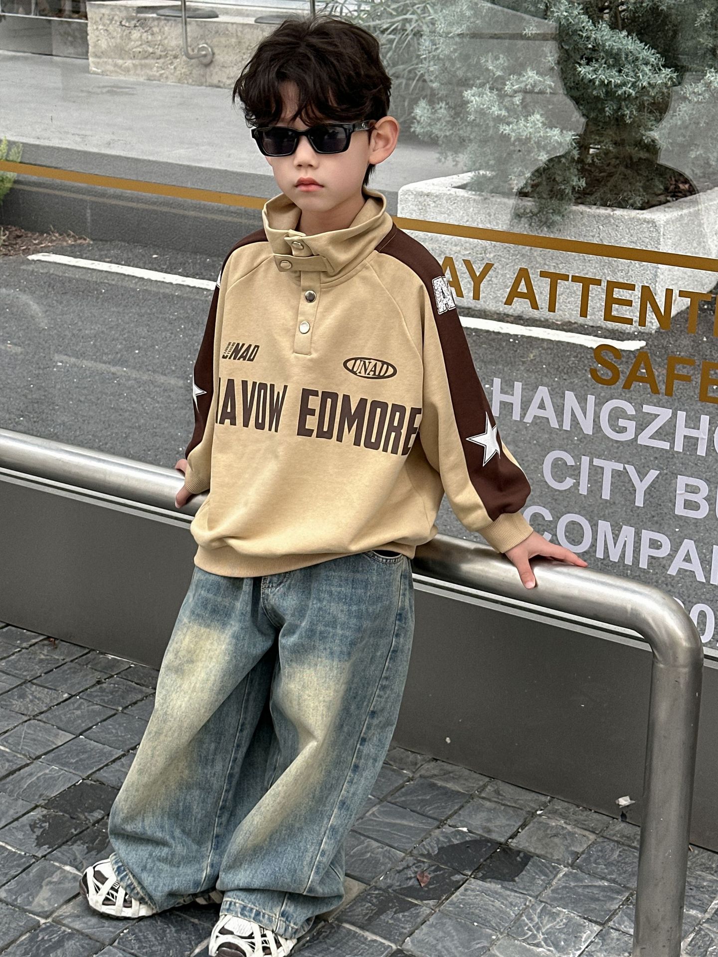 어린이 패션 청바지 2025 봄 새 소년 한국 스타일 느슨한 직선 다리 바지 어린이 봄 유행 바지스토어 가기