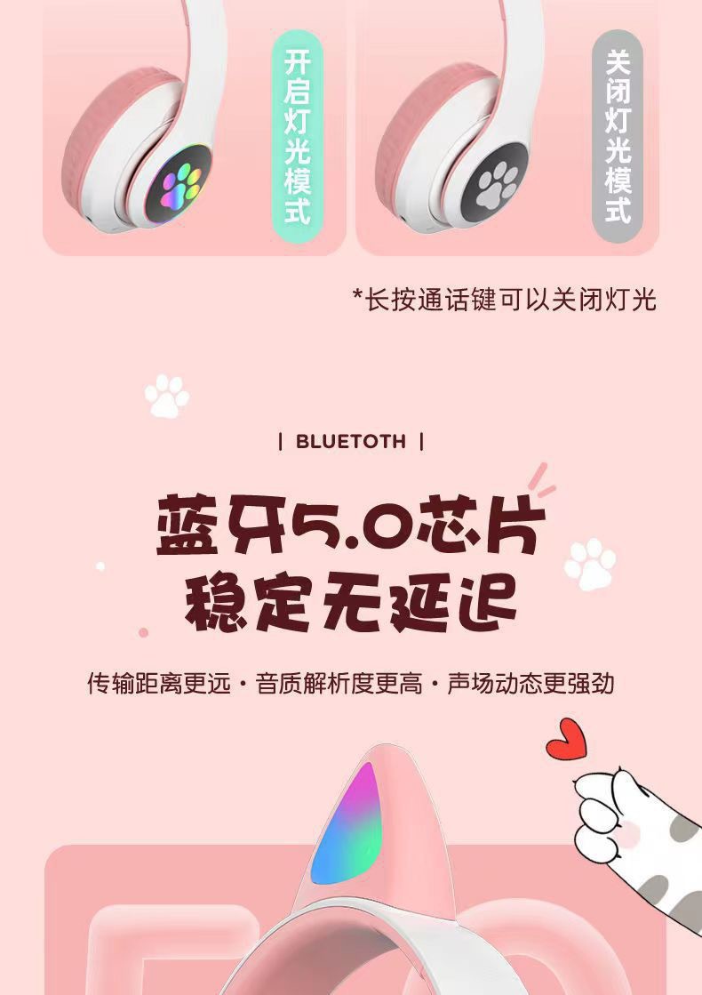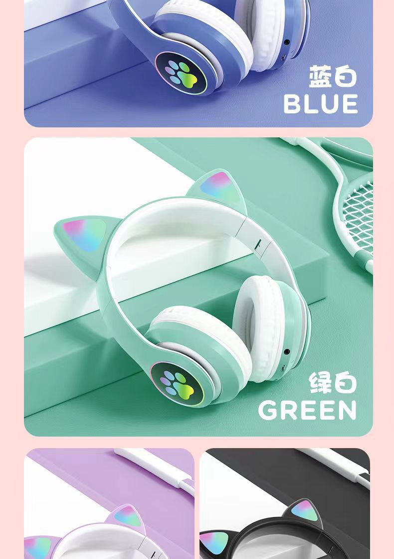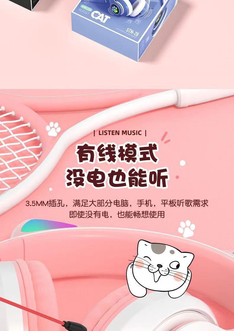 국경 간 헤드셋 블루투스 헤드셋 STN-28 고양이 귀 서브 우퍼 스포츠 빛나는 무선 카드 헤드셋 제조 업체스토어 가기