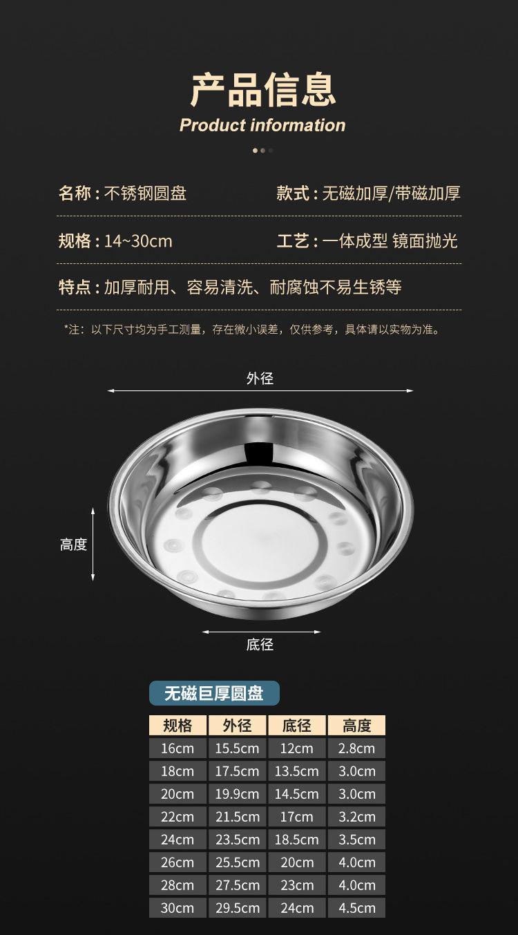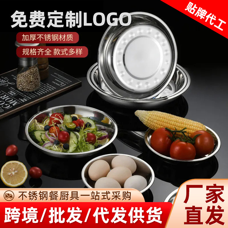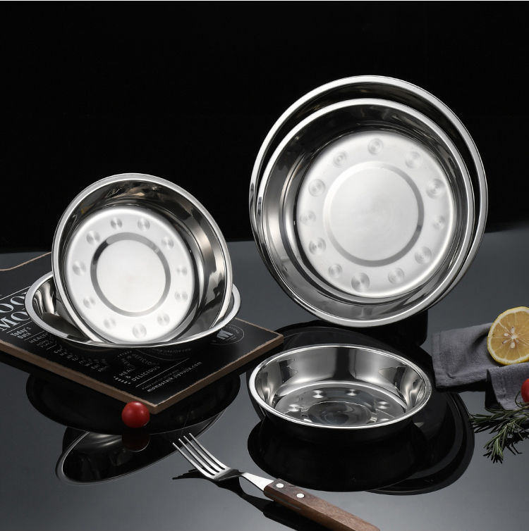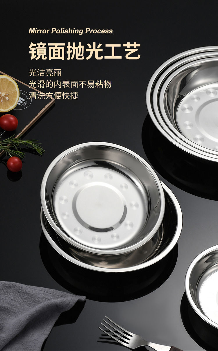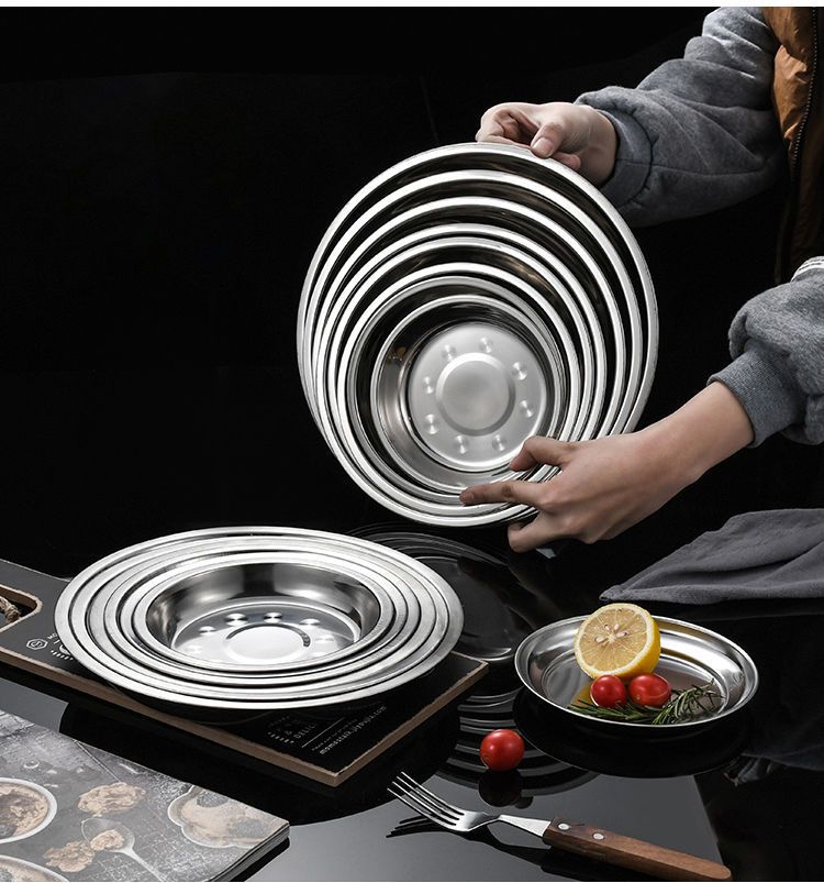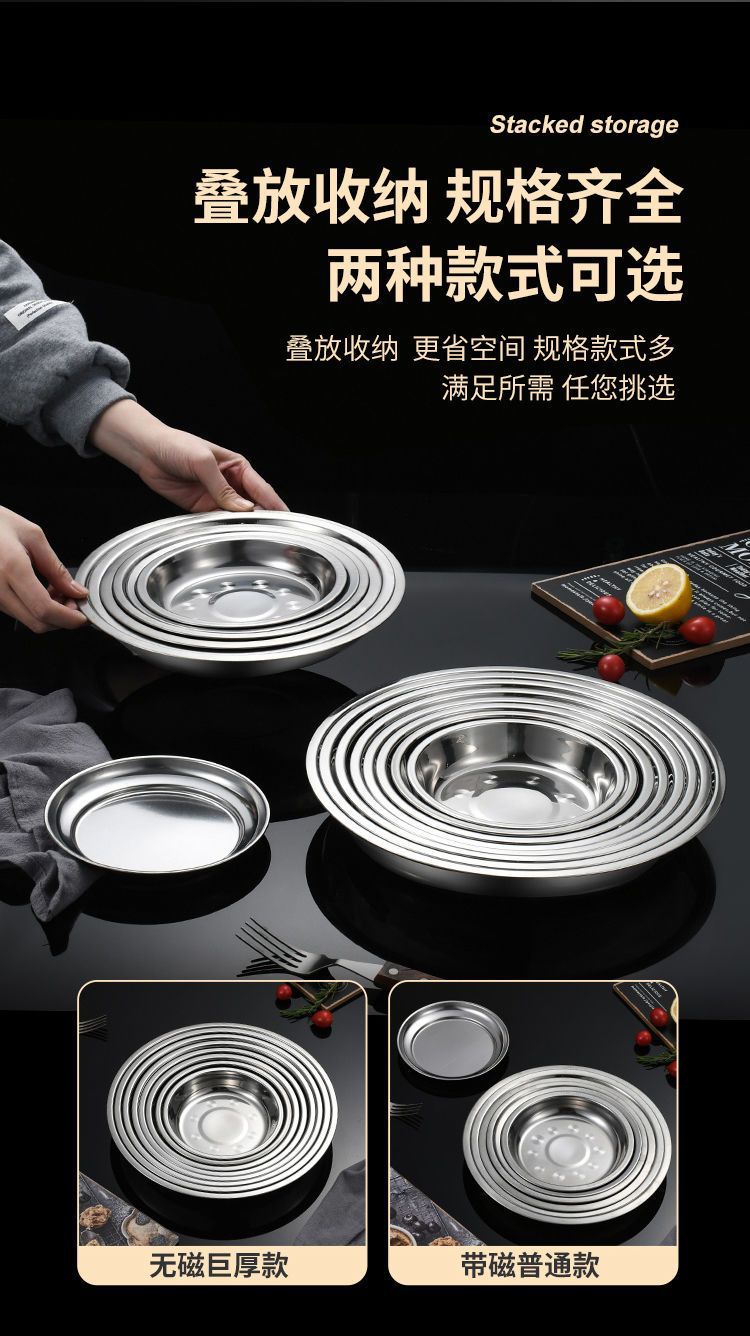 플랫 플레이트 딥 섀시 얕은 섀시 디너 플레이트 피쉬 플레이트 서빙 플레이트 비 자기 스테인레스 스틸 디스크 가정용 두꺼운 디스크스토어 가기