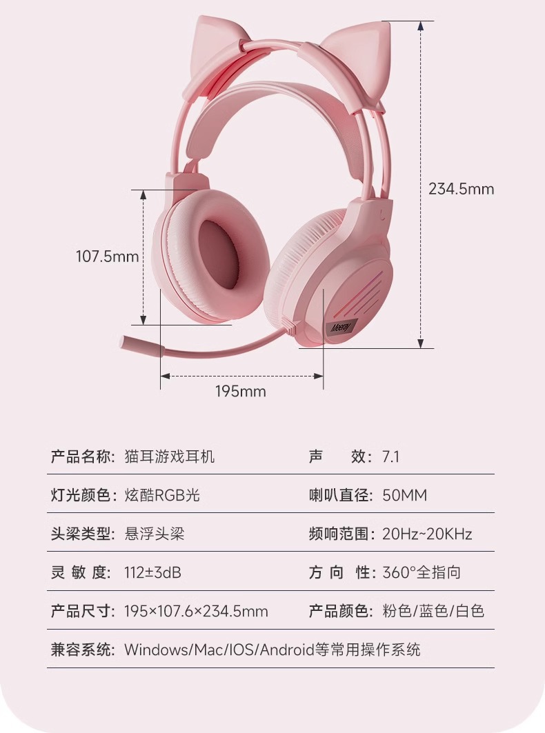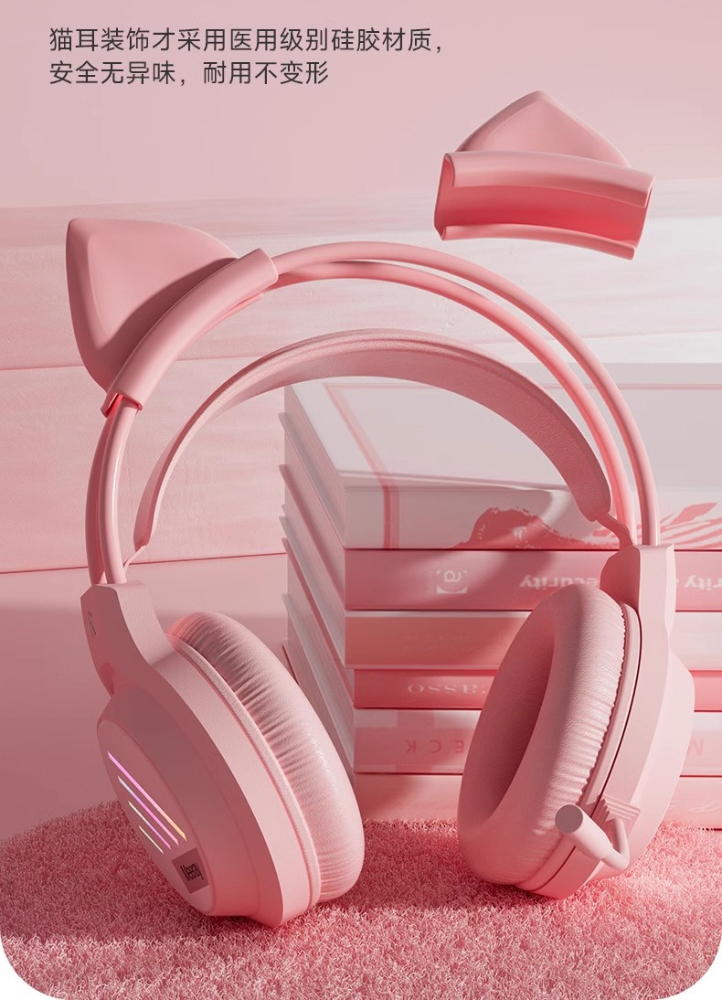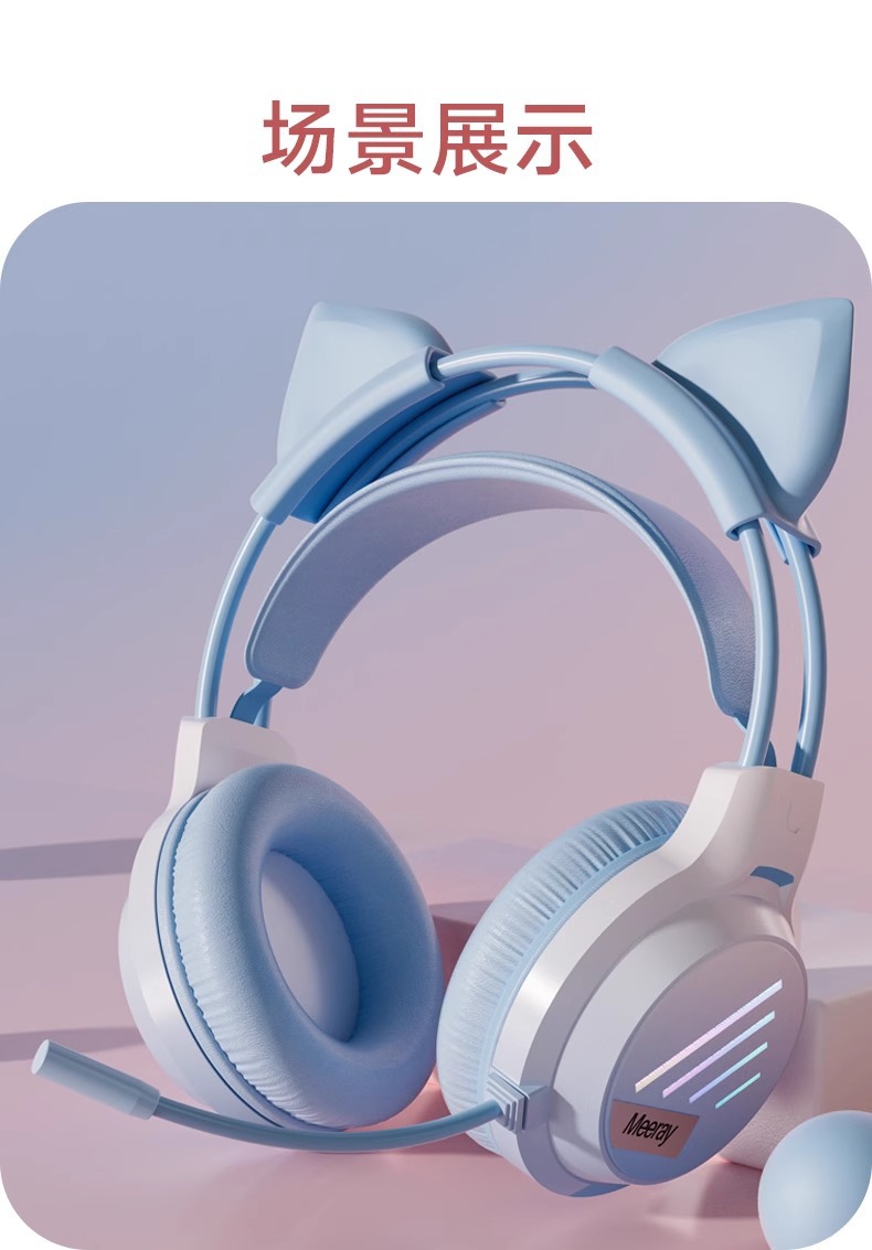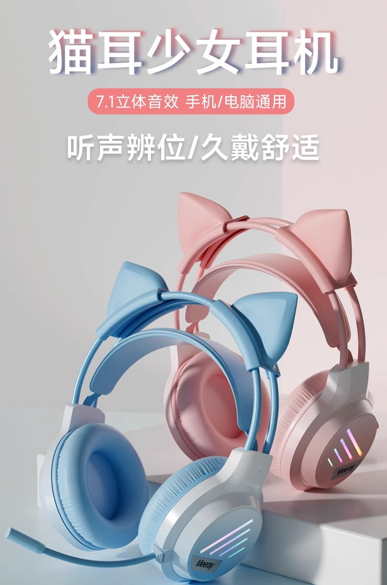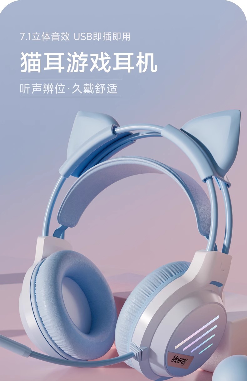 마이크 앵커가있는 M9 고양이 귀 컴퓨터 헤드셋 전용 전자 스포츠 게임 데스크톱 유선 헤드셋 학생스토어 가기