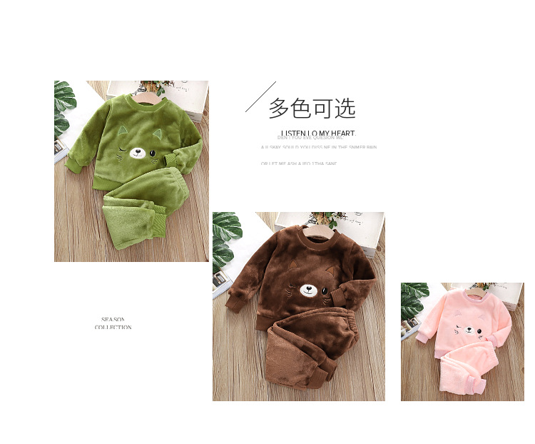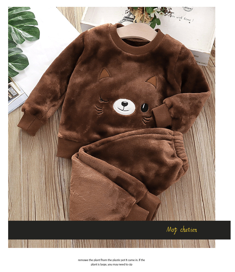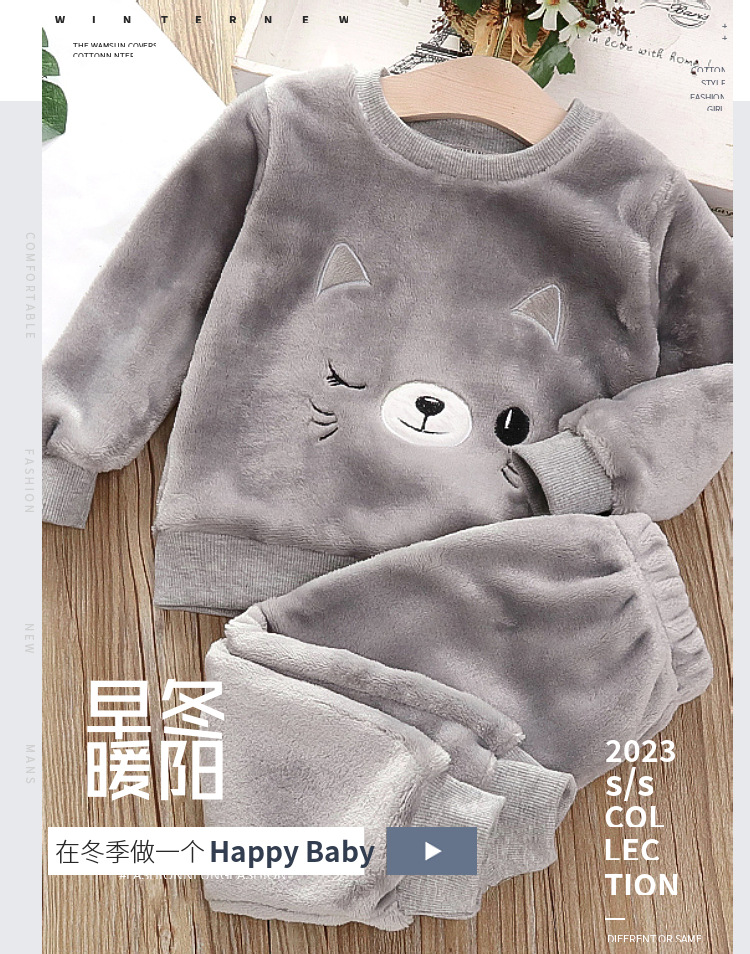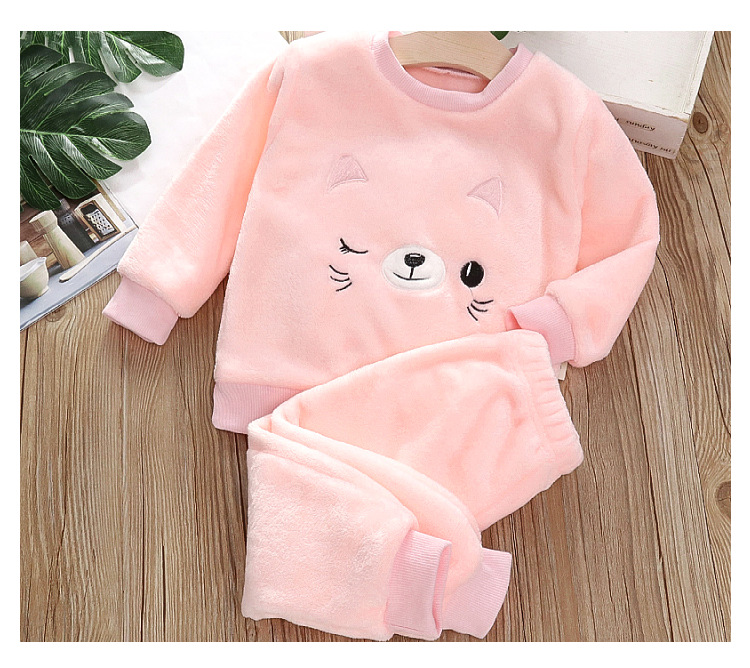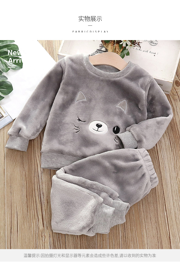 아기 겨울 잠옷 세트 2025 새로운 아기 아동복 소년 소녀 가을과 겨울 플란넬 홈 의류 조수