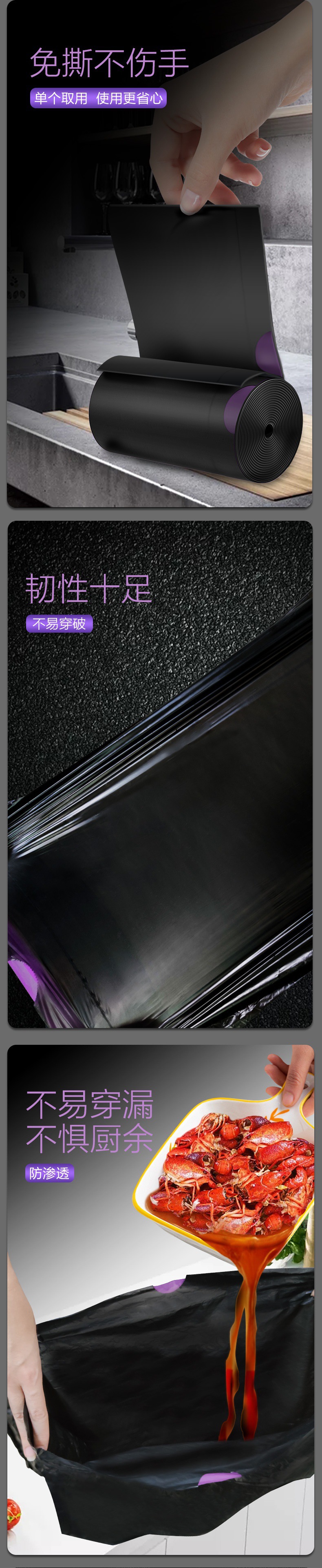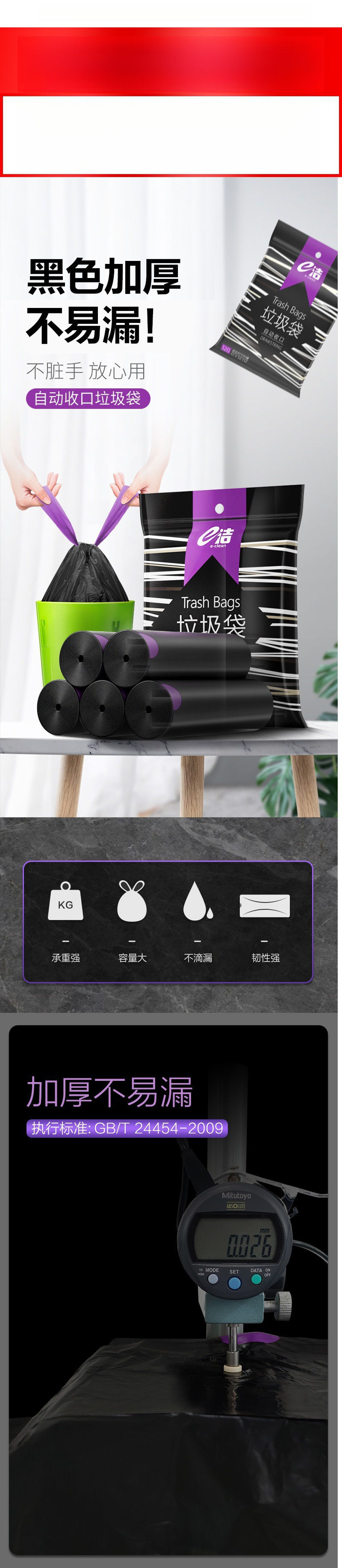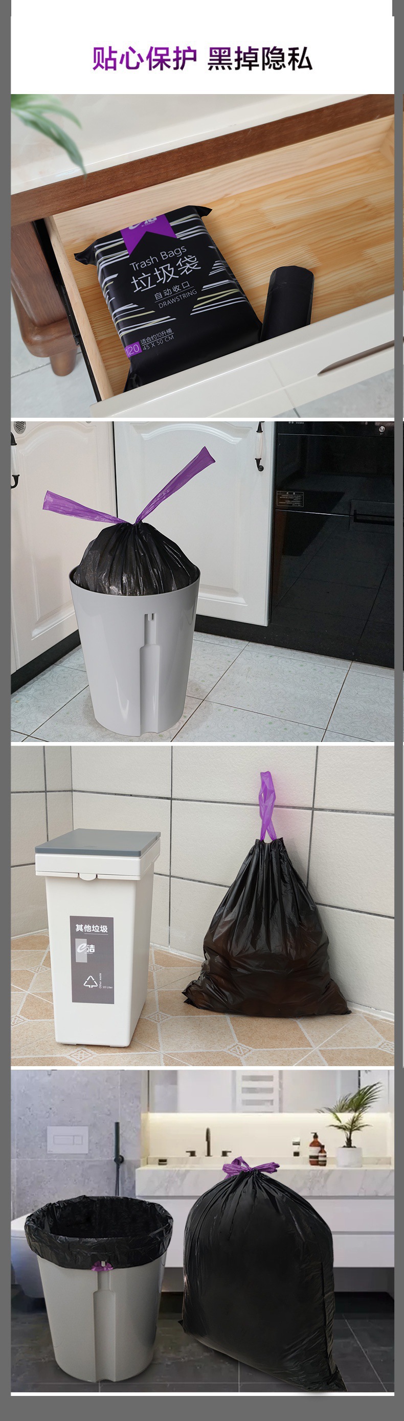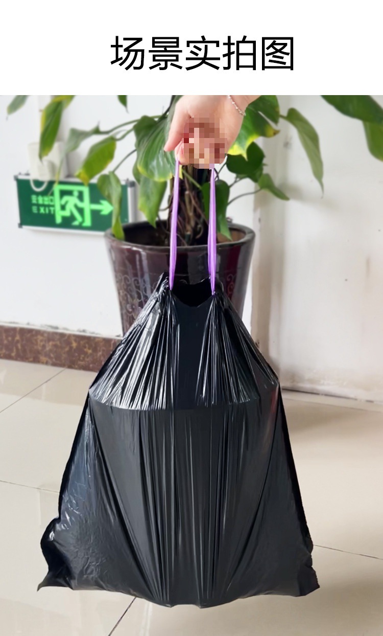 E-깨끗한 눈물이없는 쓰레기 봉투 두꺼운 중형 및 대형 휴대용 끈 검은 주방 일회용 비닐 봉투