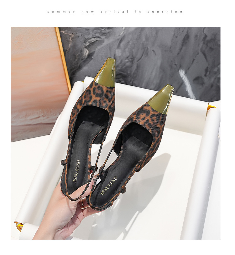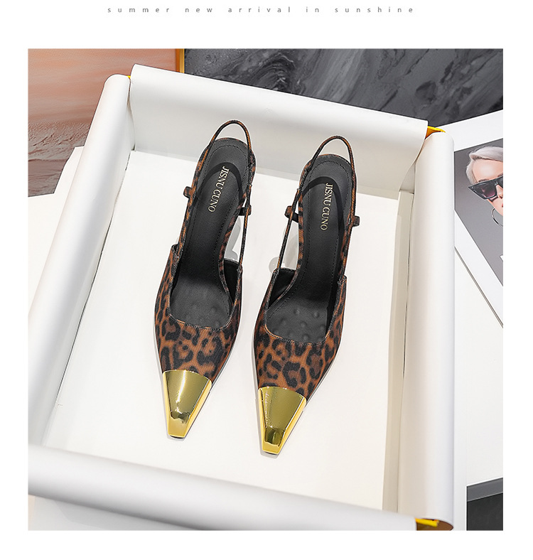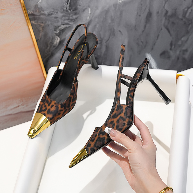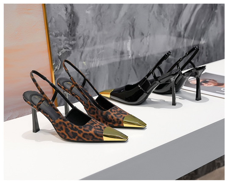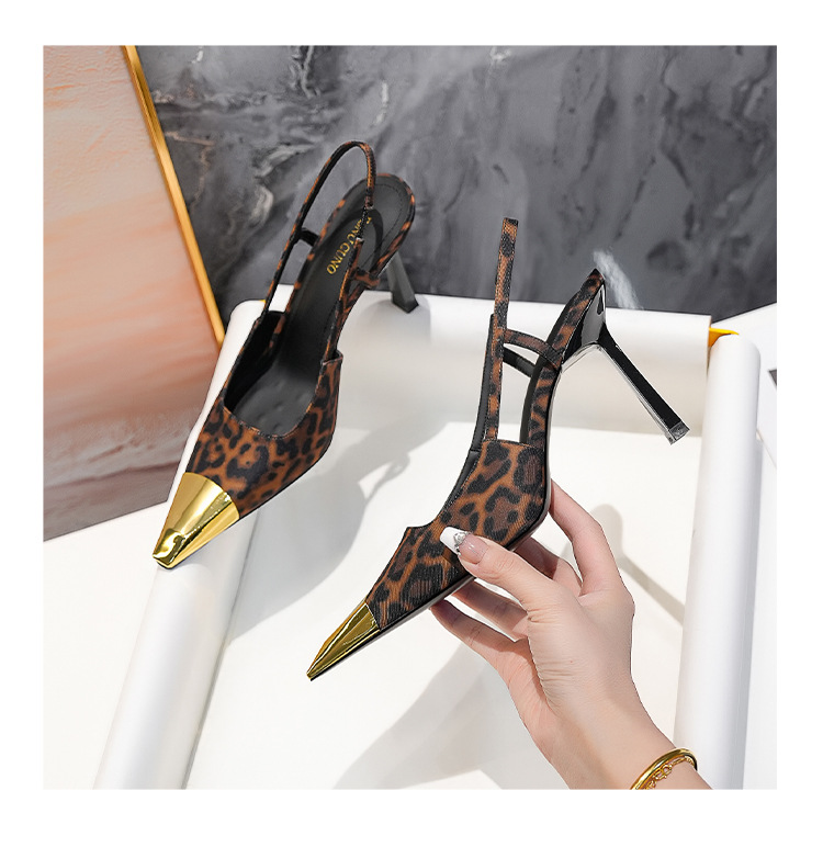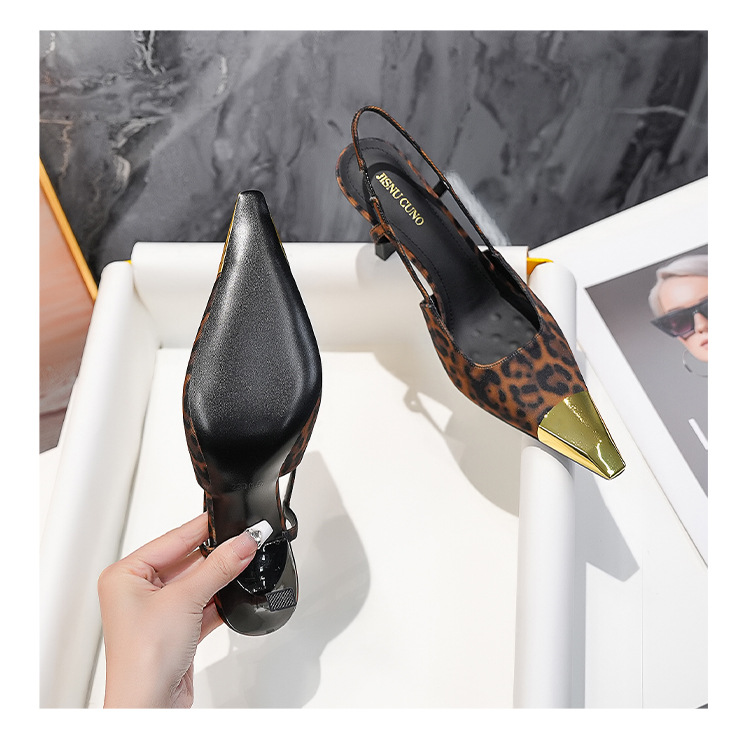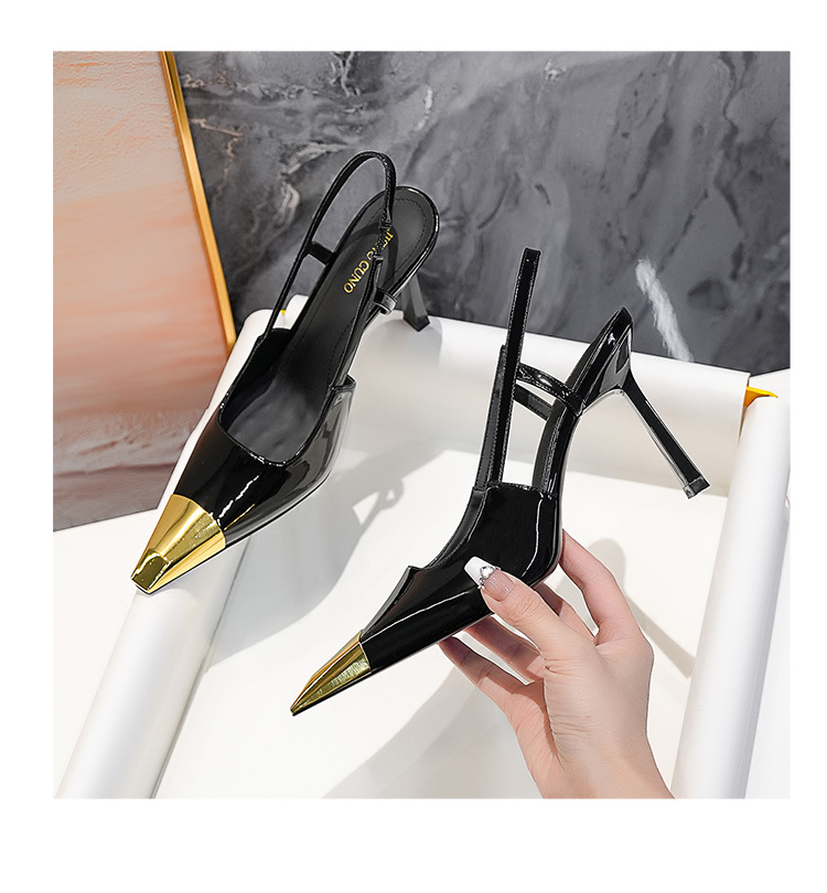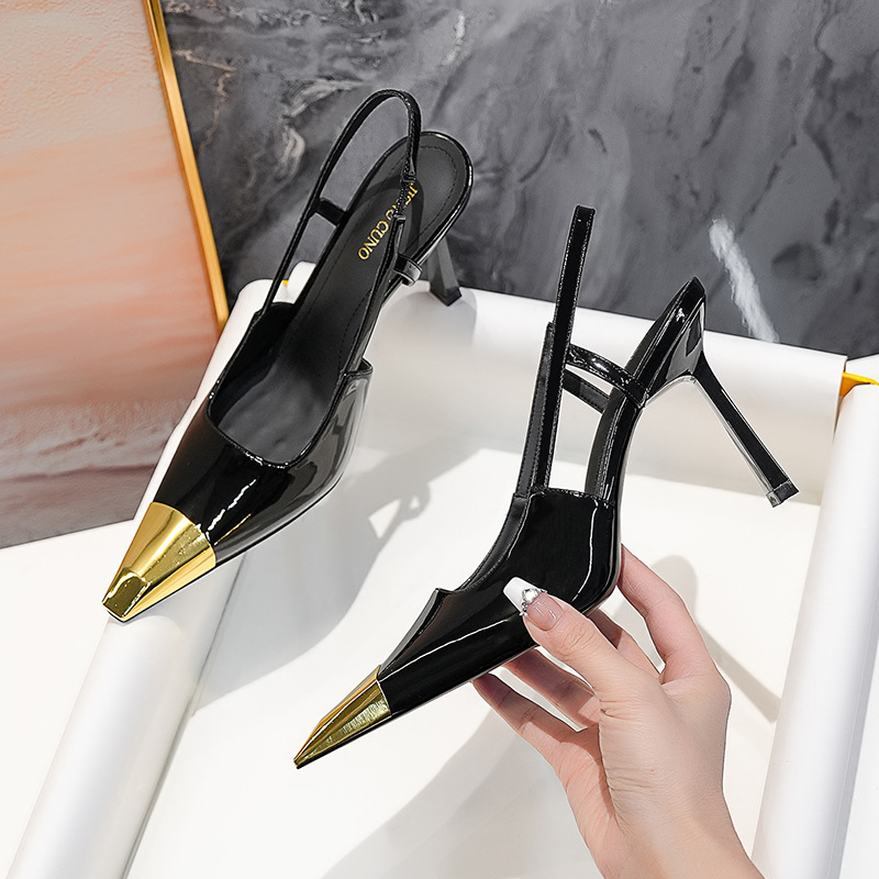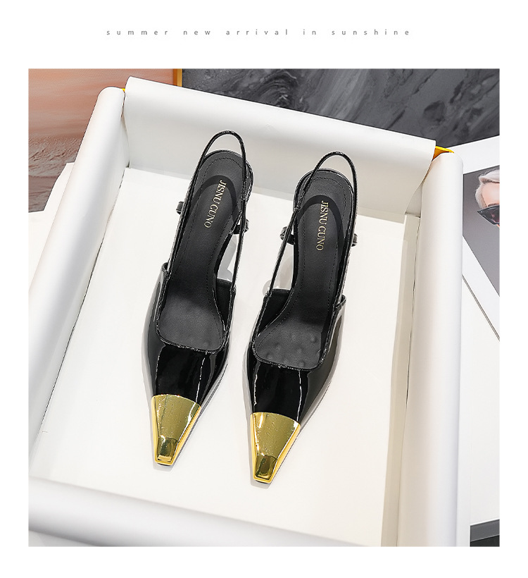 SL 틈새시장 여성용 샌들 2025 봄 여름 신상 뾰족코 얇은 굽 섹시한 프렌치 스타일 메탈 백리스 하이힐 여성용스토어 가기