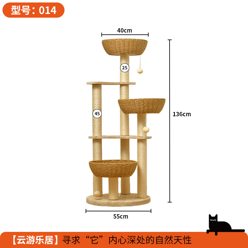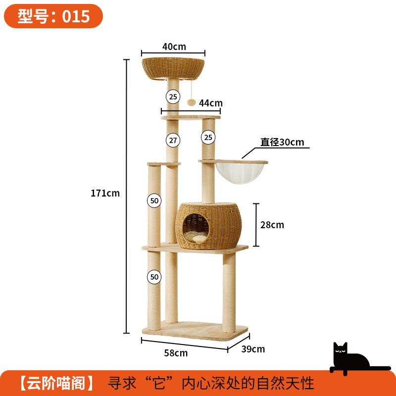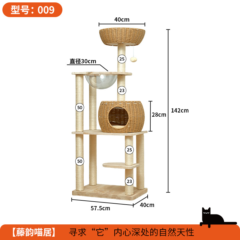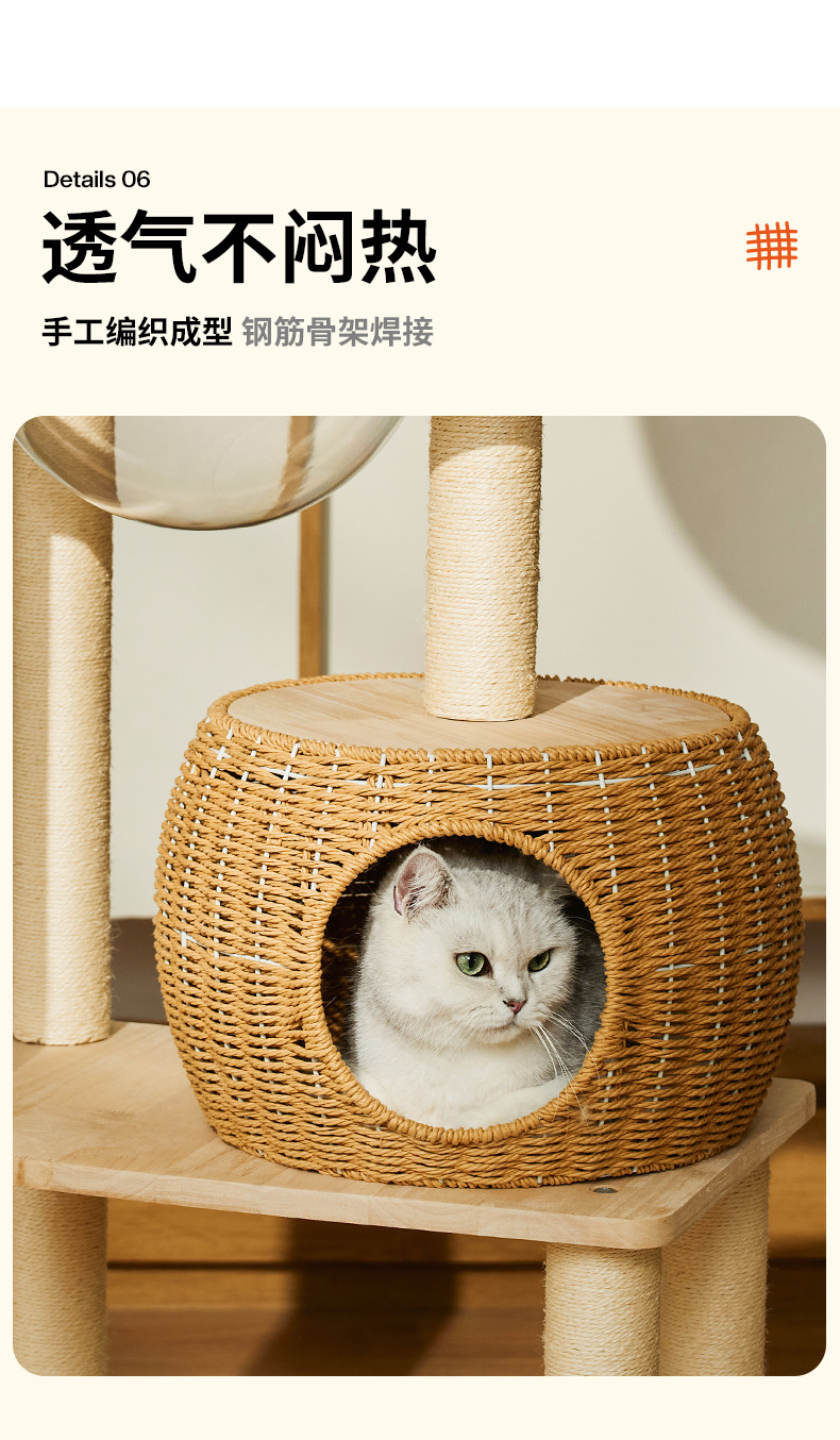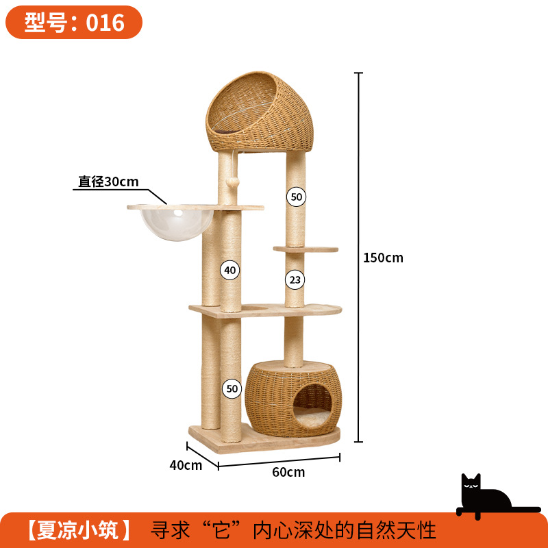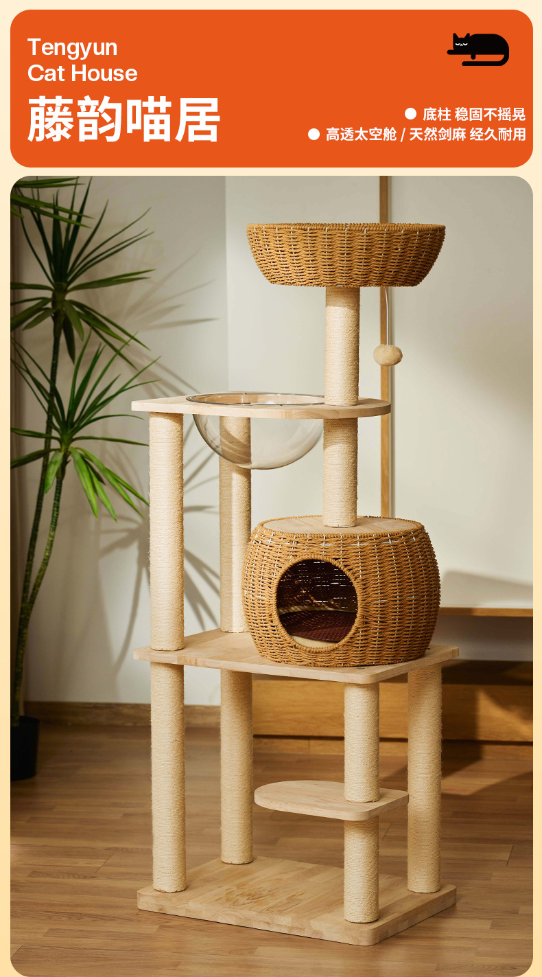 단단한 나무 고양이 등반 프레임 짠 바구니는 고양이 둥지 고양이 점프 플랫폼 고양이 나무 통합 공간 캡슐 다기능 고양이 빌라의 영역을 차지하지 않습니다