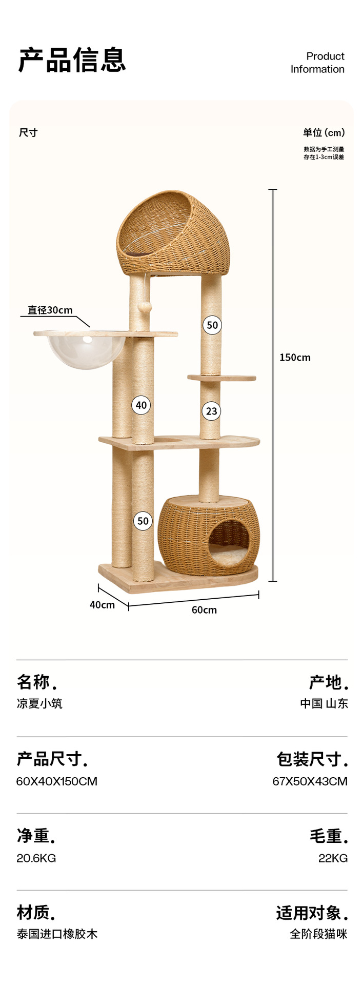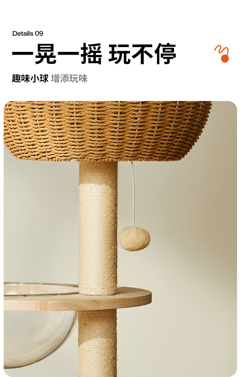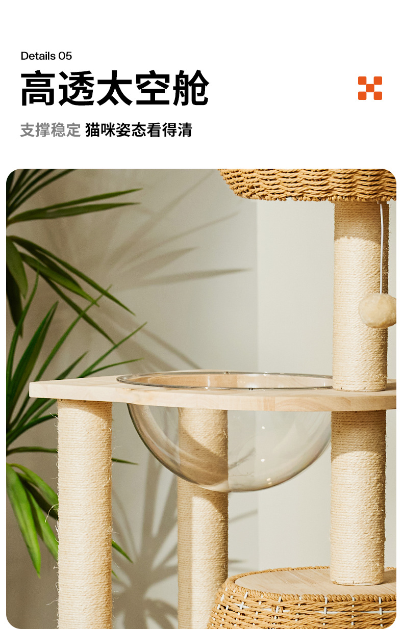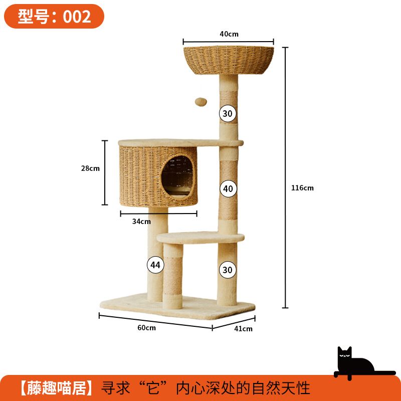 단단한 나무 고양이 등반 프레임 짠 바구니는 고양이 둥지 고양이 점프 플랫폼 고양이 나무 통합 공간 캡슐 다기능 고양이 빌라의 영역을 차지하지 않습니다