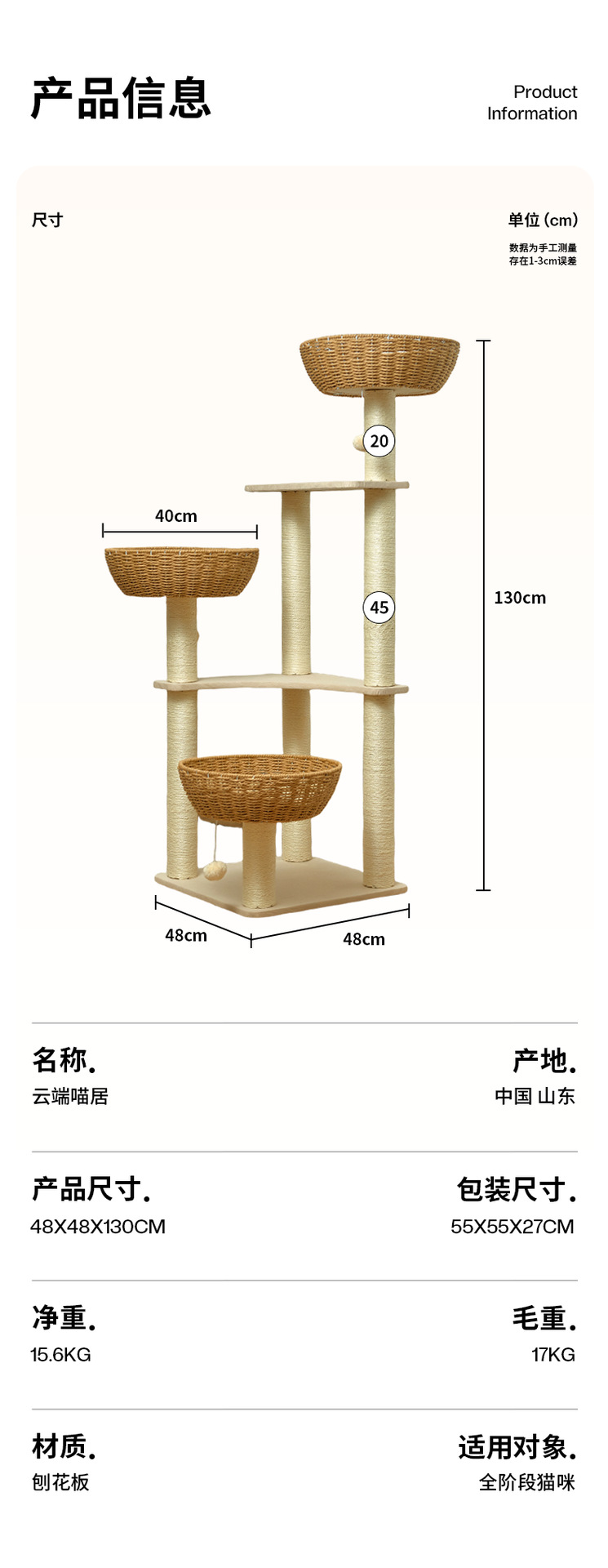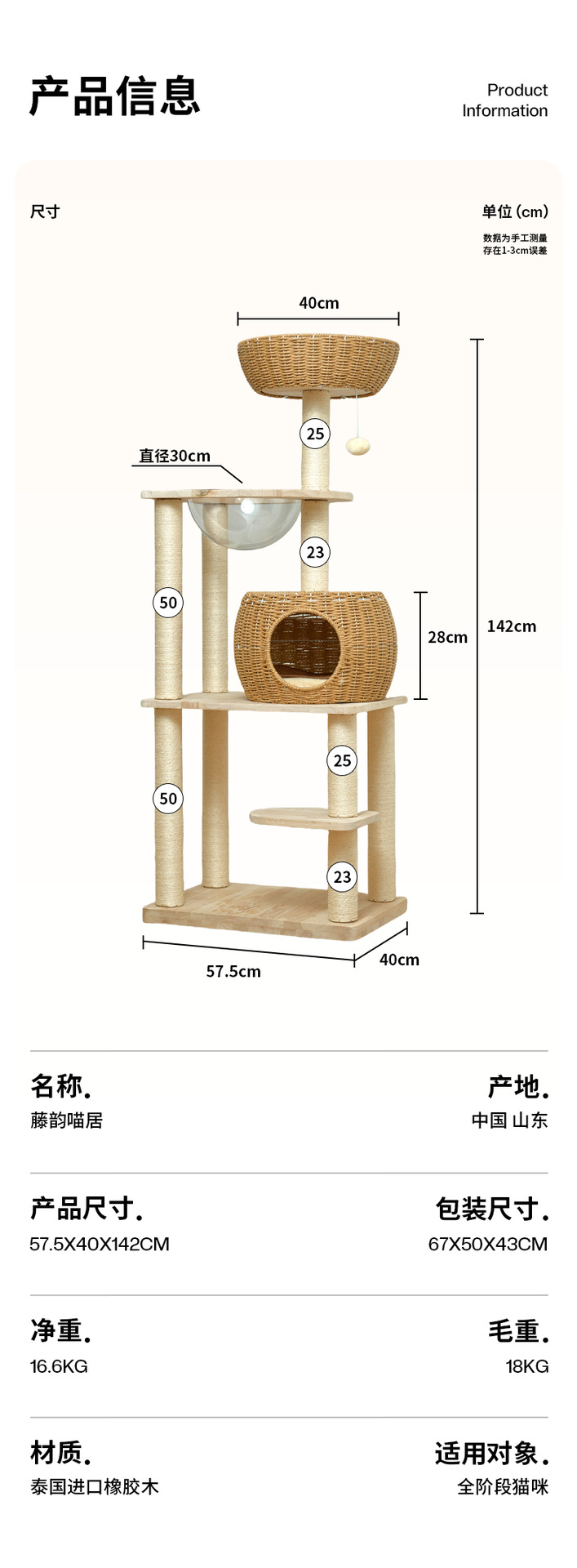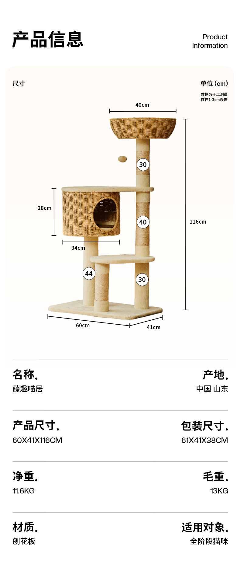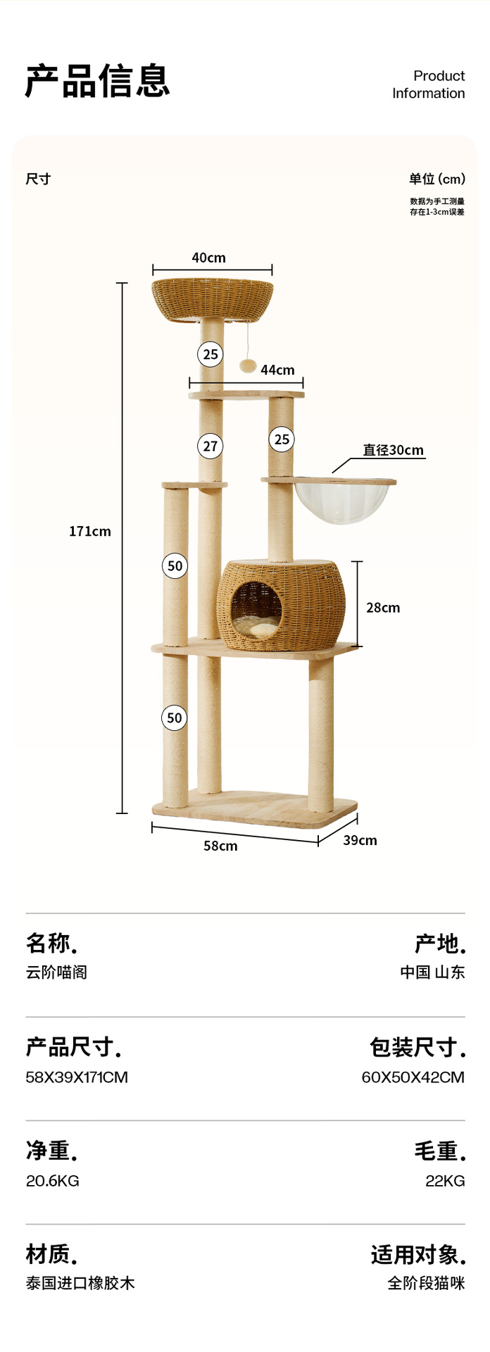 단단한 나무 고양이 등반 프레임 짠 바구니는 고양이 둥지 고양이 점프 플랫폼 고양이 나무 통합 공간 캡슐 다기능 고양이 빌라의 영역을 차지하지 않습니다