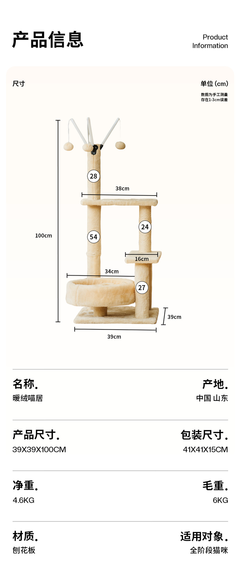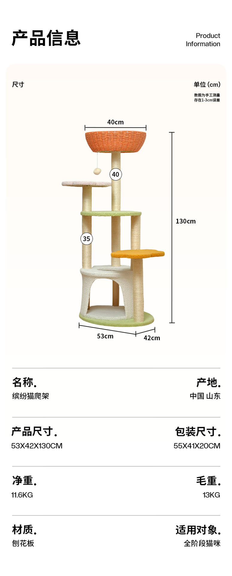 • 다채로운 고양이 등반 프레임