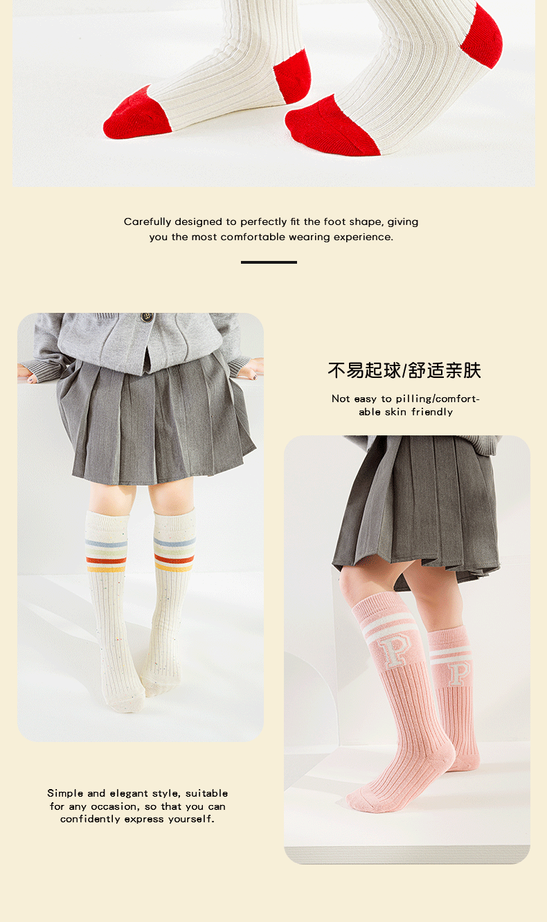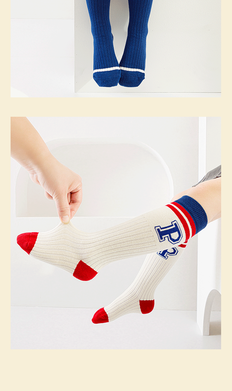 새로운 봄과 가을 커프 양말 어린이 중간 길이의 양말 소년과 소녀 스트레치 코튼 귀여운 유행 양말