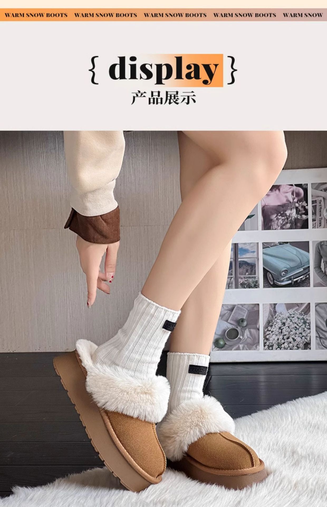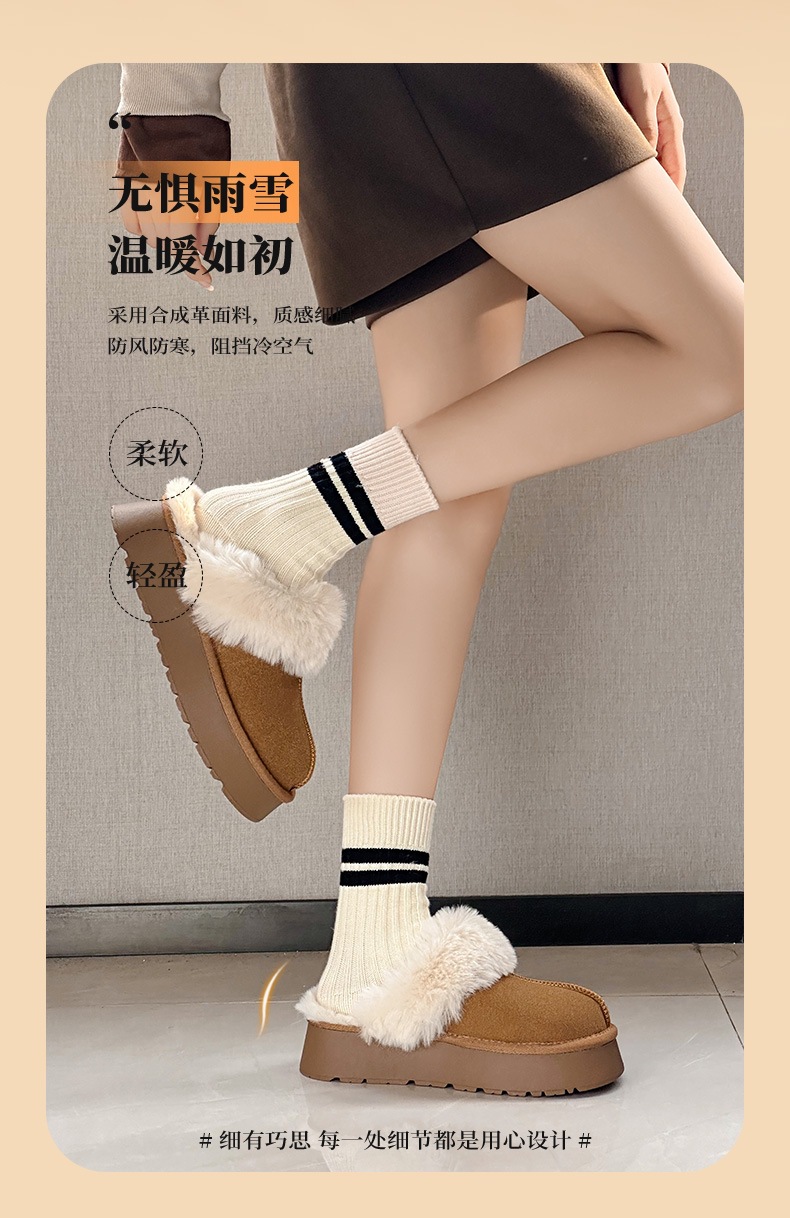 W1662 국내산 두꺼운 밑창 면화 신발 여성용 겨울 신상 반슬리퍼 여성용 외출용 플러스 벨벳 두꺼운 보온 스노우 부츠스토어 가기