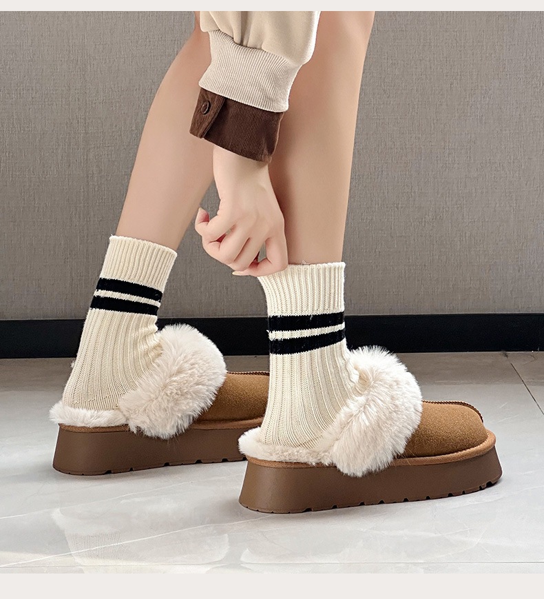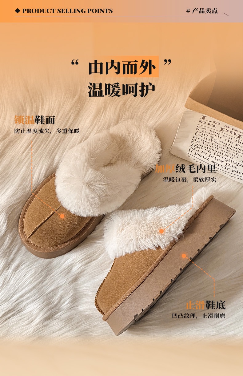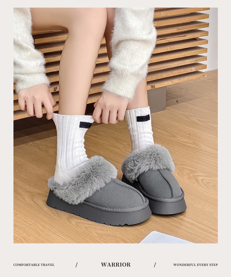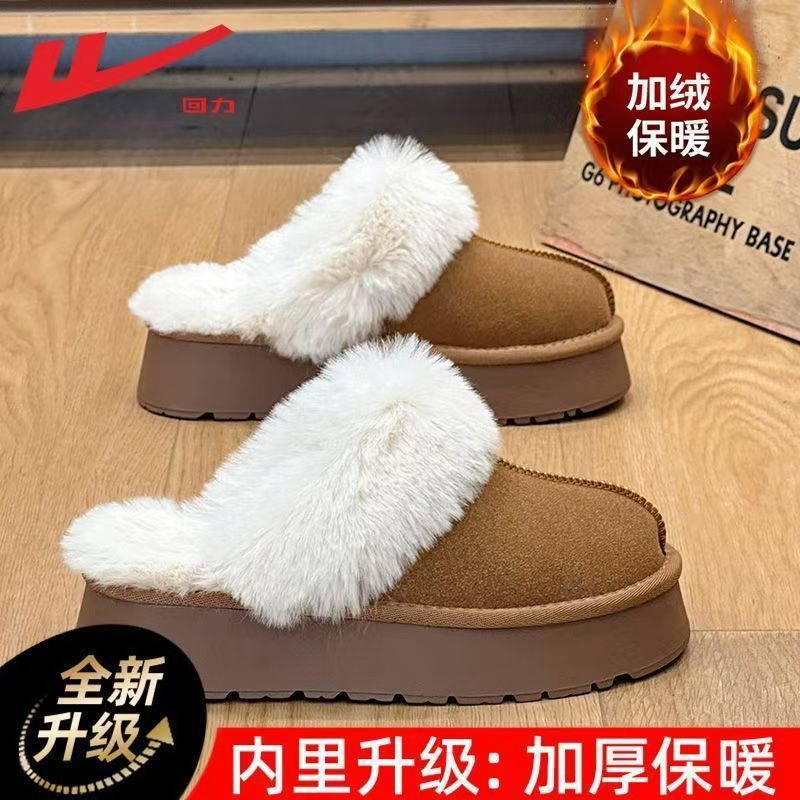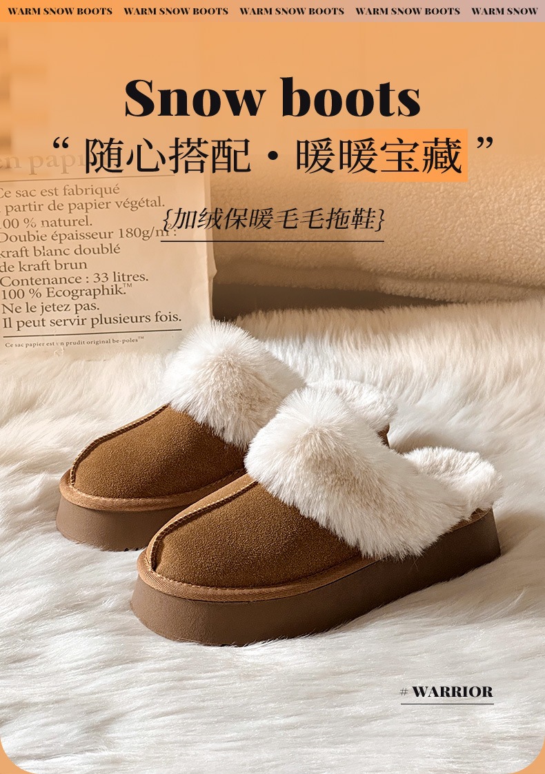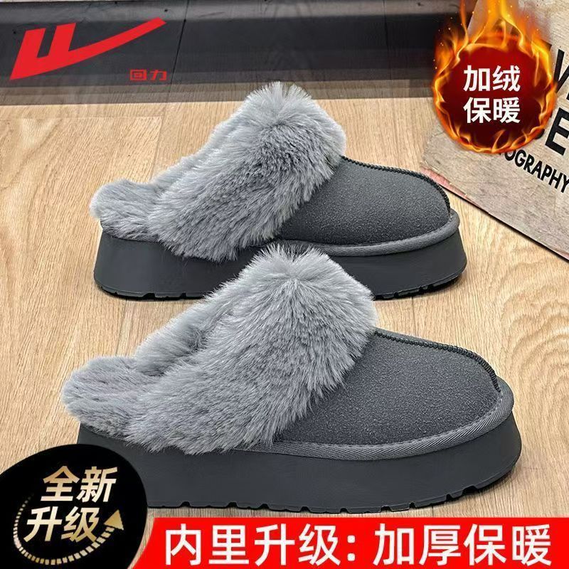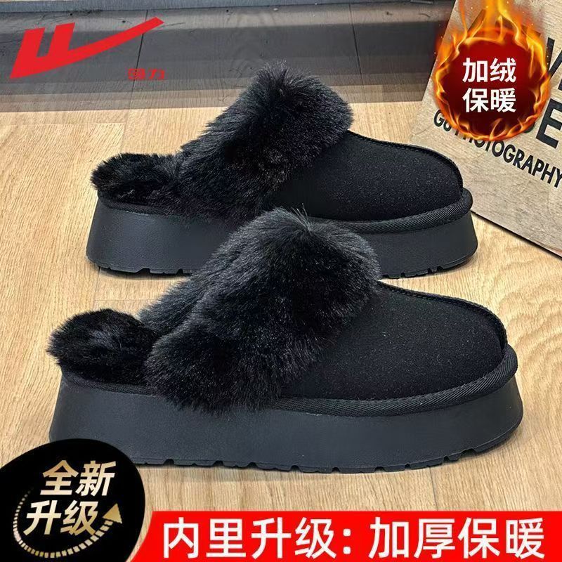 W1662 국내산 두꺼운 밑창 면화 신발 여성용 겨울 신상 반슬리퍼 여성용 외출용 플러스 벨벳 두꺼운 보온 스노우 부츠