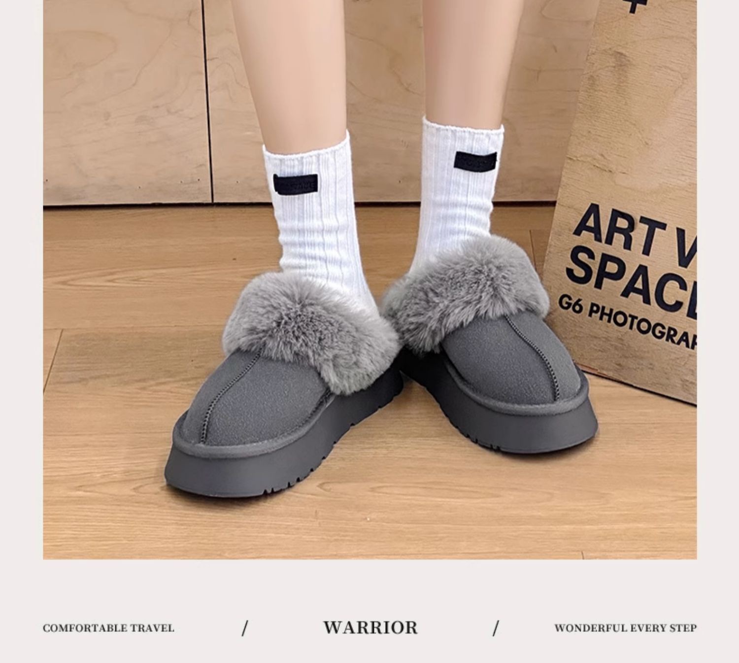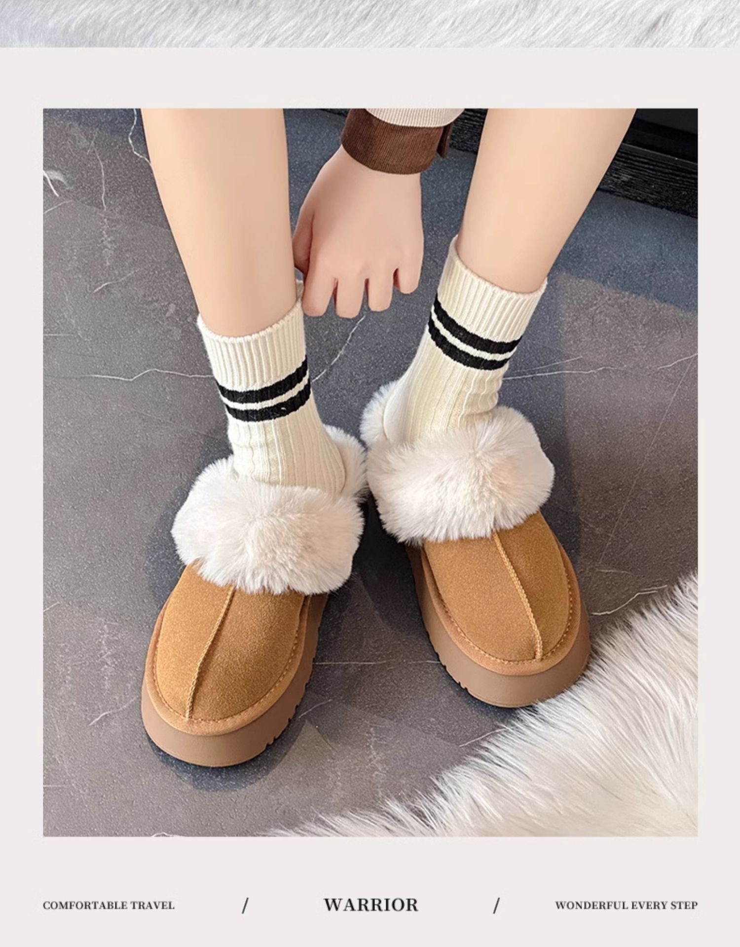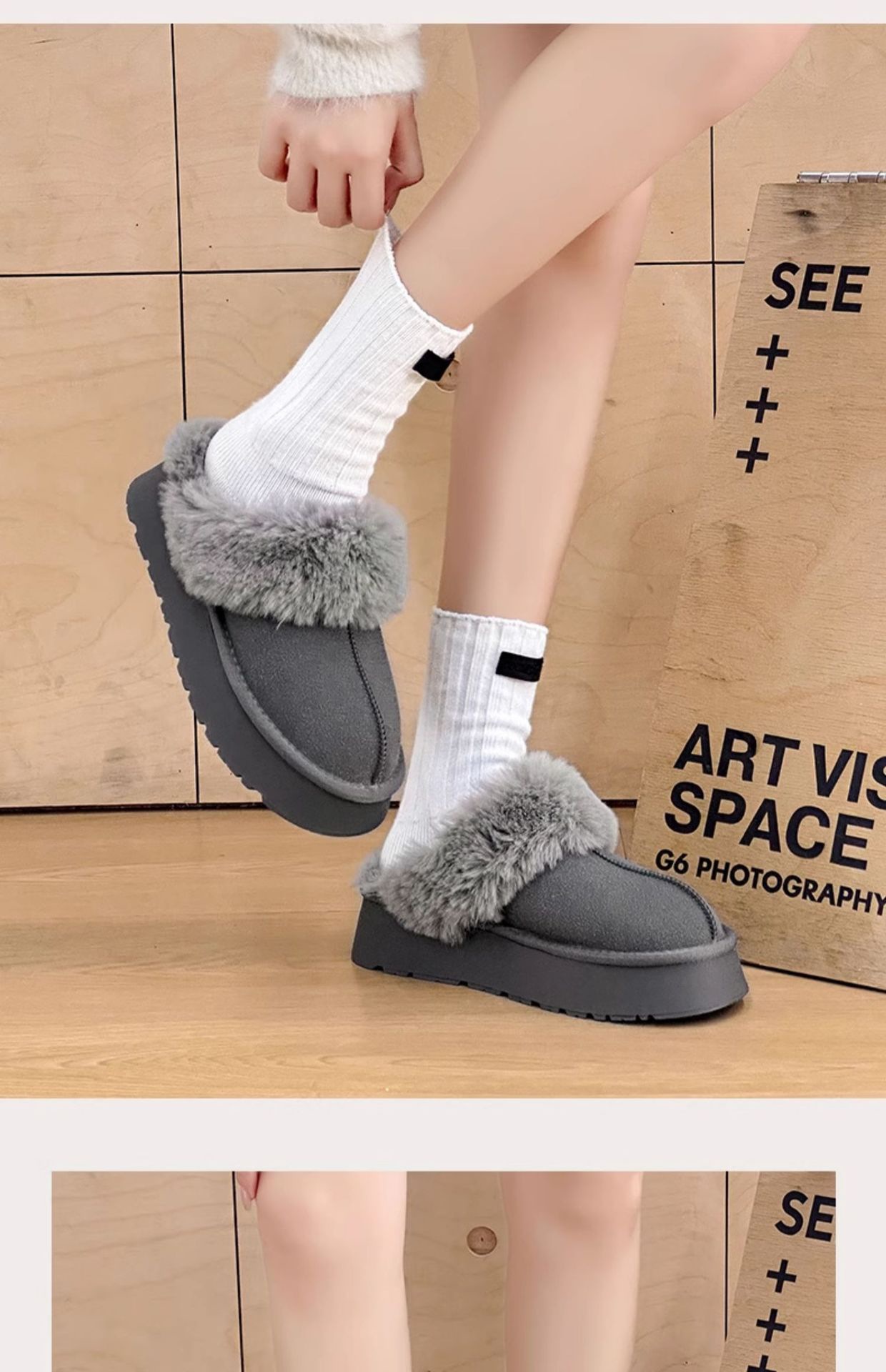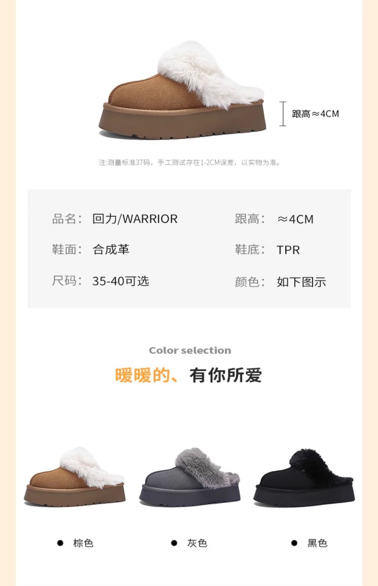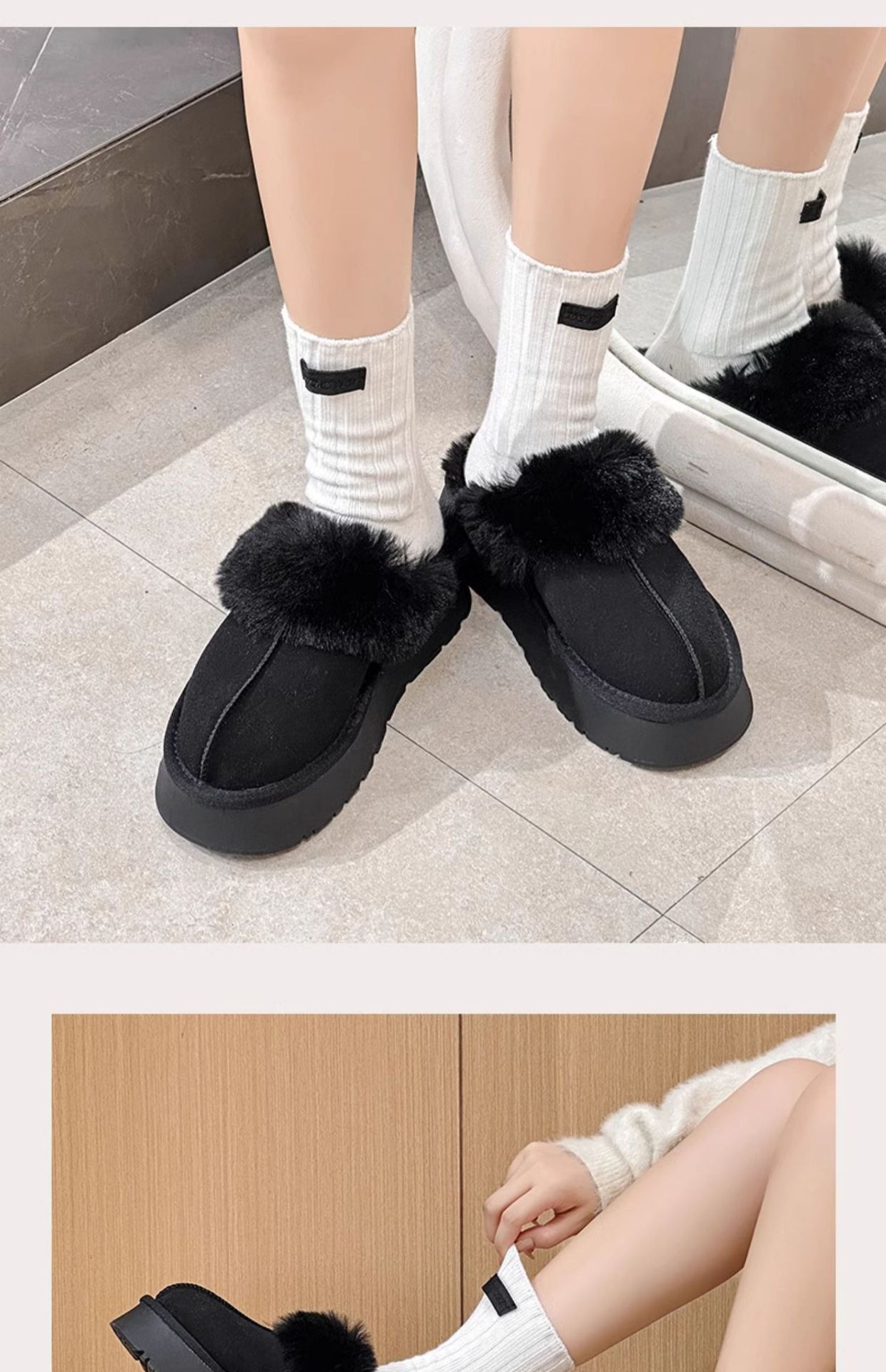 W1662 국내산 두꺼운 밑창 면화 신발 여성용 겨울 신상 반슬리퍼 여성용 외출용 플러스 벨벳 두꺼운 보온 스노우 부츠