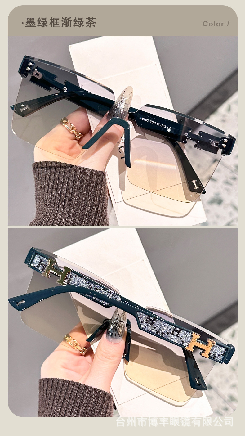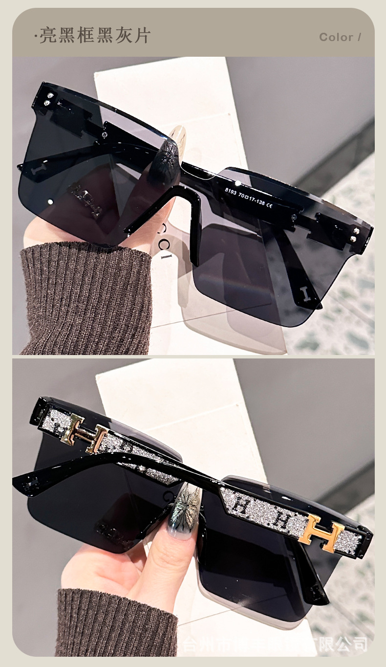 2025 새로운 작은 향기로운 고글 다리 편지 우수한 감각 패션 대형 프레임 선글라스 여성의 고급 플래시 트렌디 선글라스스토어 가기