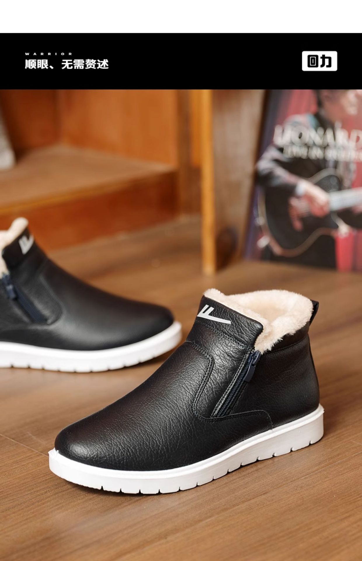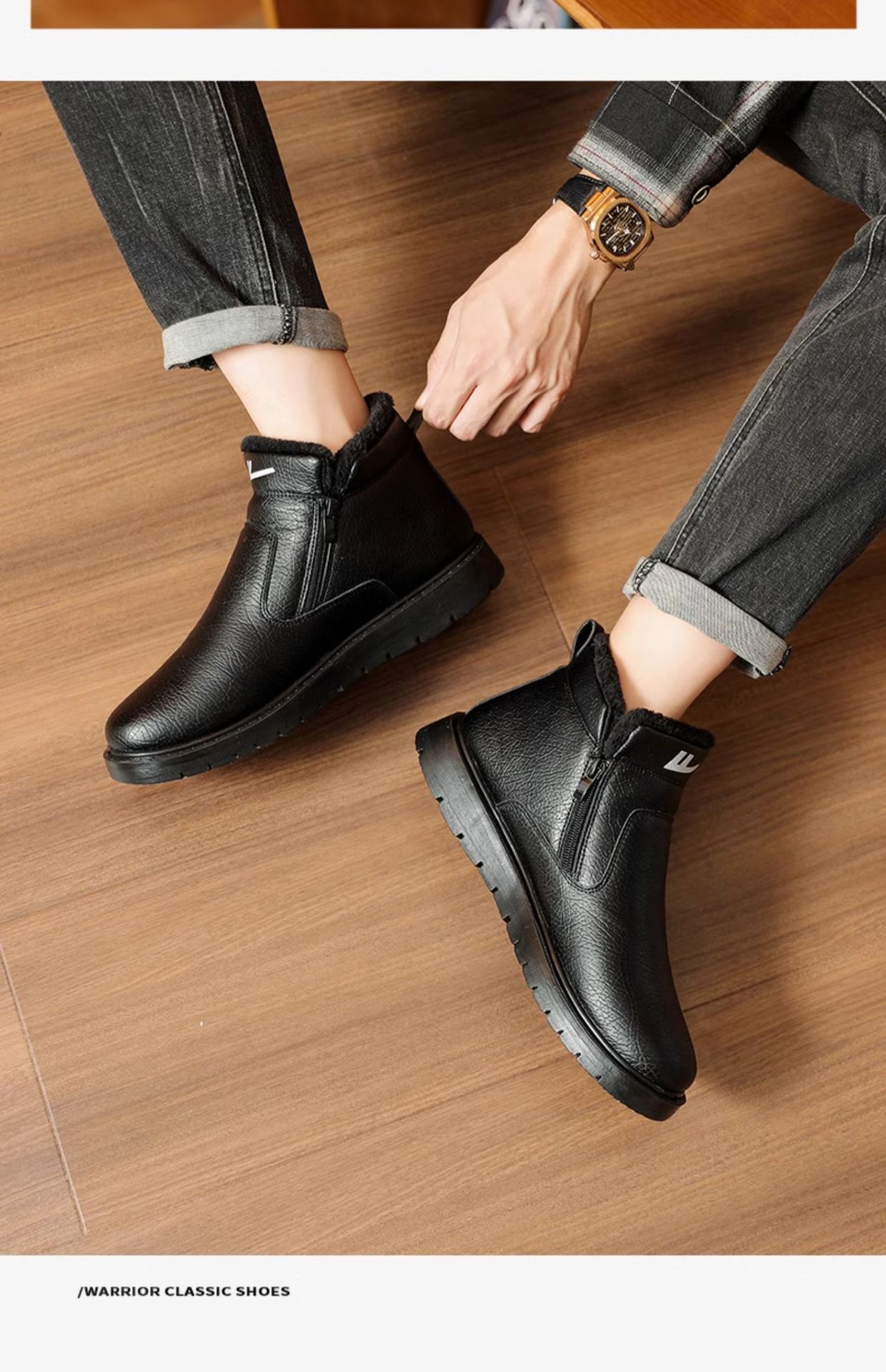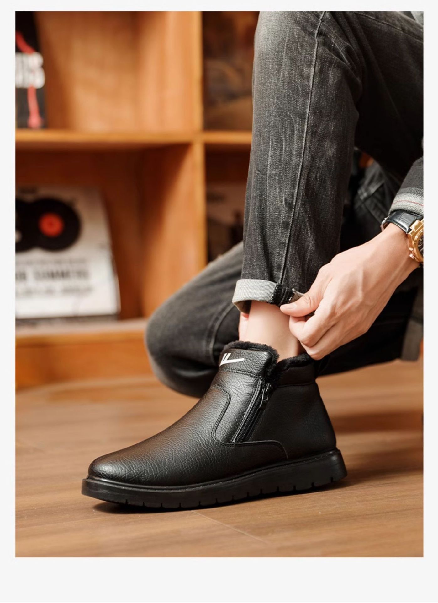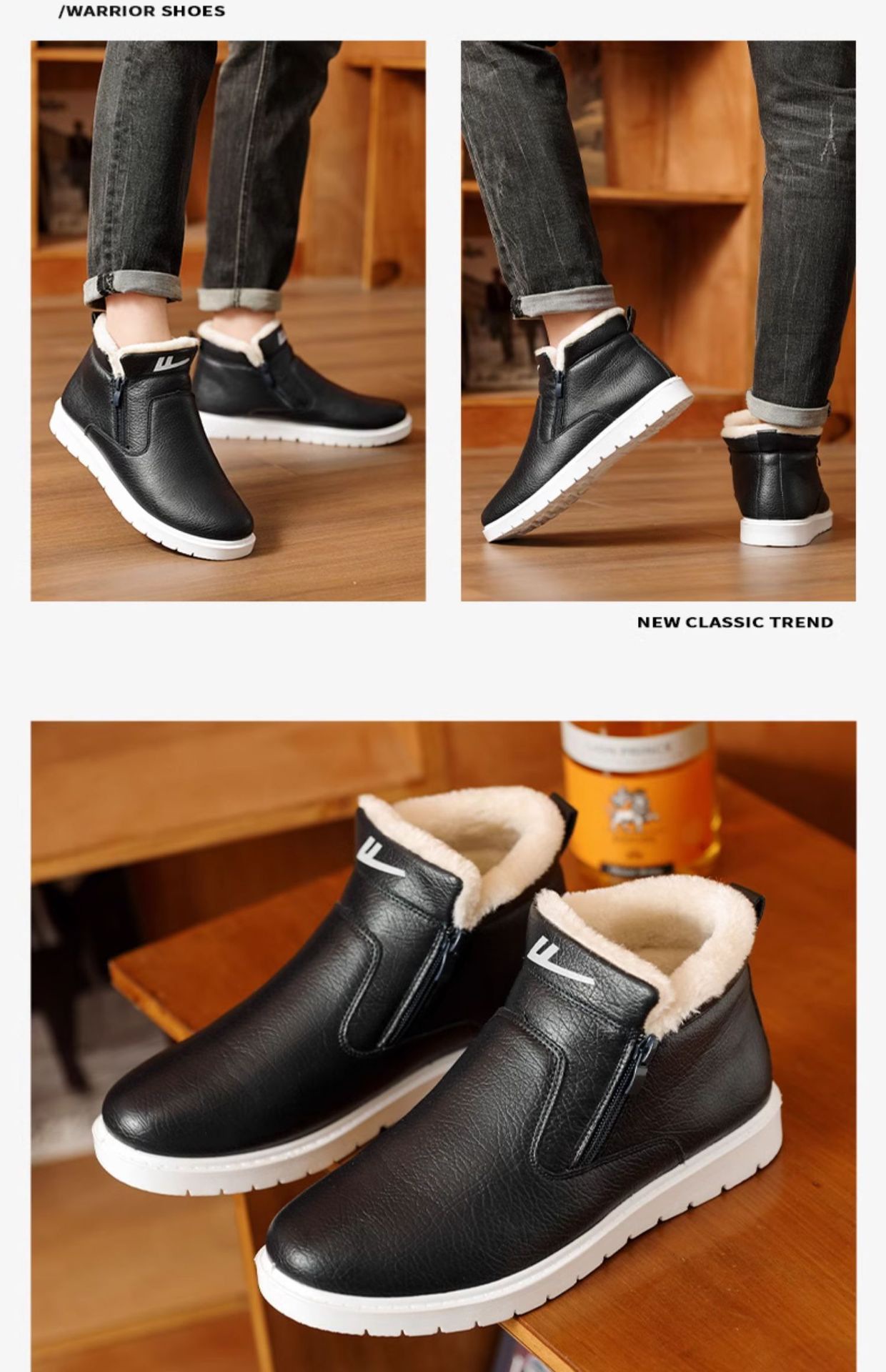 W1636 국내 면화 남성 신발 2024 겨울 새로운 스타일 벨벳 두꺼운 따뜻한 신발 가죽 방수 스노우 부츠스토어 가기