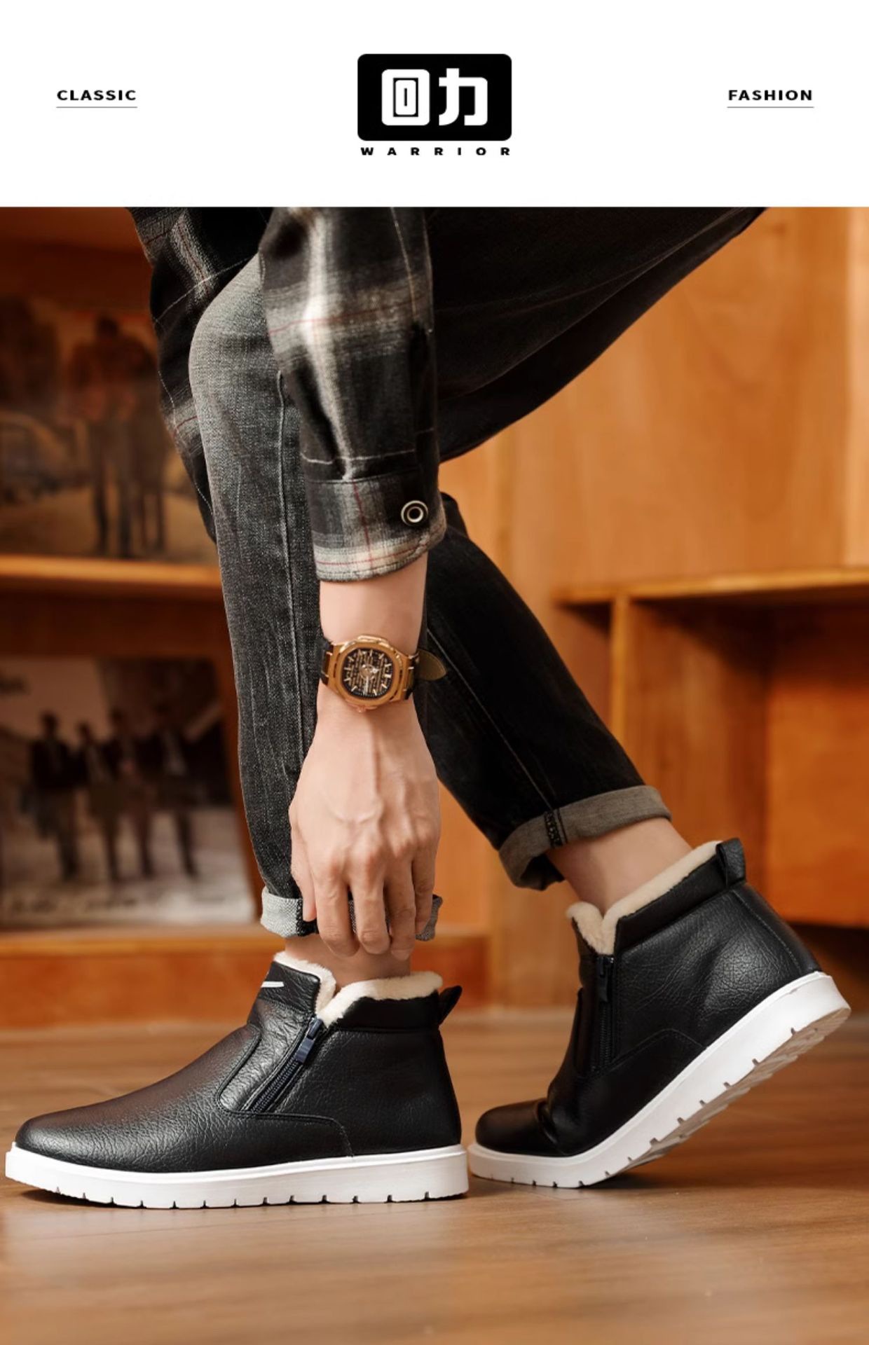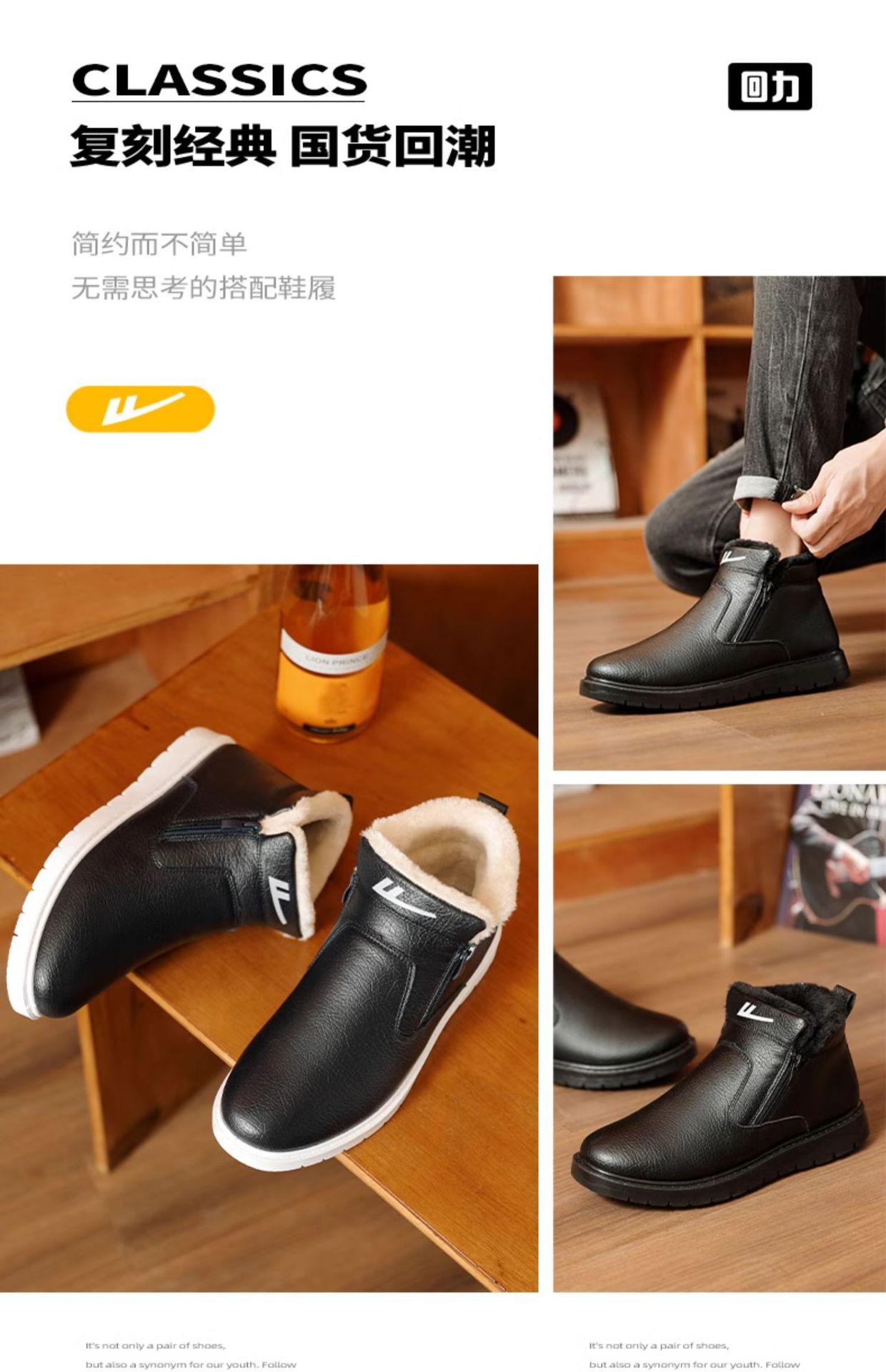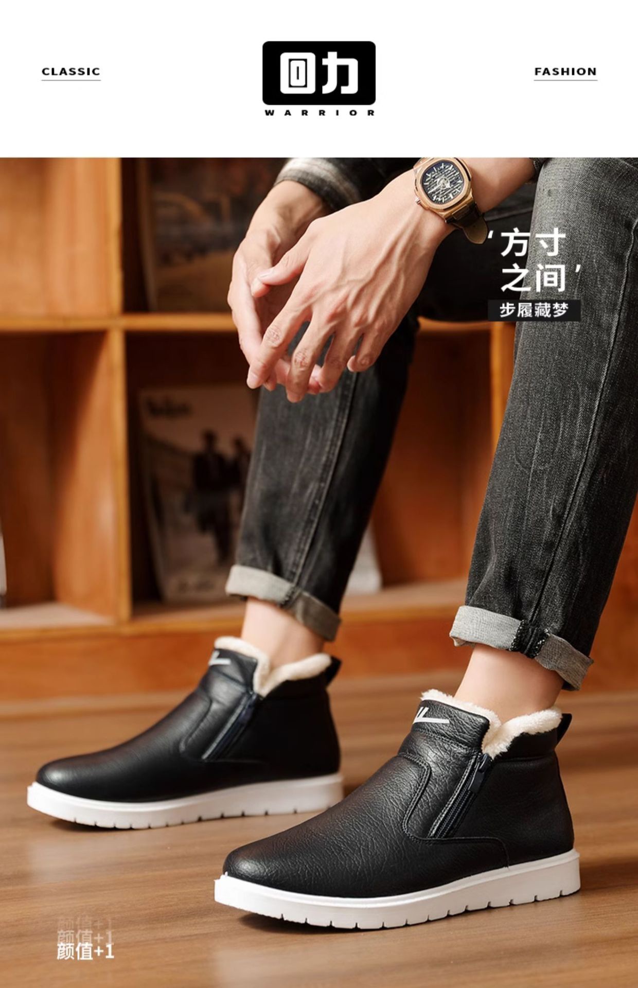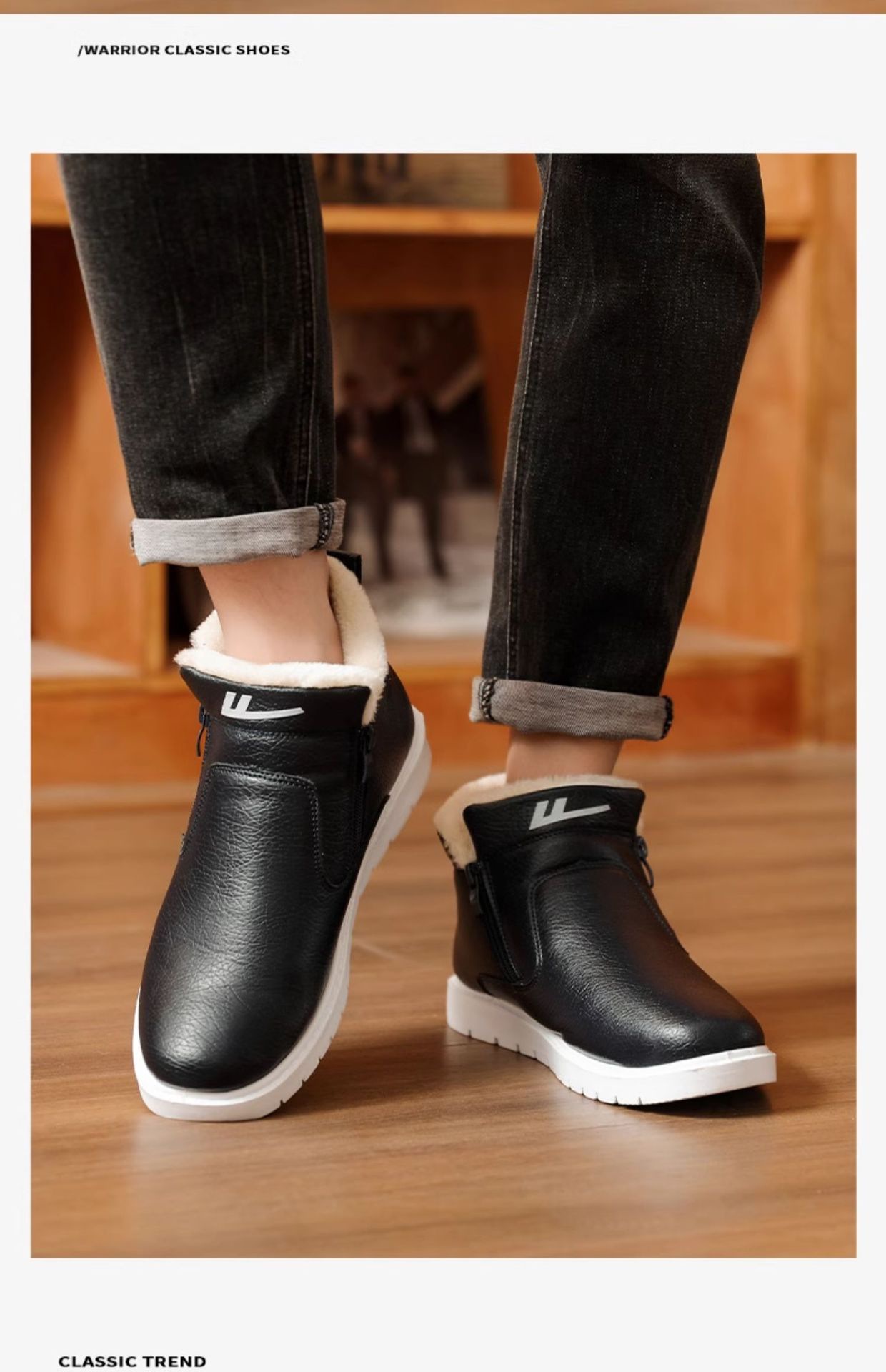 W1636 국내 면화 남성 신발 2024 겨울 새로운 스타일 벨벳 두꺼운 따뜻한 신발 가죽 방수 스노우 부츠스토어 가기