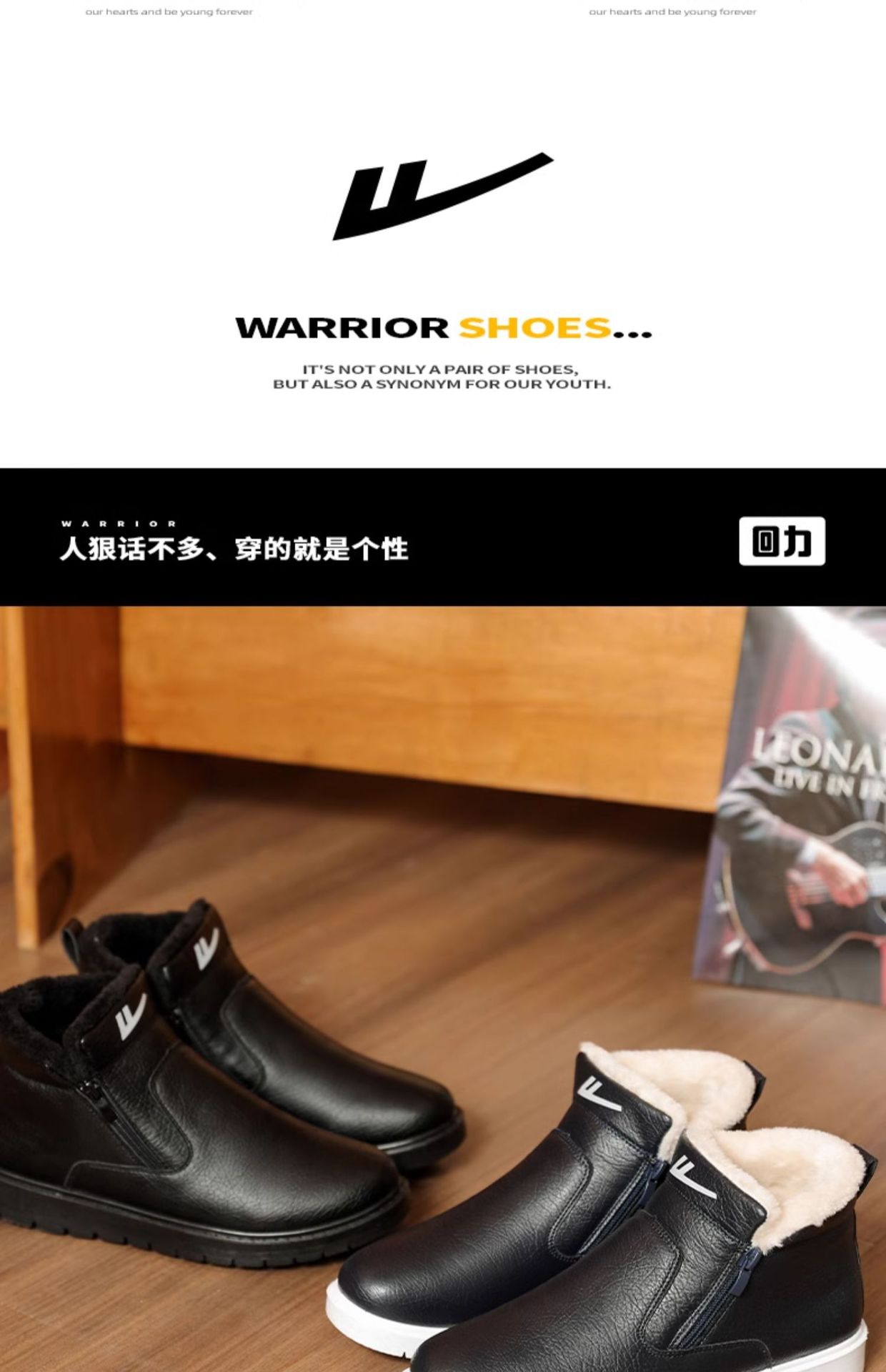 W1636 국내 면화 남성 신발 2024 겨울 새로운 스타일 벨벳 두꺼운 따뜻한 신발 가죽 방수 스노우 부츠