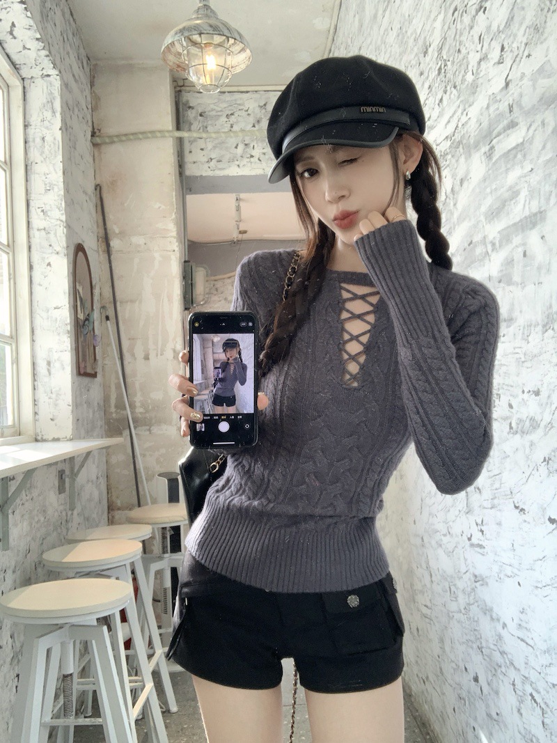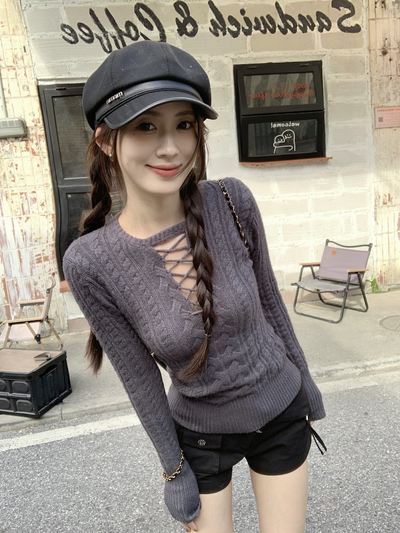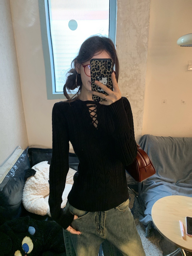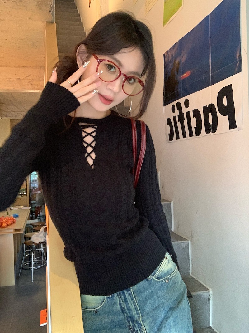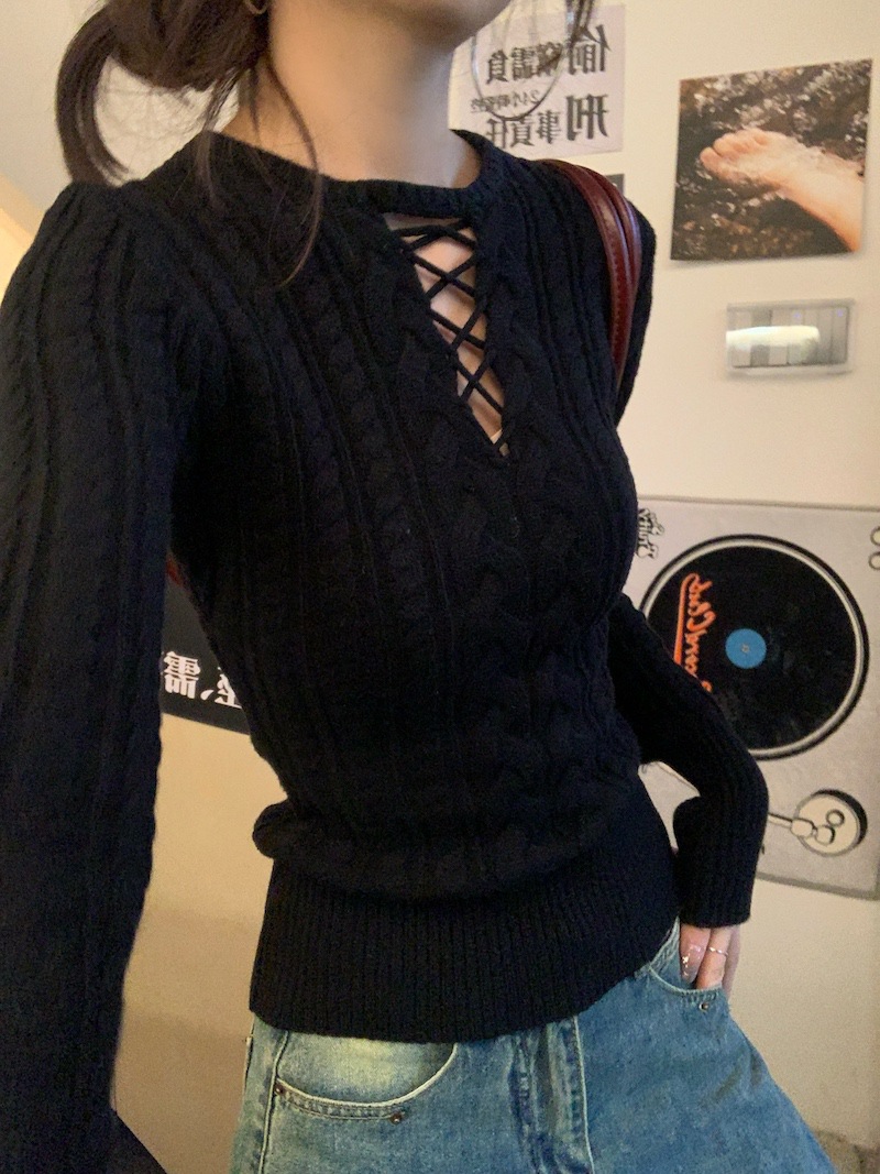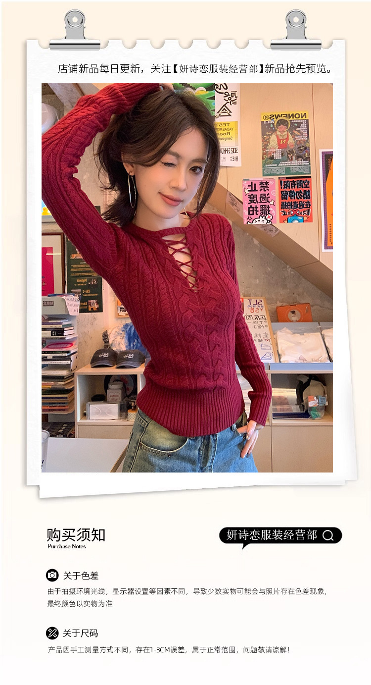 순수한 향신료 소녀 스타일 긴 소매 섹시한 중공 셔츠 여성용 봄 복고풍 허리 베이스 셔츠 세련된 레드 탑