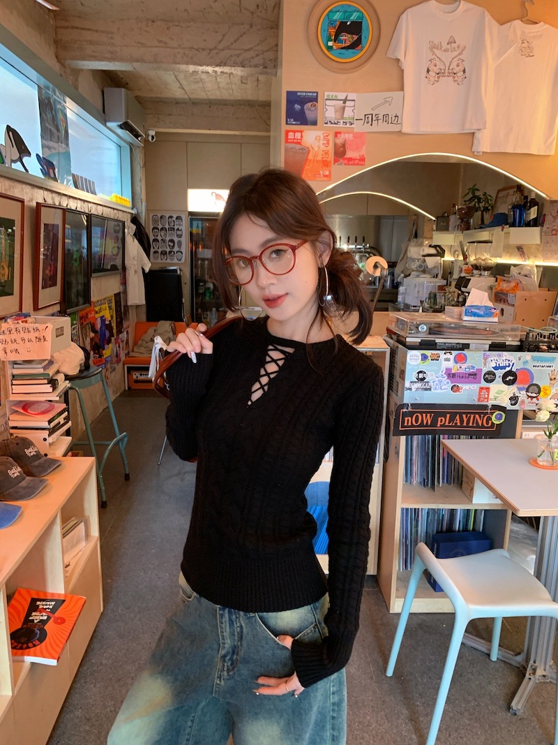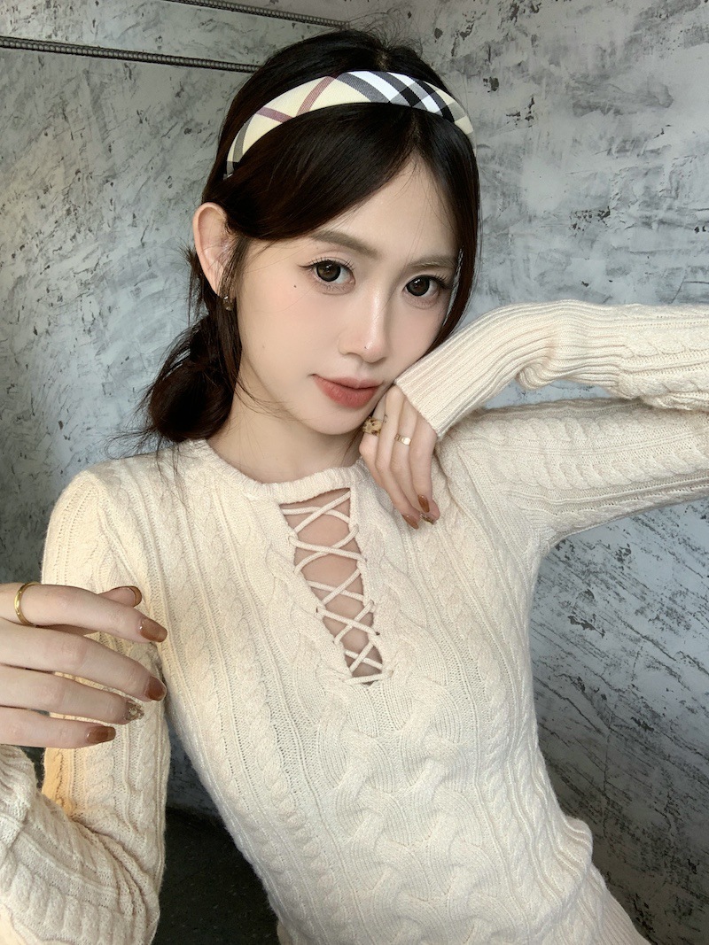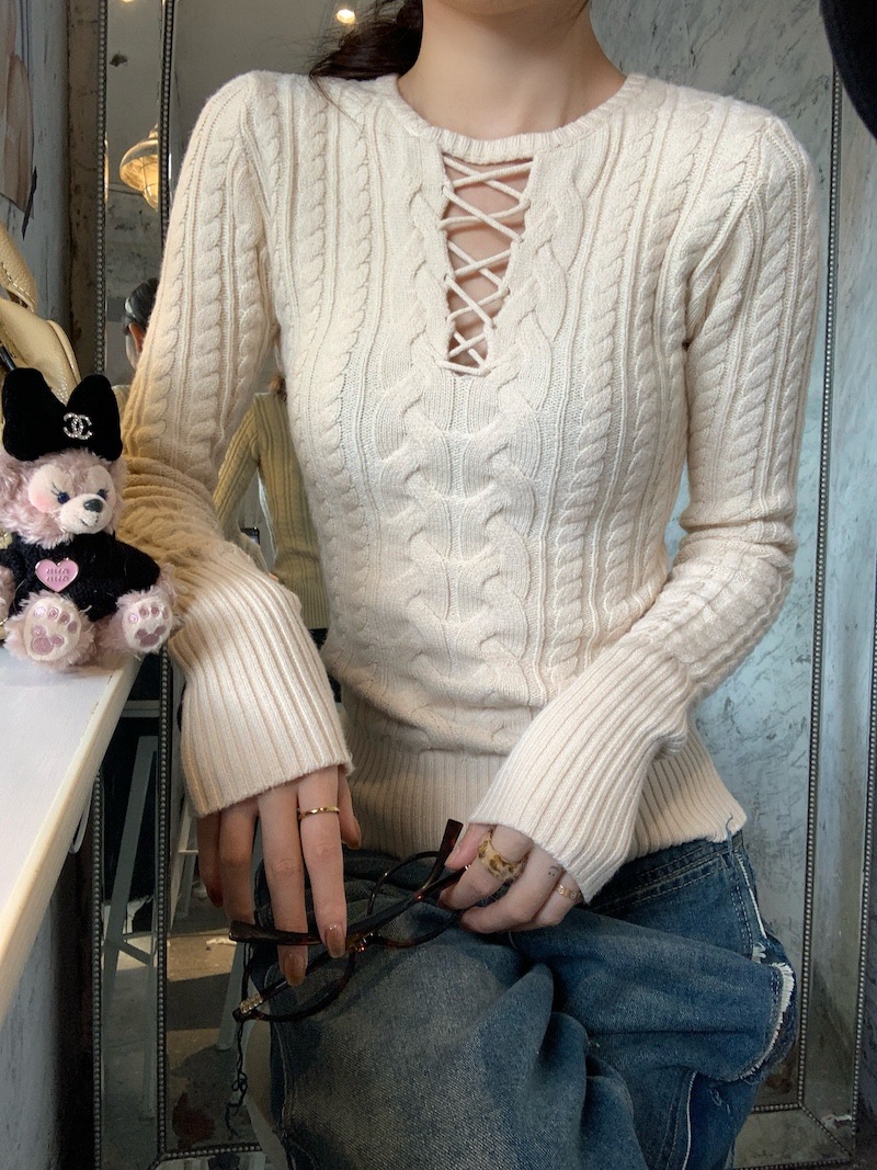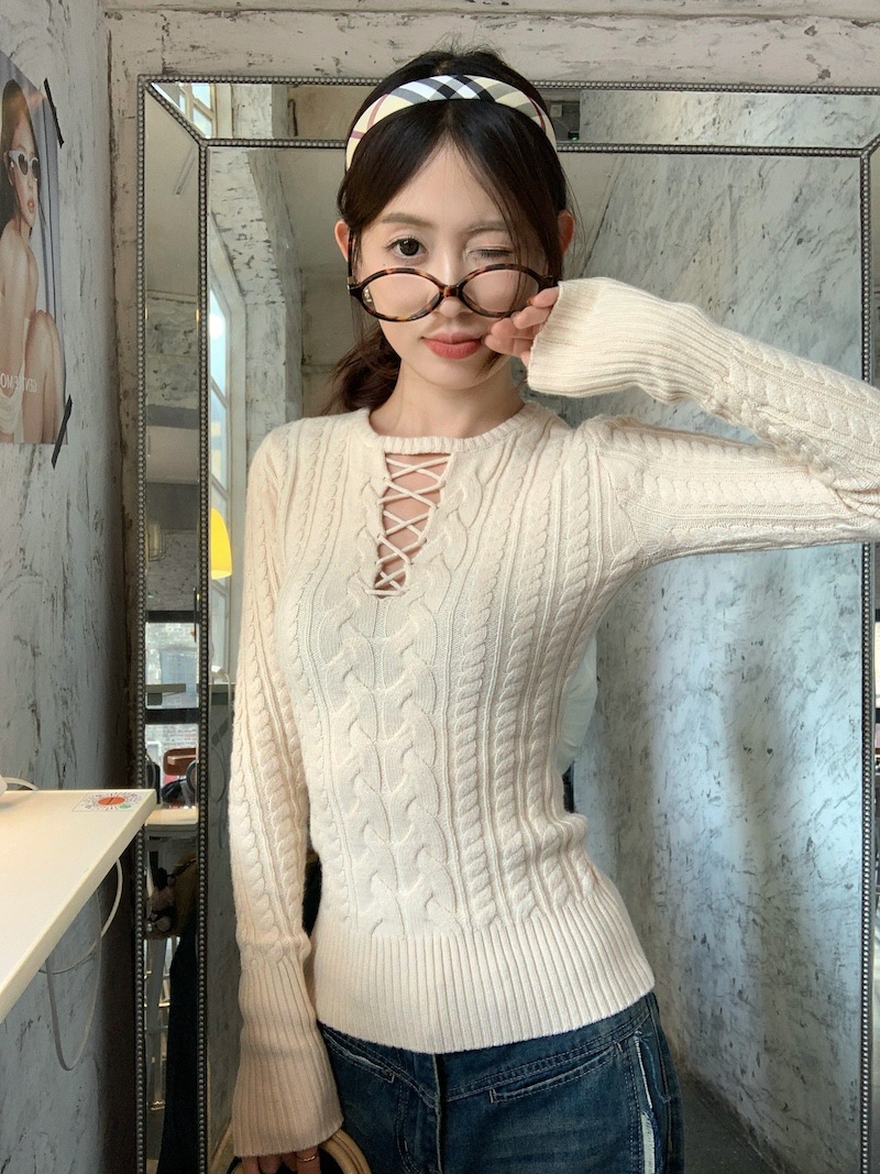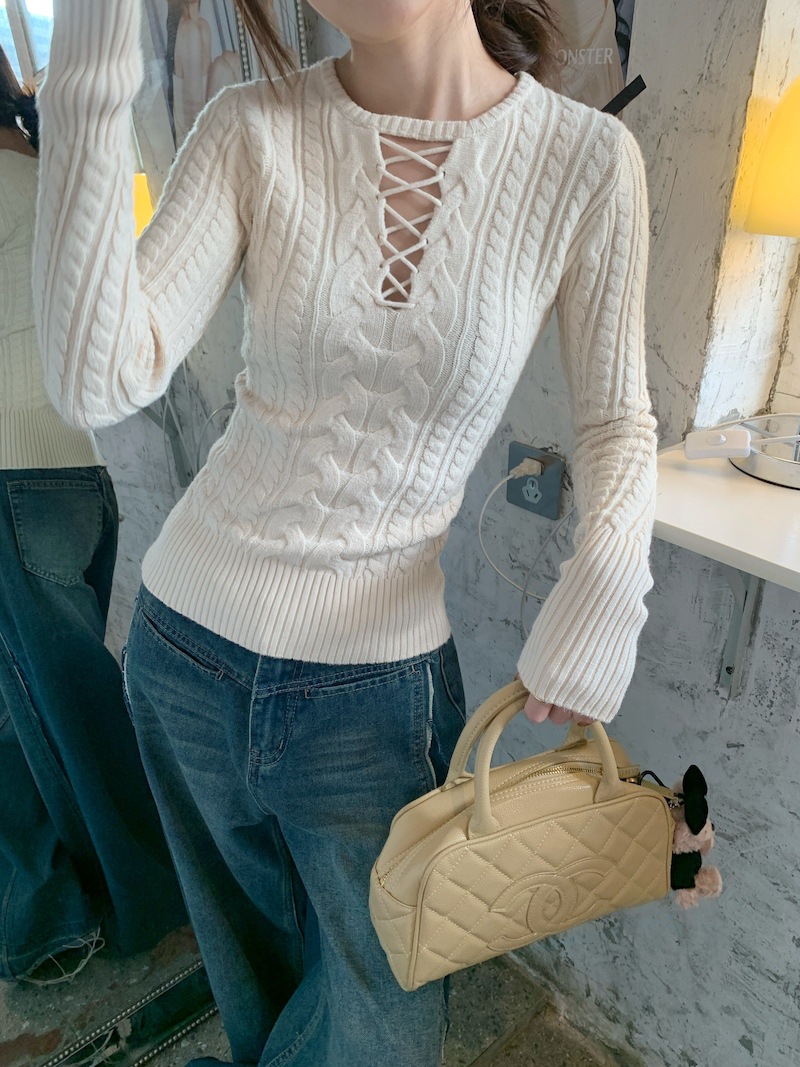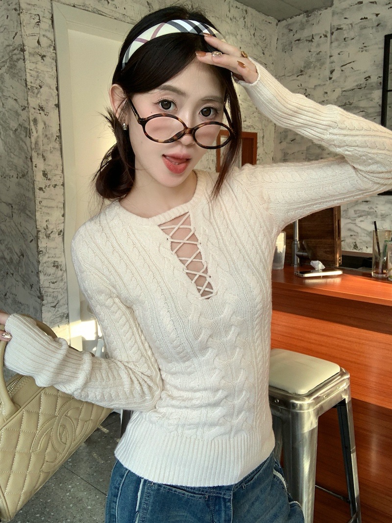 순수한 향신료 소녀 스타일 긴 소매 섹시한 중공 셔츠 여성용 봄 복고풍 허리 베이스 셔츠 세련된 레드 탑