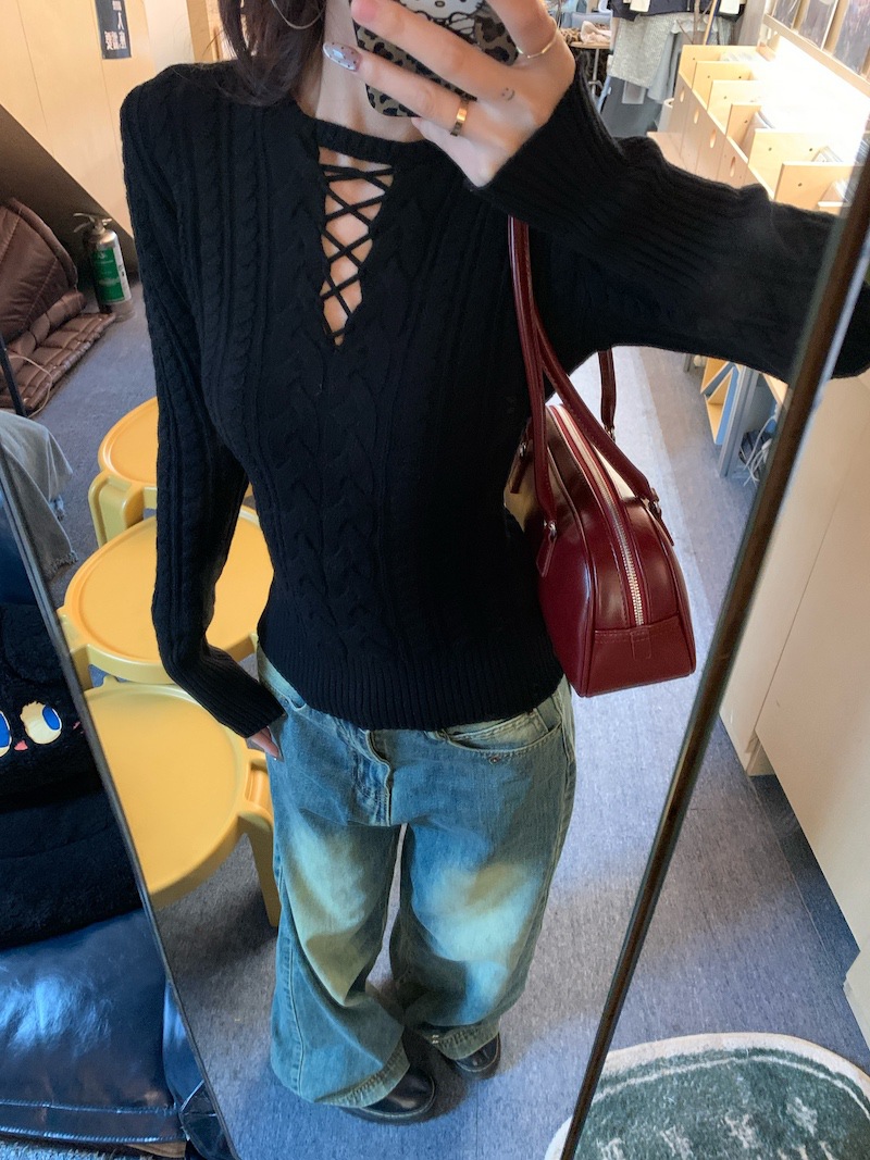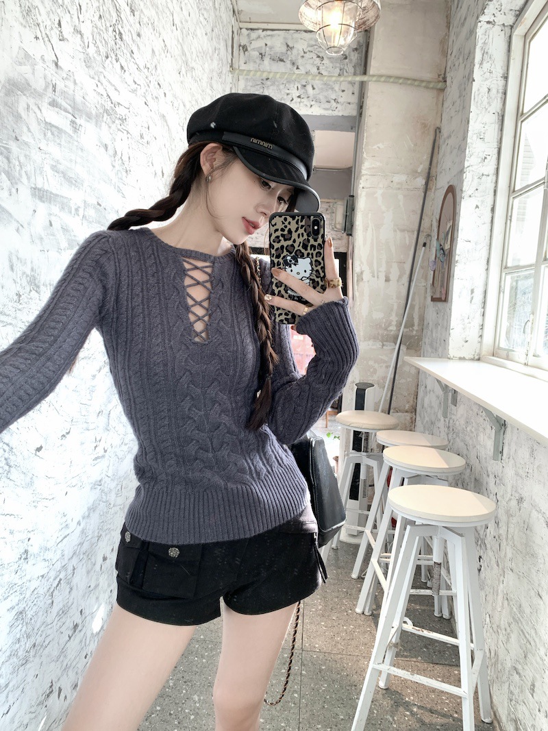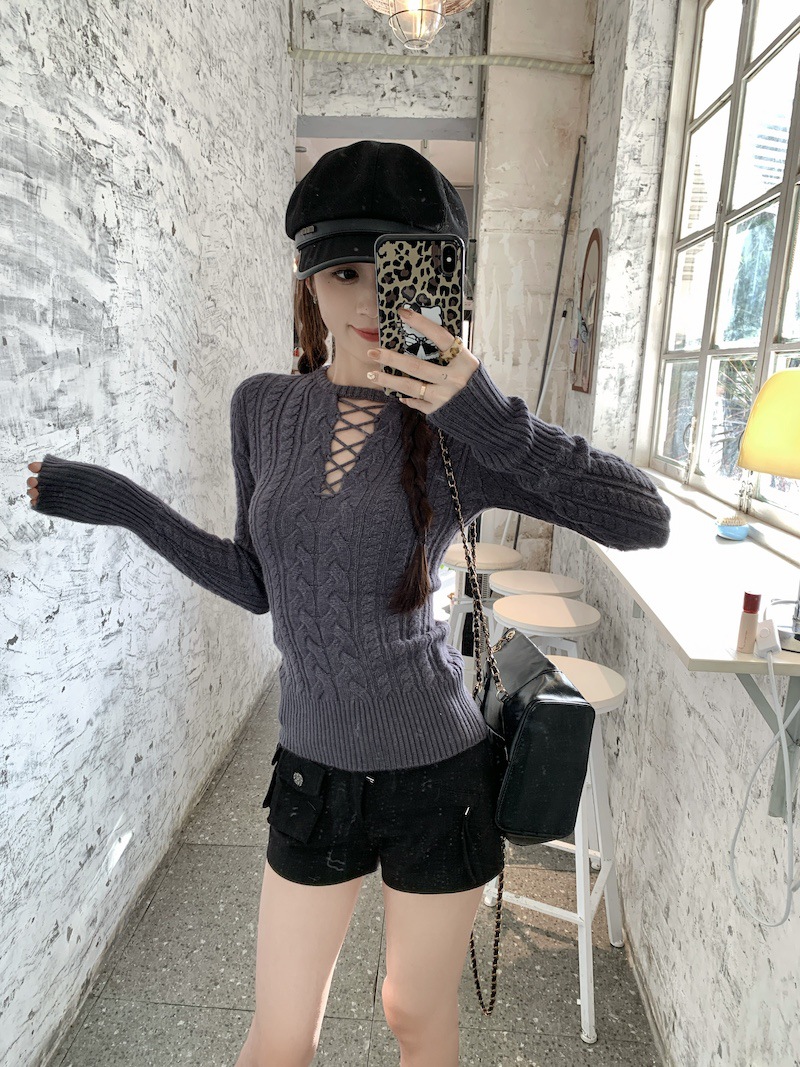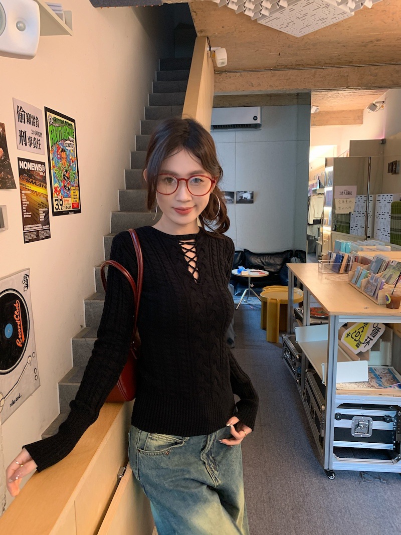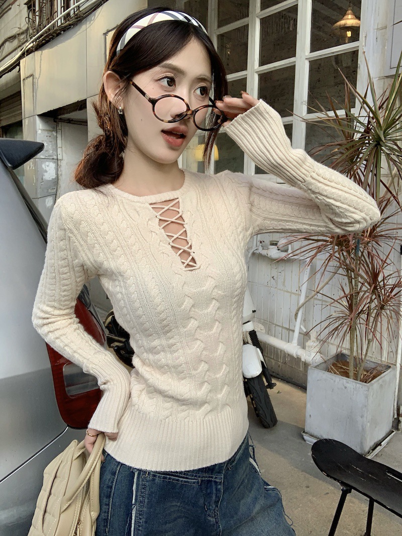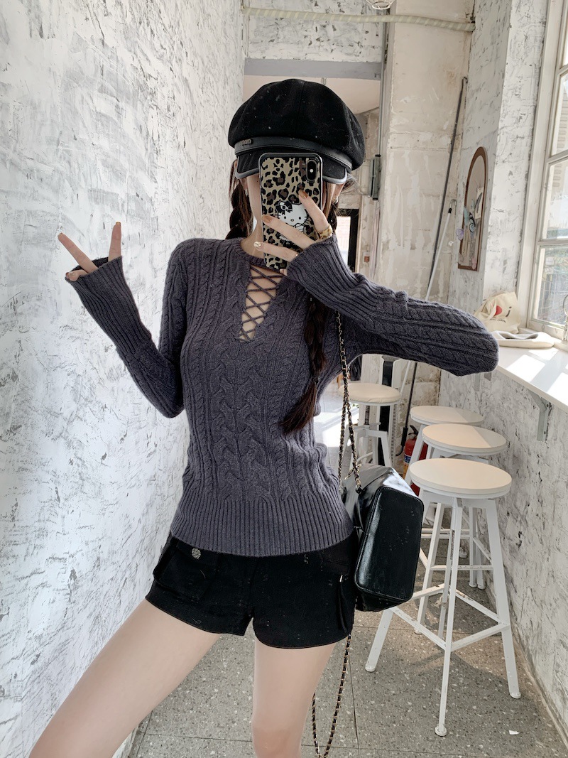 순수한 향신료 소녀 스타일 긴 소매 섹시한 중공 셔츠 여성용 봄 복고풍 허리 베이스 셔츠 세련된 레드 탑