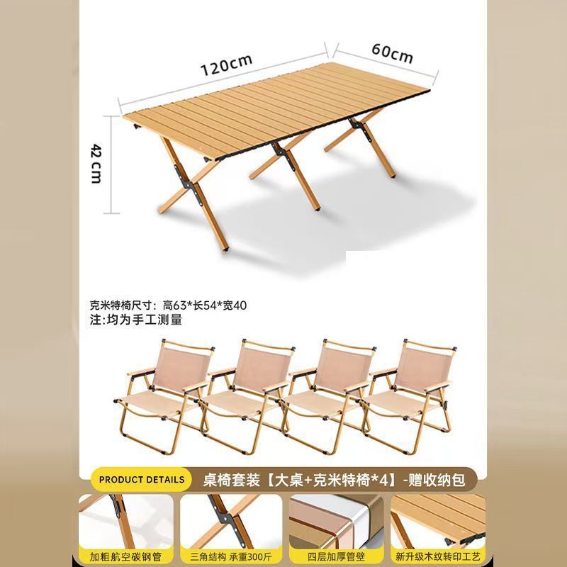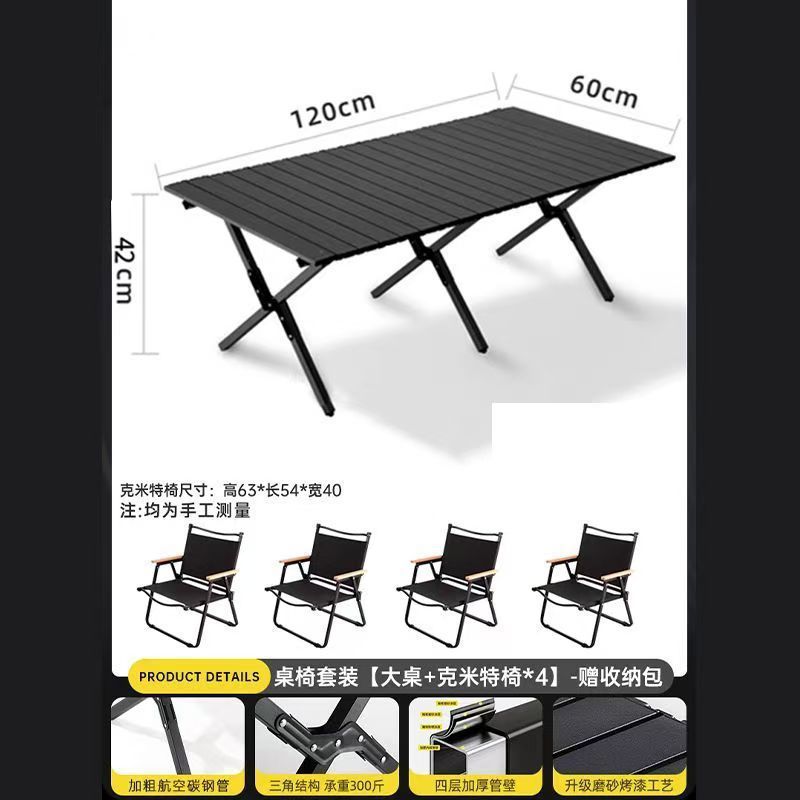 RrJ 야외 테이블과 의자 세트 휴대용 캠핑 테이블 야외 용품 Kermit 의자 계란 롤 테이블 세트 야외 접이식