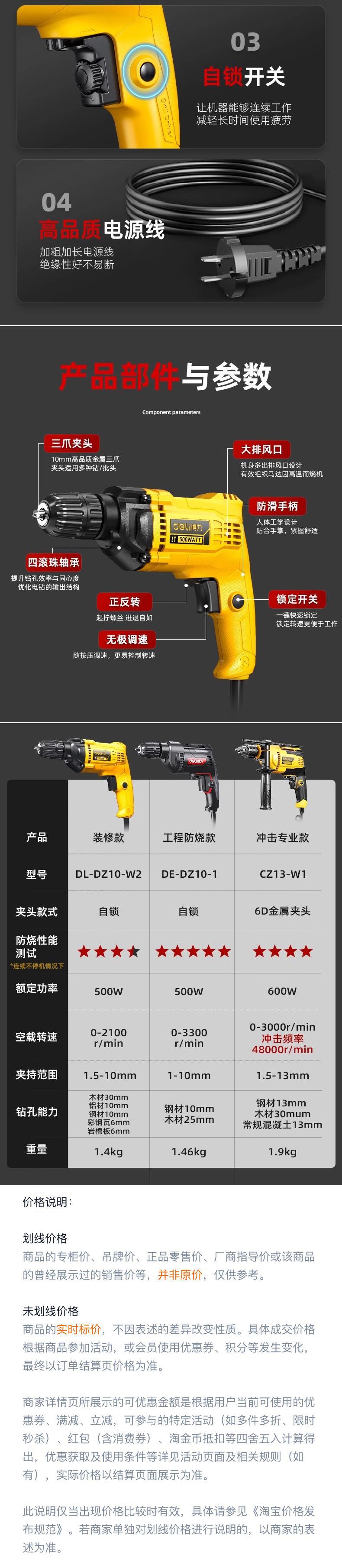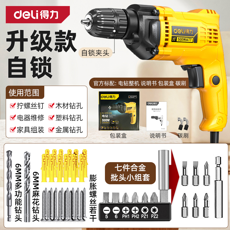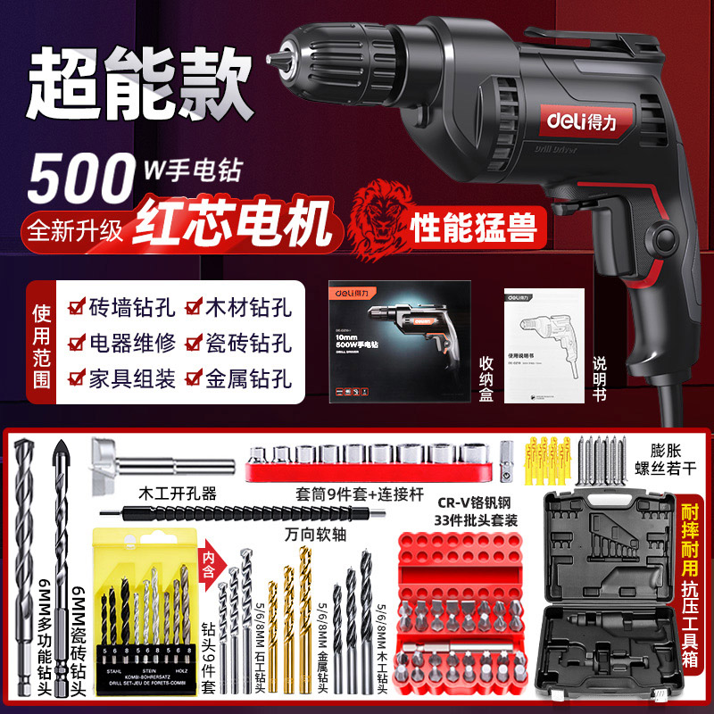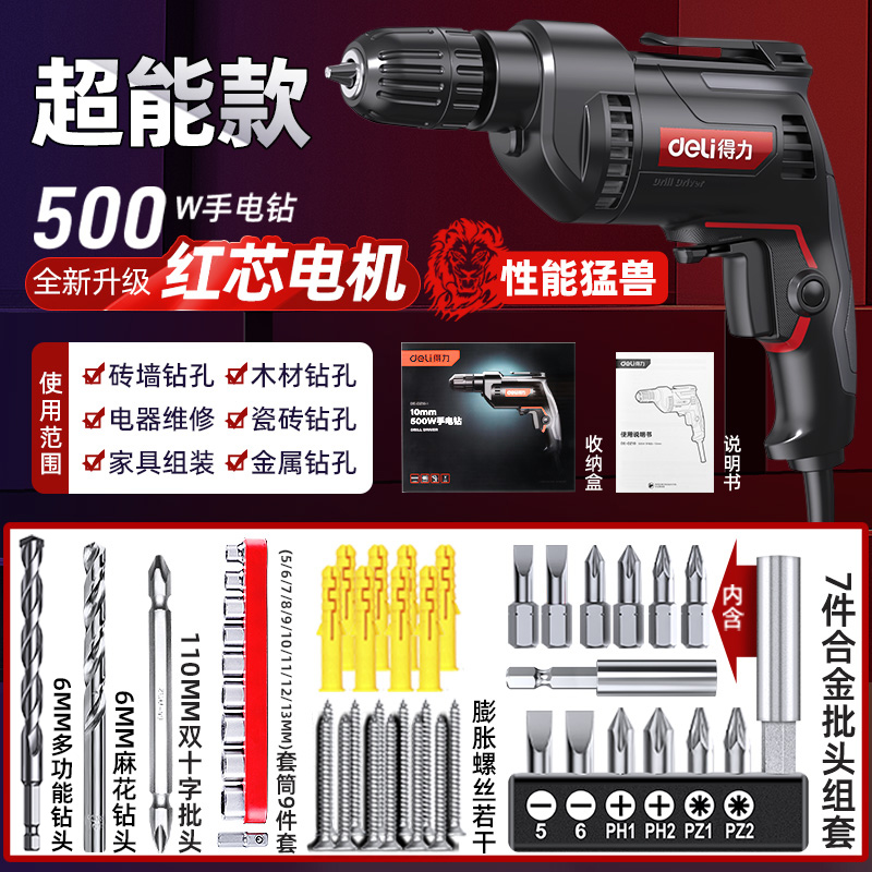 델리 전기 드릴 손 전기 드릴 220V 가정용 충격 드릴링 다기능 권총 회전 작은 드라이버 전기 도구스토어 가기