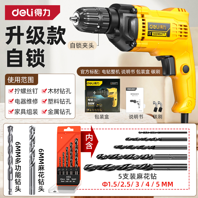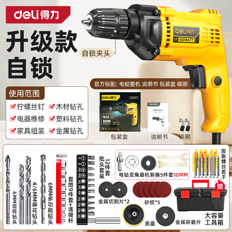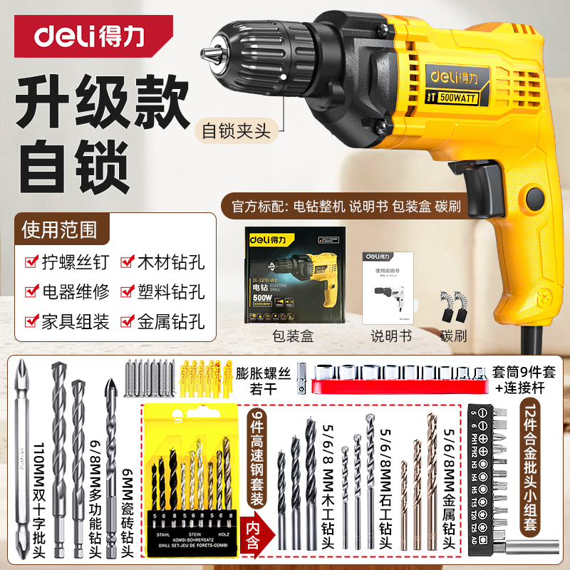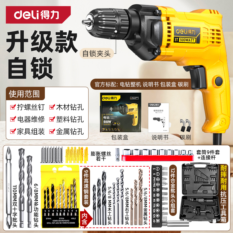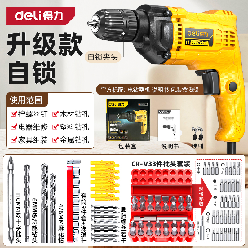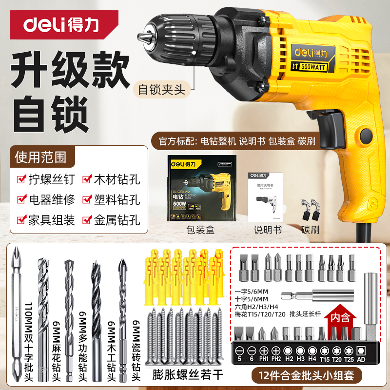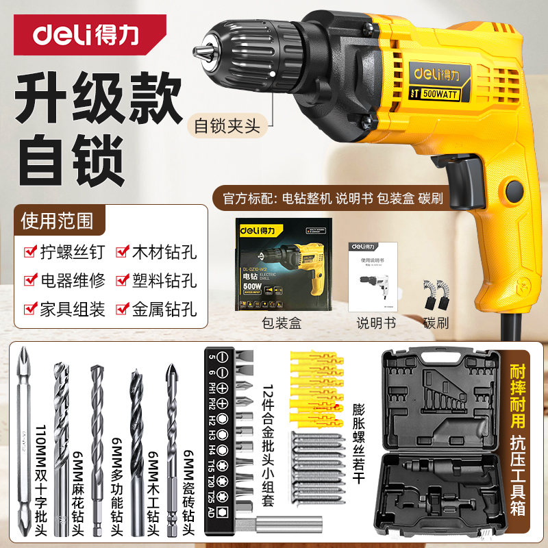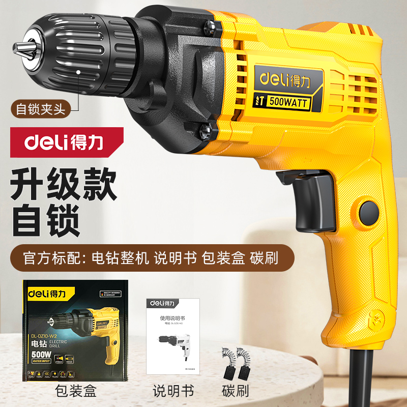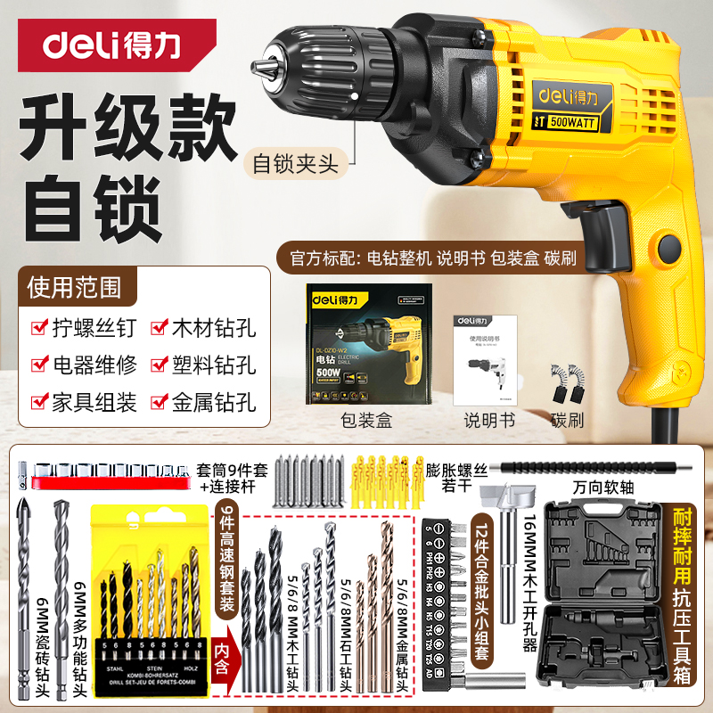 델리 전기 드릴 손 전기 드릴 220V 가정용 충격 드릴링 다기능 권총 회전 작은 드라이버 전기 도구