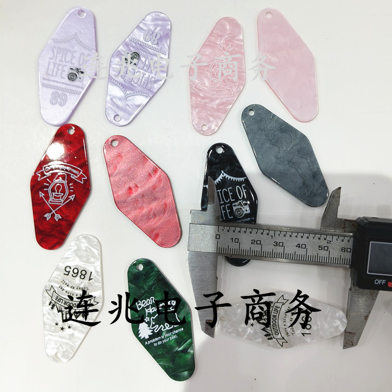 亚克力醋酸小号菱形印刷带孔挂件尺寸约60*32MM一包200个,价格不含金属圈挂件的,价格只是亚克力的配件,醋酸板材切割印刷的,跑量质量,介意勿拍。