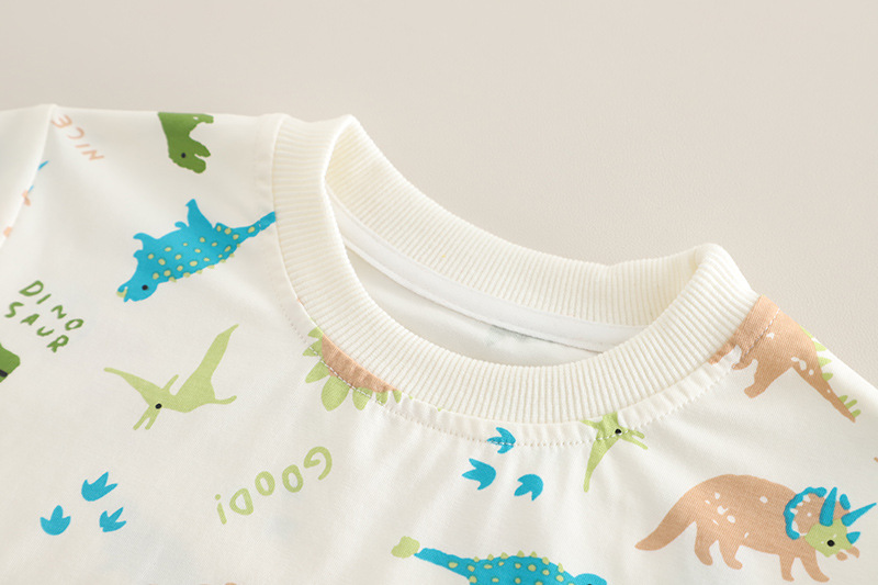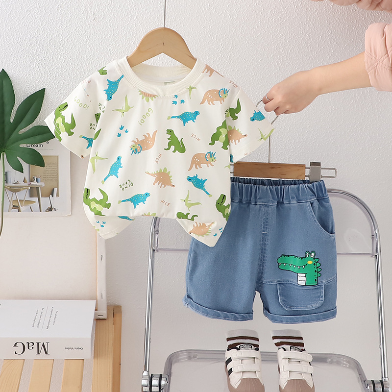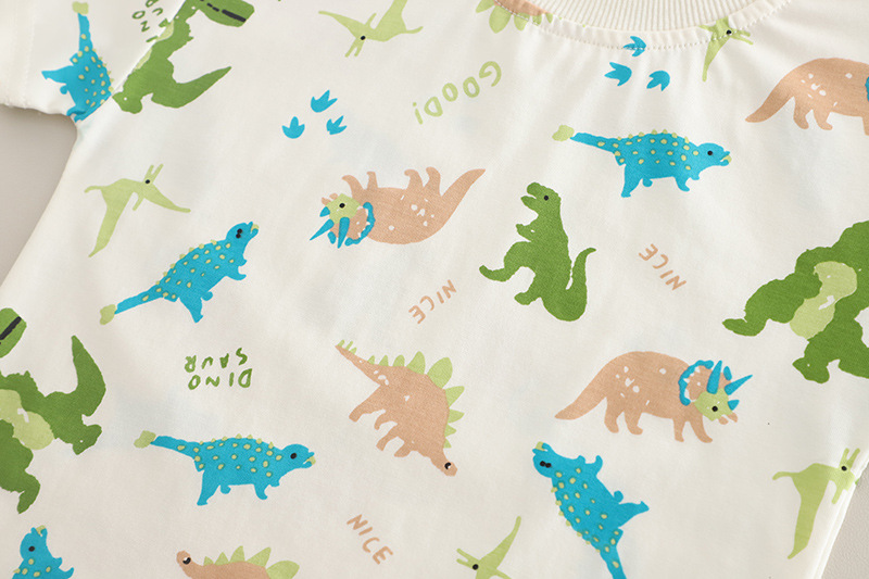 소년 여름 옷 세트 2025 새로운 소년 아기 여름 소년 여름 옷 전체 인쇄 공룡 반팔 투피스 세트