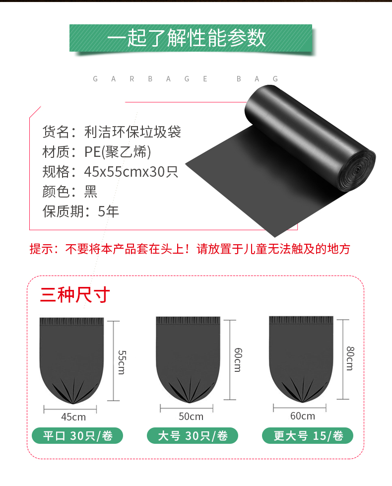 신소재 두꺼운 검은 가정용 주방 크고 중간 스몰 사이즈 일회용 압연 쓰레기 봉투스토어 가기