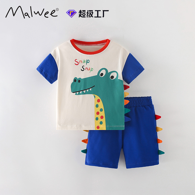 국경 간 재고 말위 소년 세트 티셔츠 여름 새로운 유럽과 미국 어린이 캐주얼 짧은 소매 투피스 세트