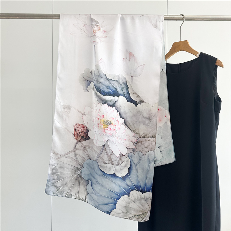 크레페 새틴 고대 우아한 실크 긴 스카프 여성의 봄과 여름 우아한 올 매치 장식 뽕나무 실크 스카프