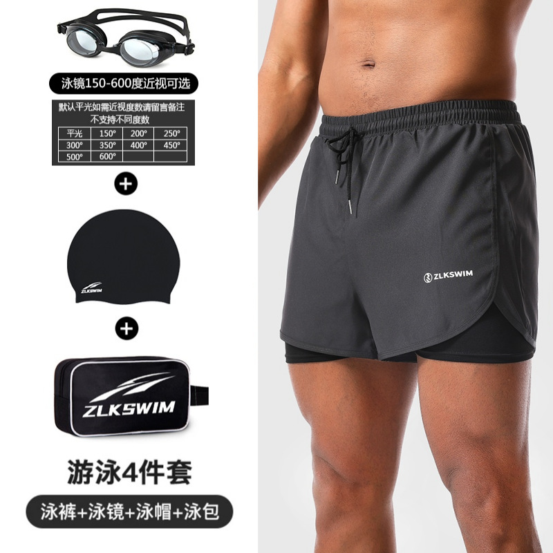 • 회색 수영 트렁크 + 수영 모자 + 수영 고글