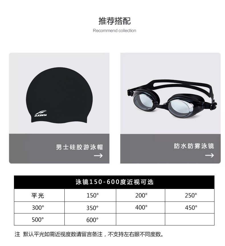 • 검은색 수영 트렁크 + 수영 모자 + 수영 고글