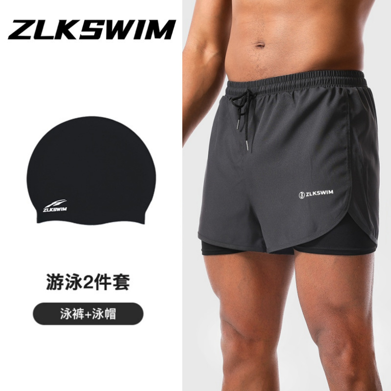 • 회색 수영 트렁크 + 수영 모자