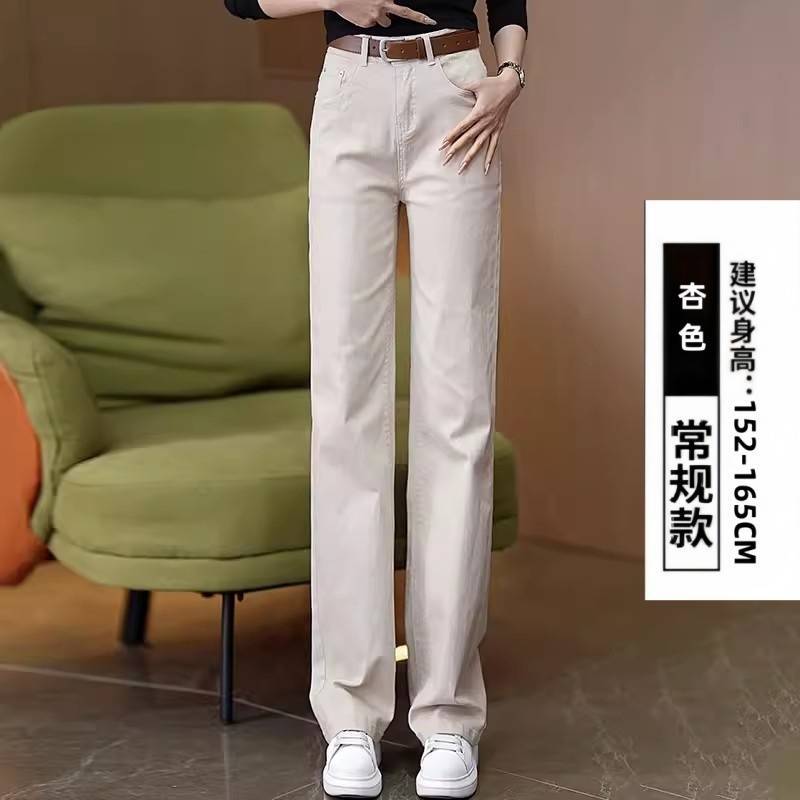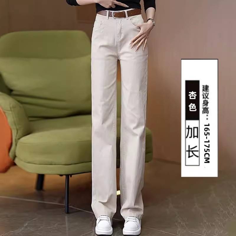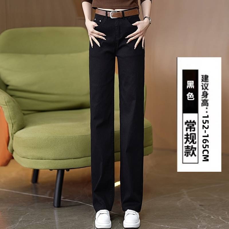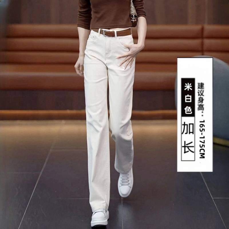 스트레치 스트레이트 청바지 여자 2025 년 봄과 가을 새로운 높은 허리 느슨한 올매치 캐주얼 슬리밍 좁은 넓은 다리 바지스토어 가기